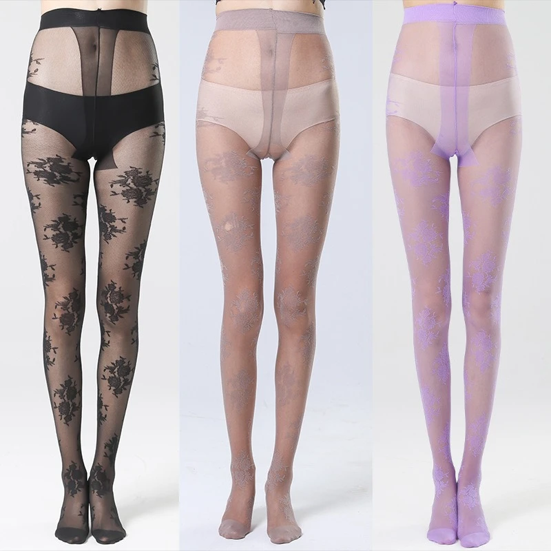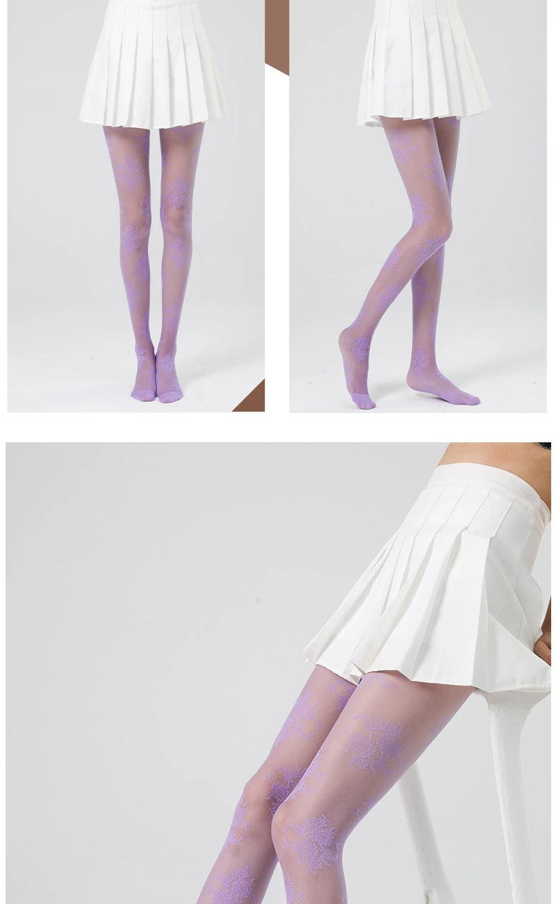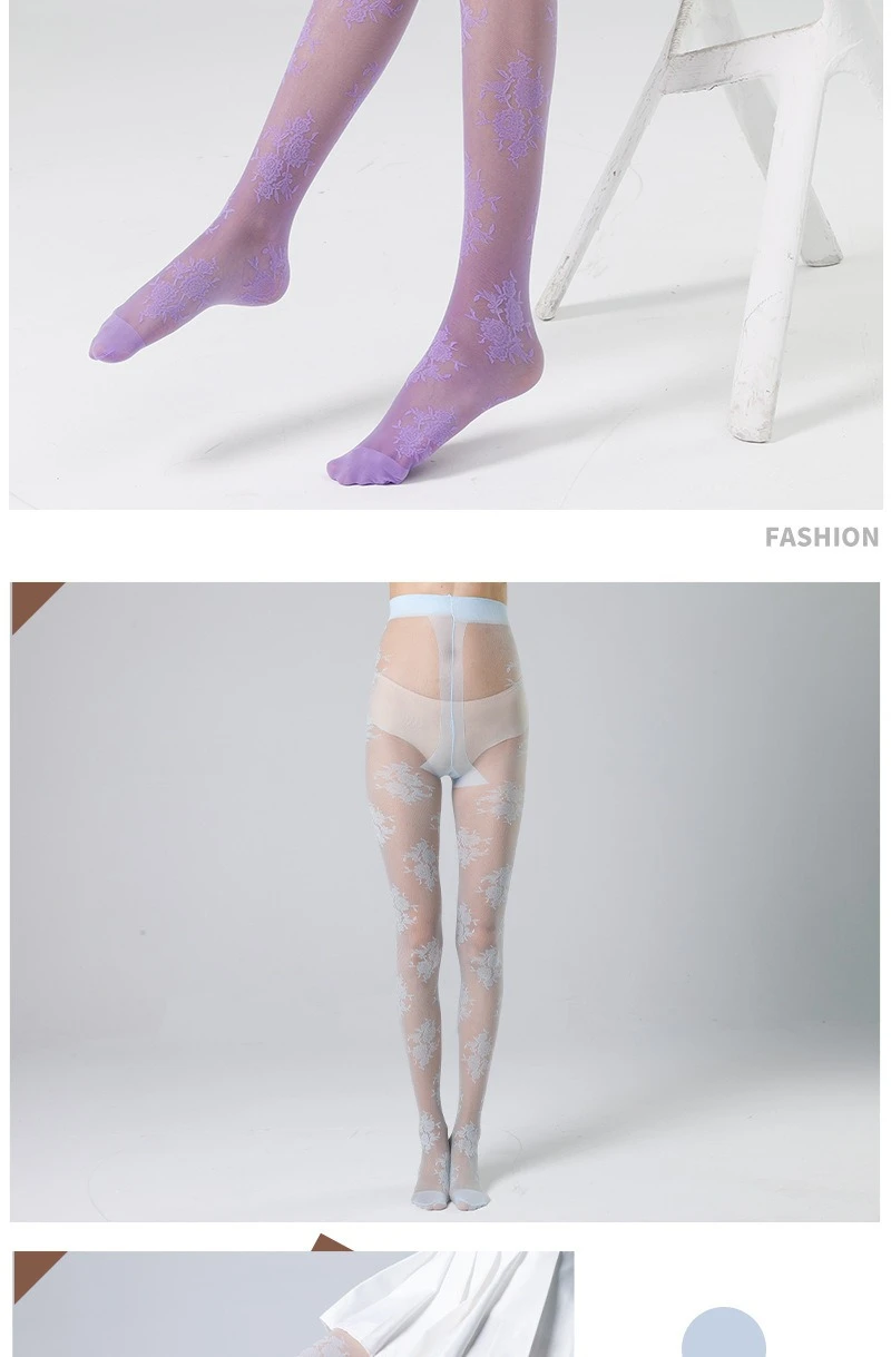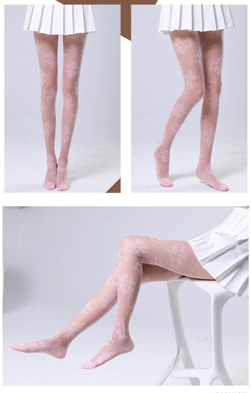 Lbsfy 8 Colors Sexy Lace Pantyhose for Women Hollow Mesh Flower High Fishnet Stockings Japanese Lolita Sexy Breathable Party Tights
