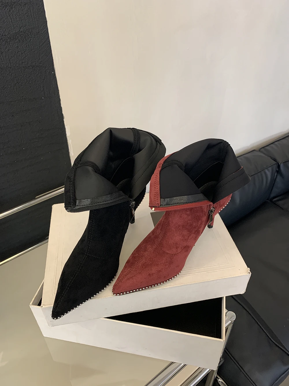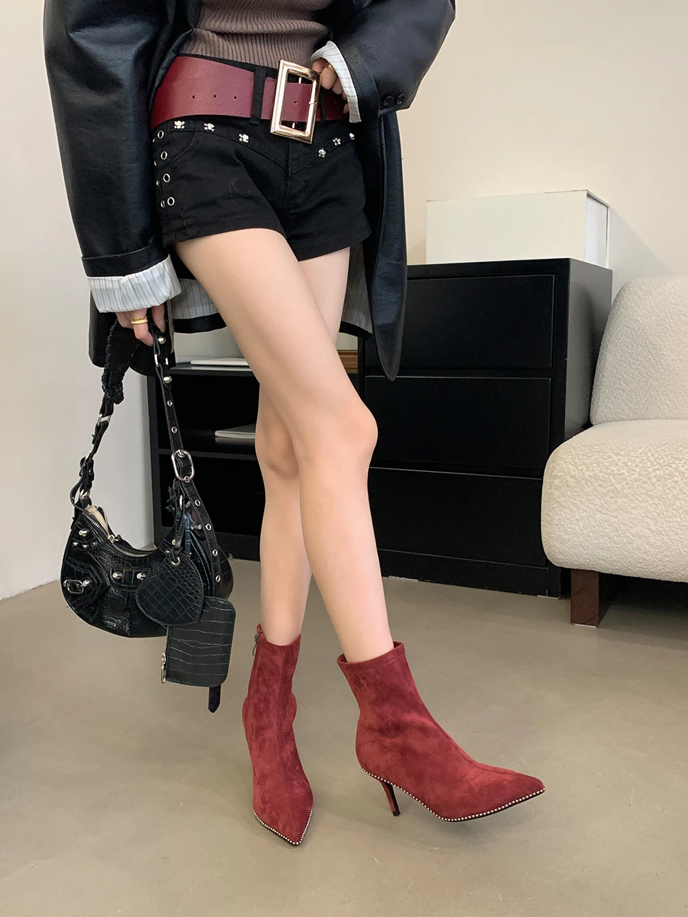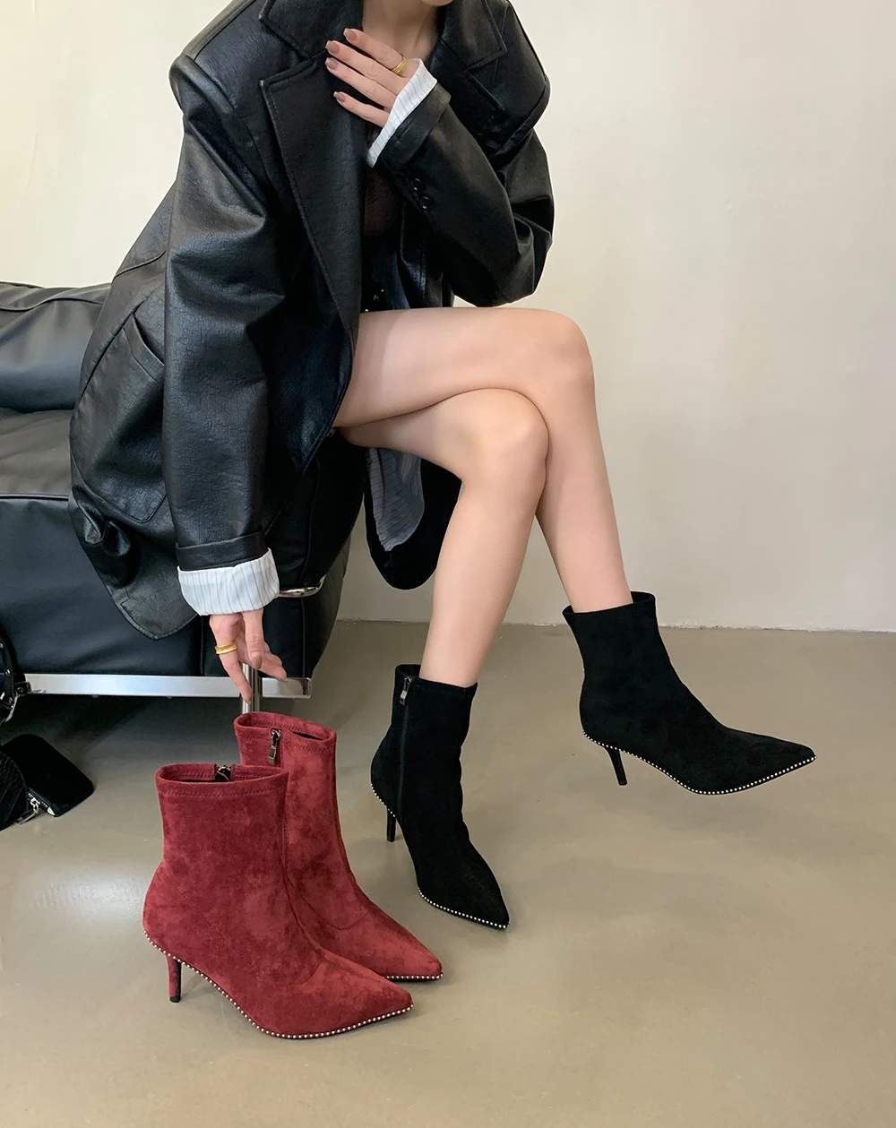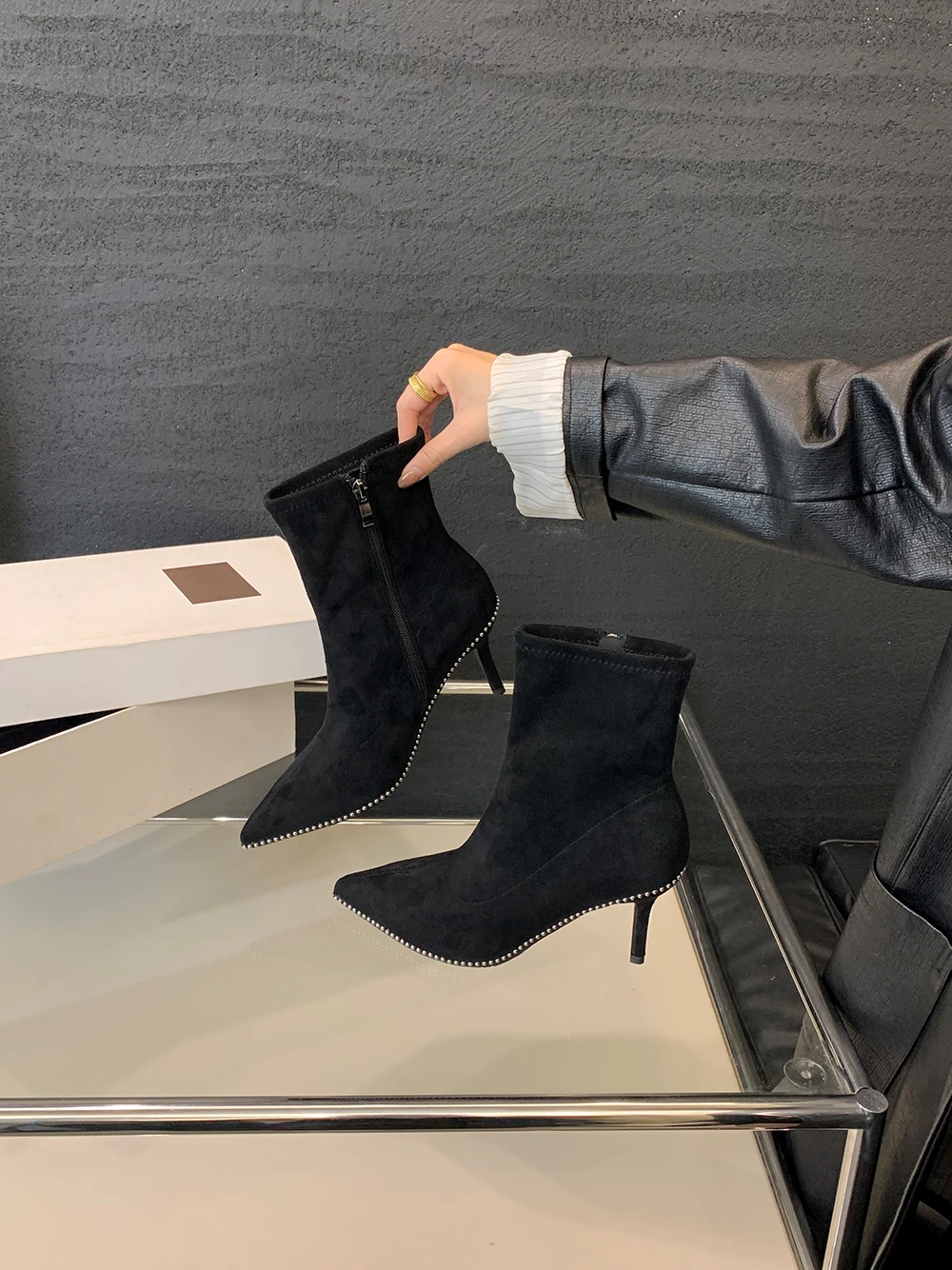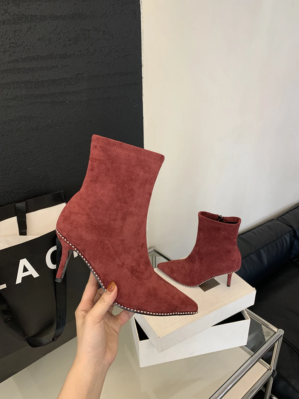 LBSFY - Flock Women Ankle Boots Chelsea Botas Thin High Heels Side Zipper 2024 New Arrivals Fashion Party Pumps Shoes Woman Size 35-39