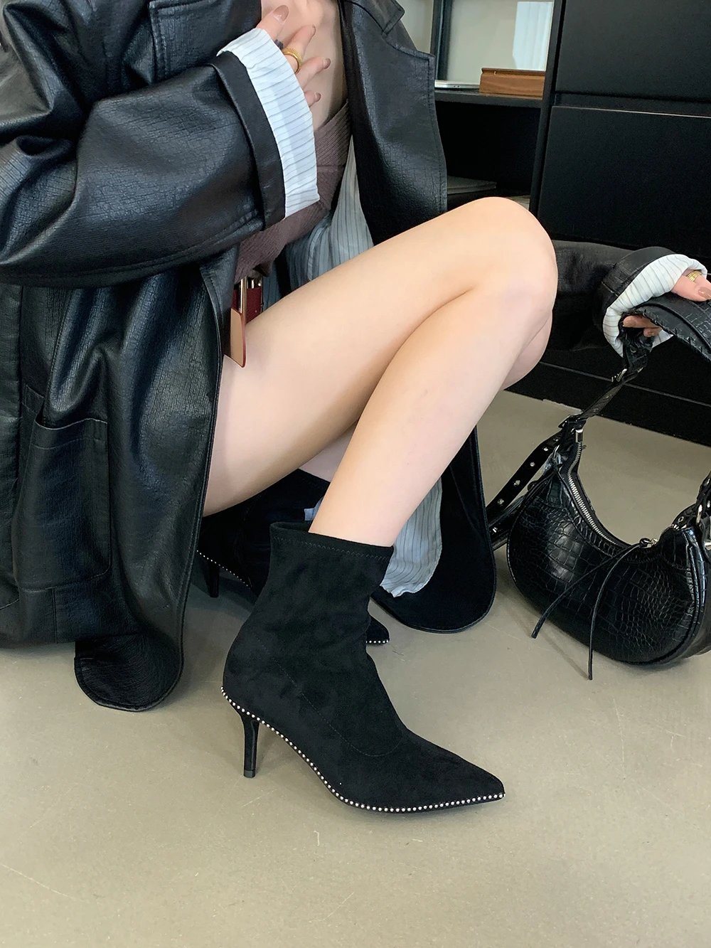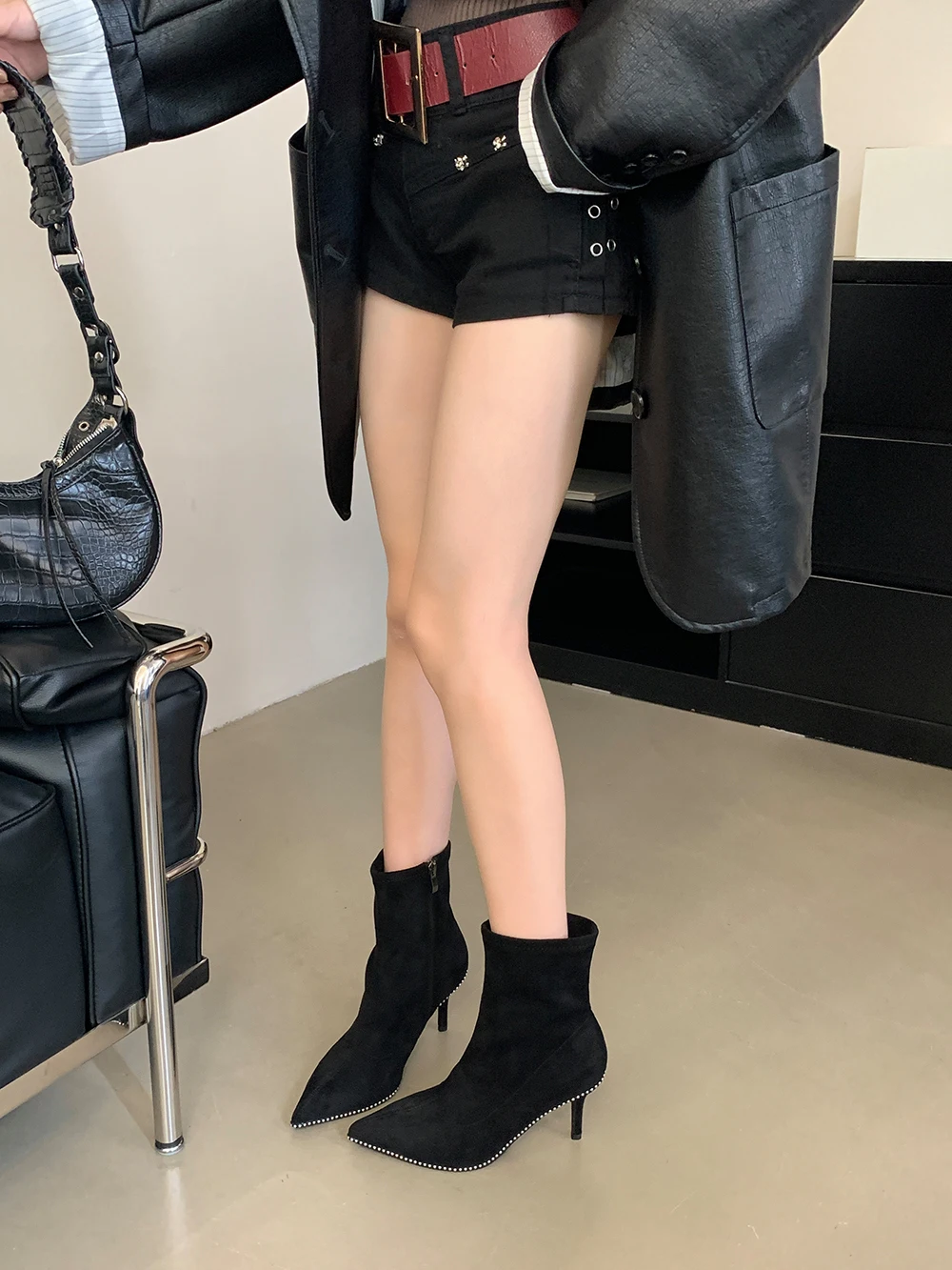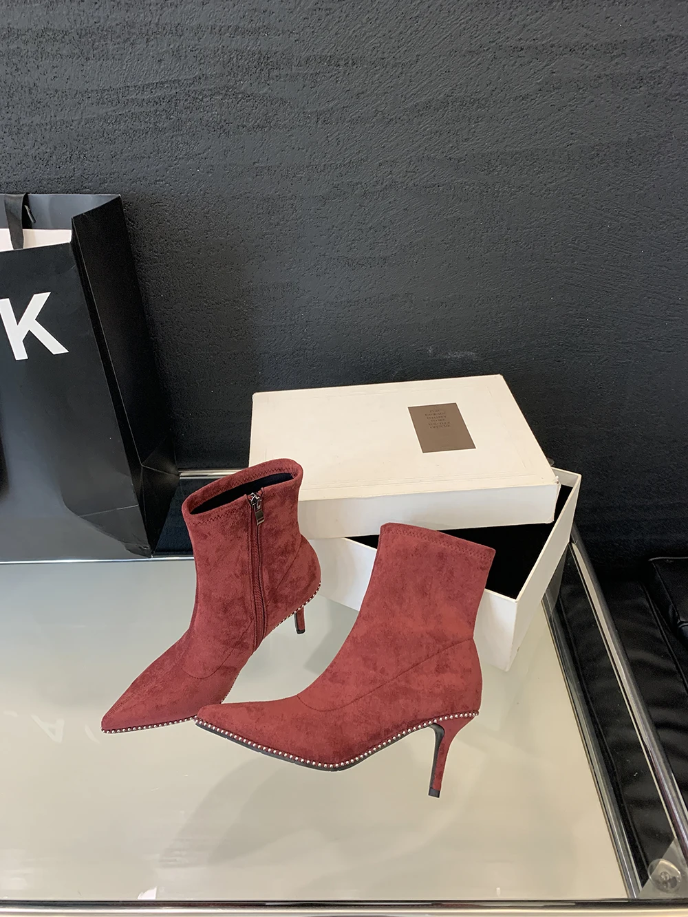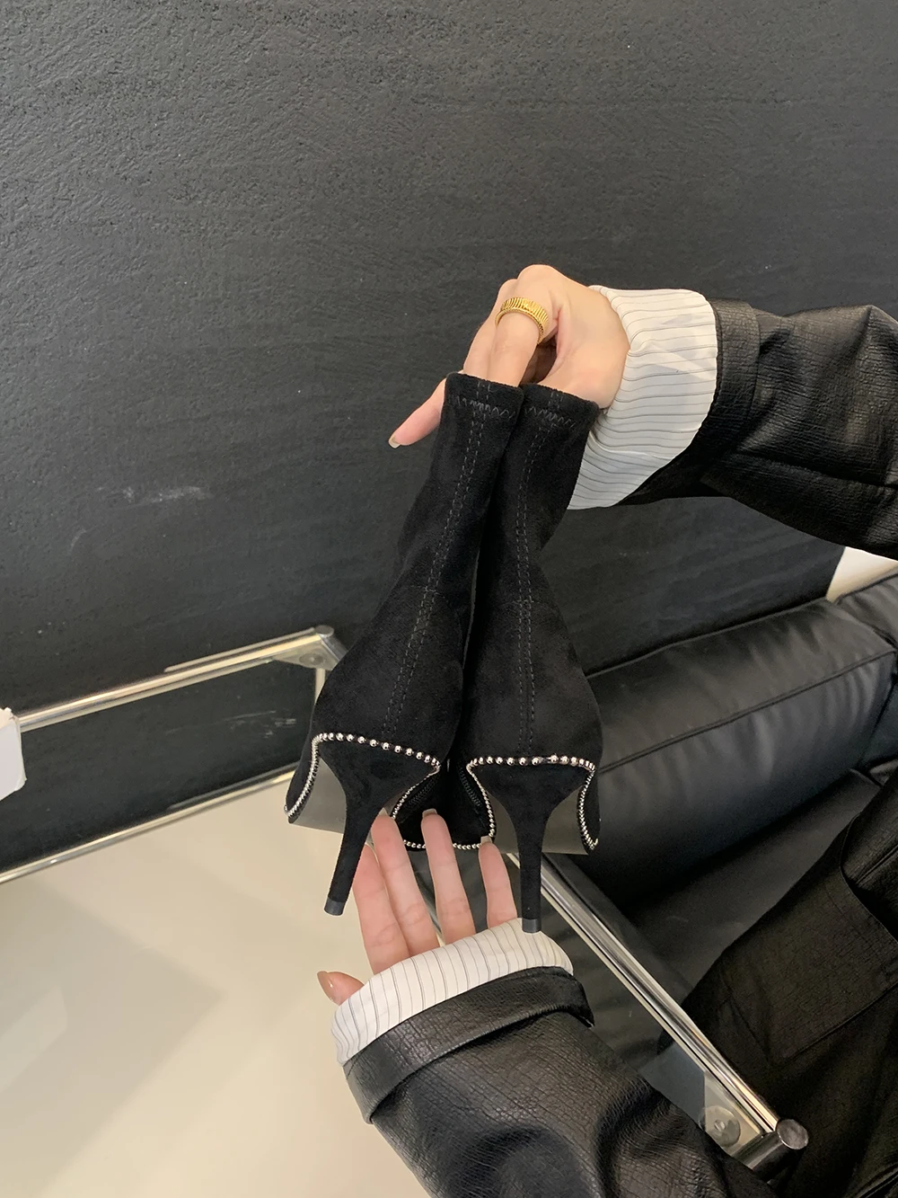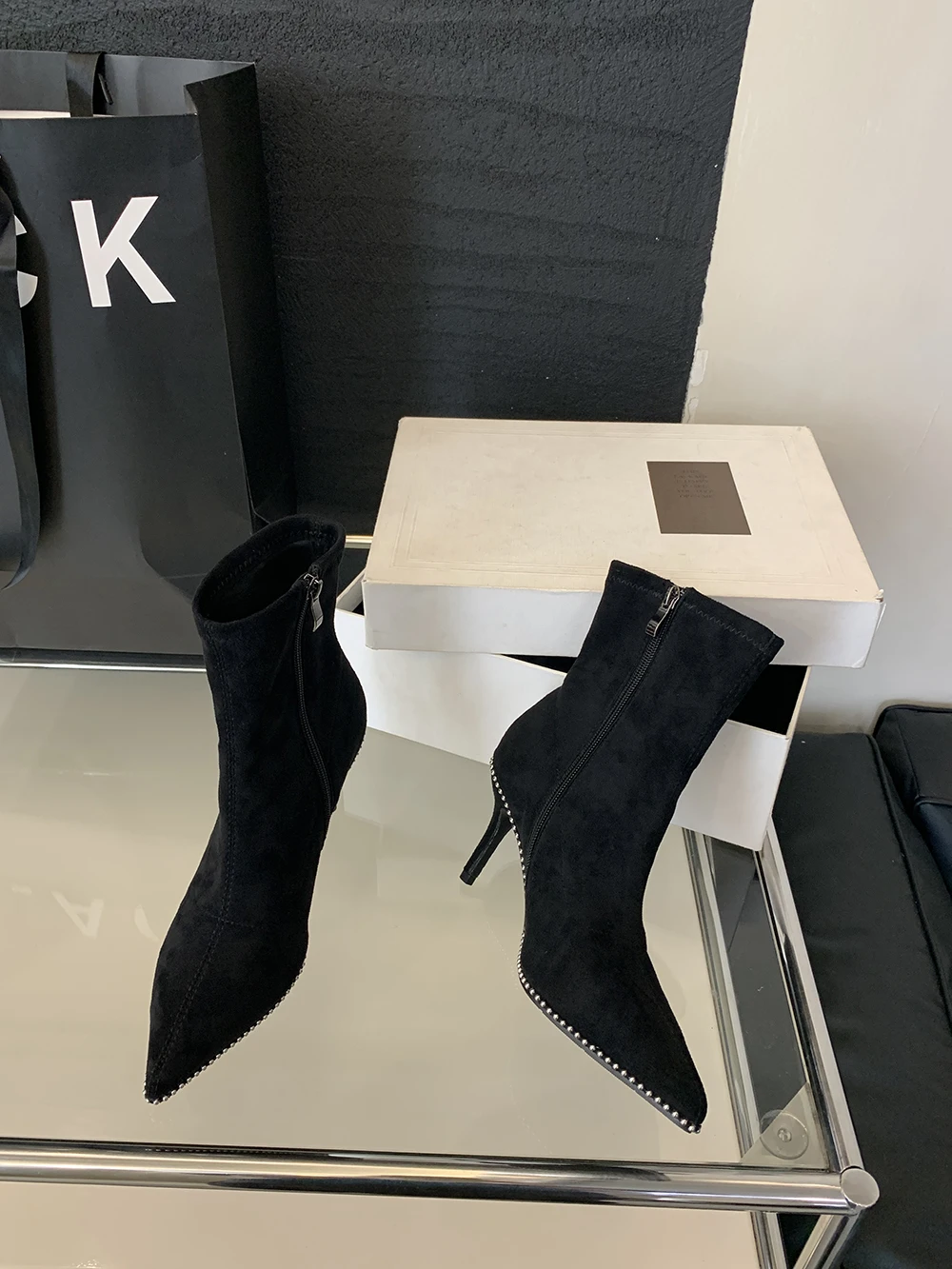 LBSFY - Flock Women Ankle Boots Chelsea Botas Thin High Heels Side Zipper 2024 New Arrivals Fashion Party Pumps Shoes Woman Size 35-39