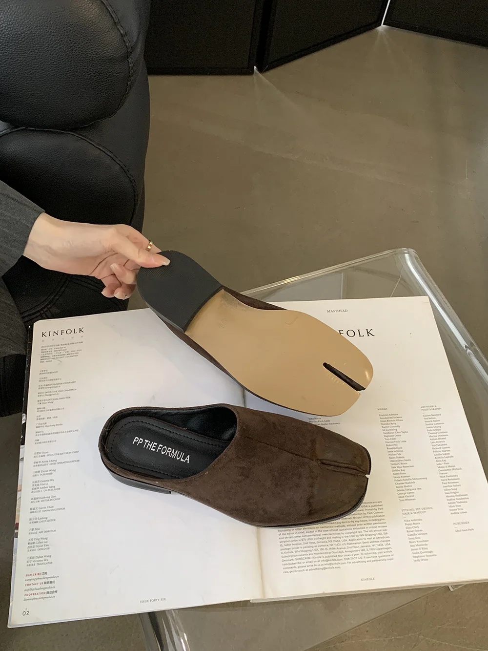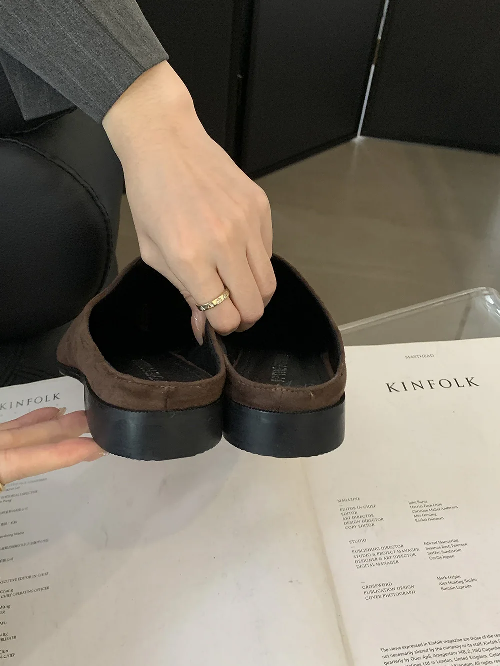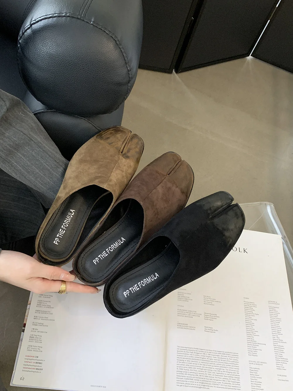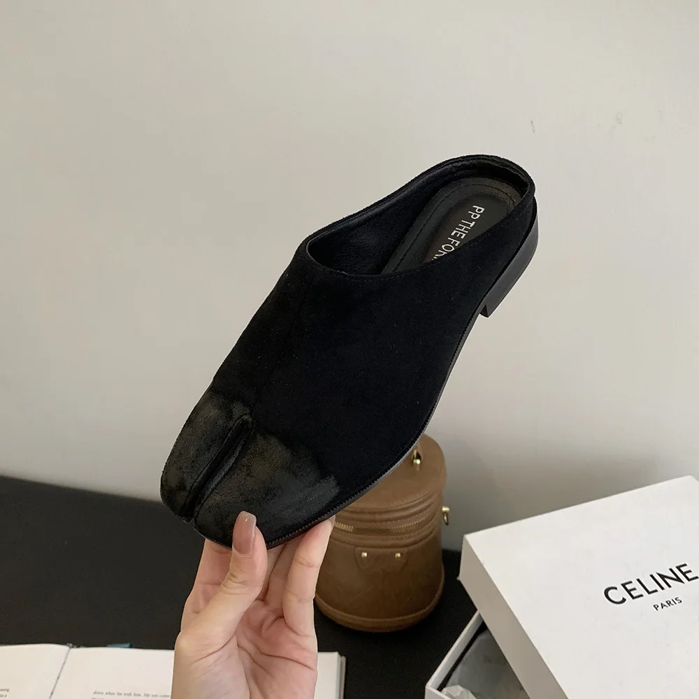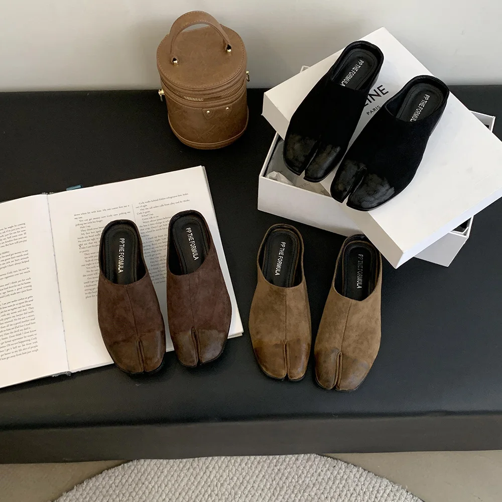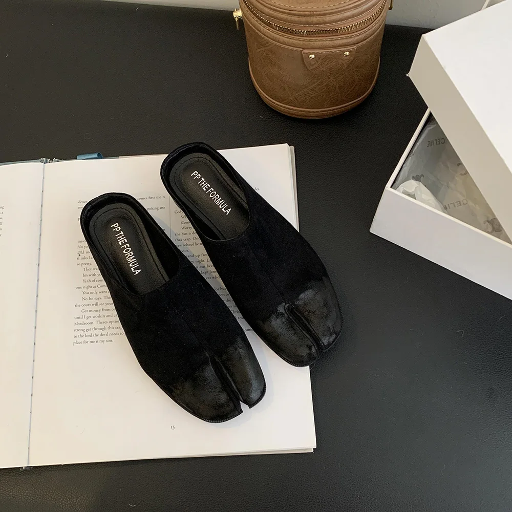 LBSFY - Flock Women Slides Slippers 2024 New Arrivals Clip Toe Summer Outside Dress Shoes Low Heeled Black Khaki Brown Party Pumps 35-39