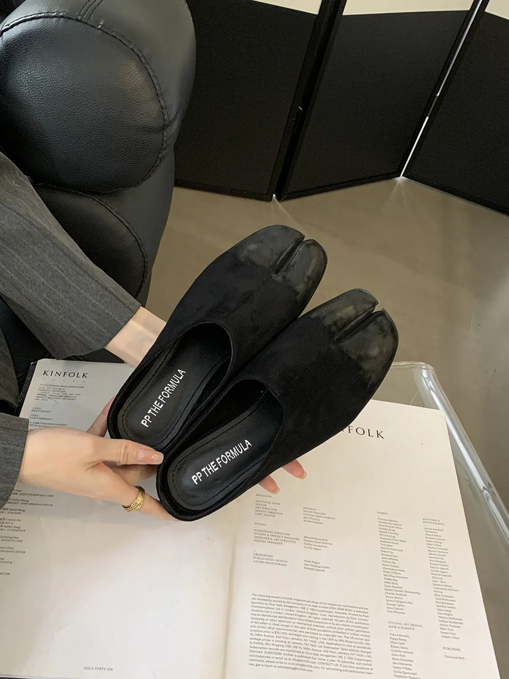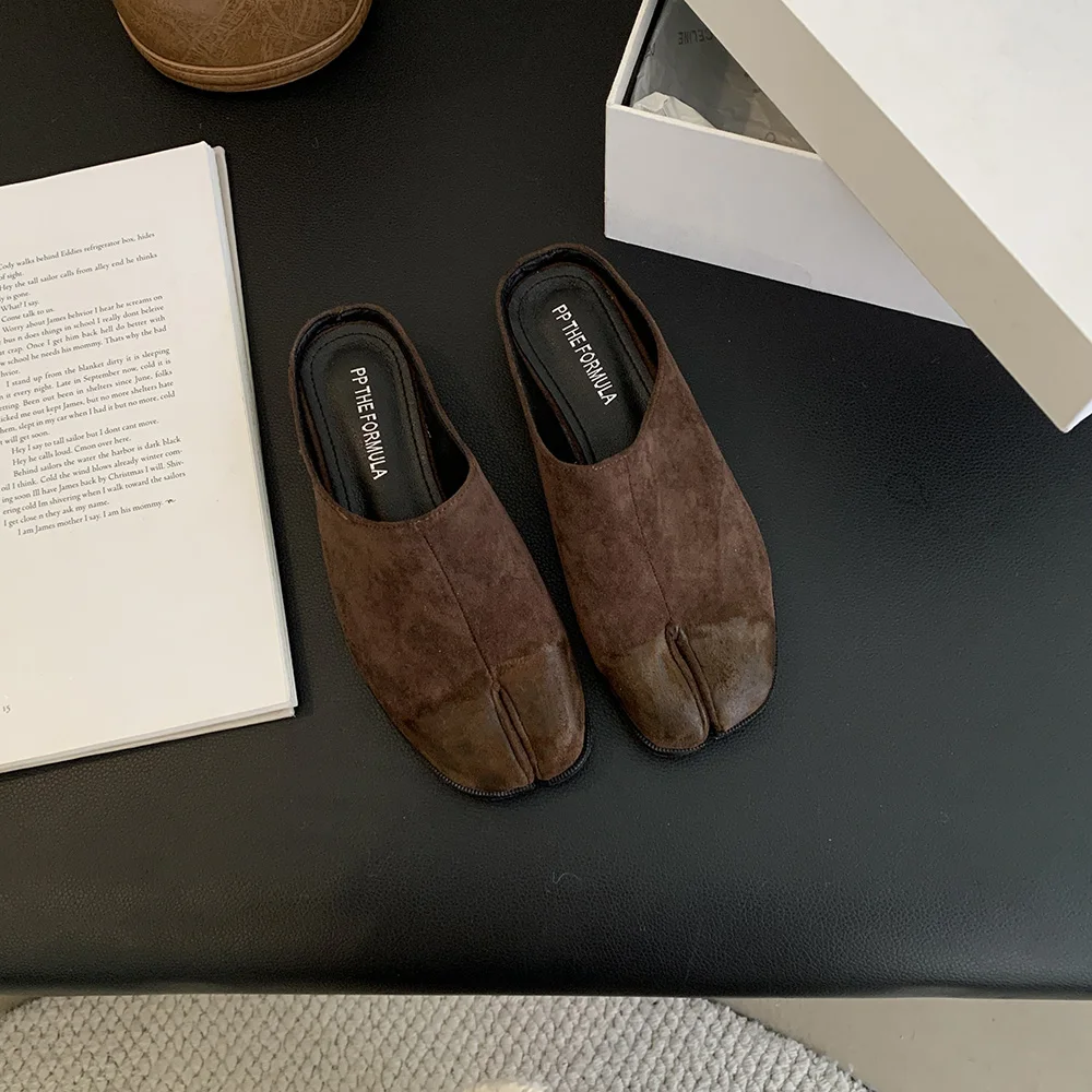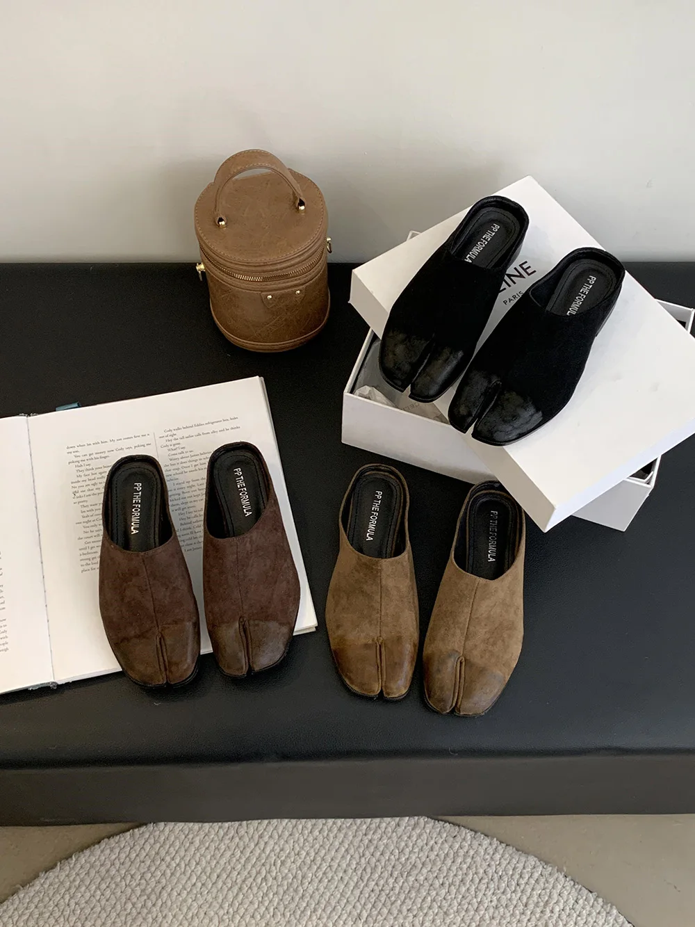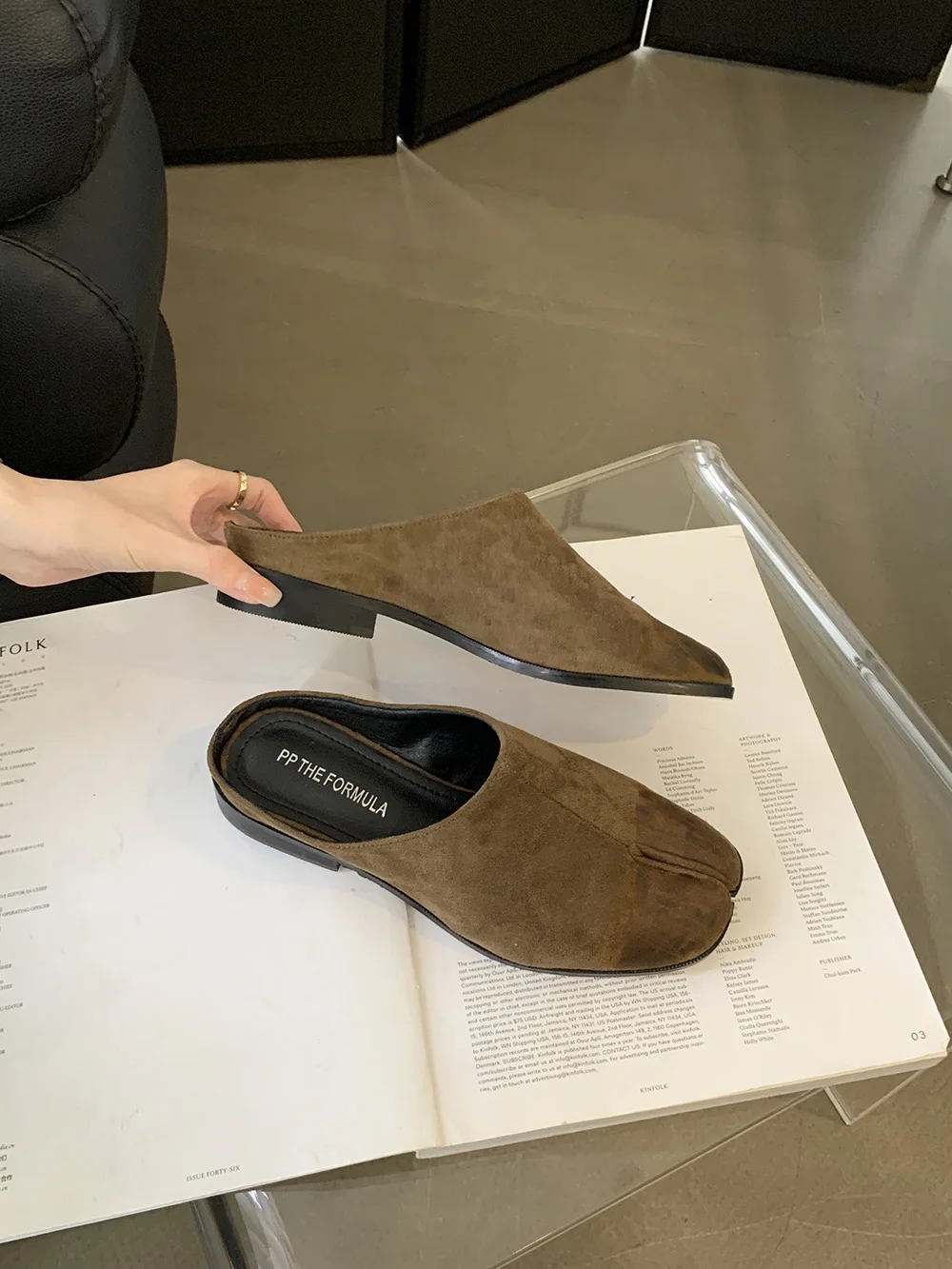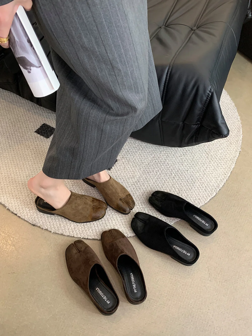 LBSFY - Flock Women Slides Slippers 2024 New Arrivals Clip Toe Summer Outside Dress Shoes Low Heeled Black Khaki Brown Party Pumps 35-39