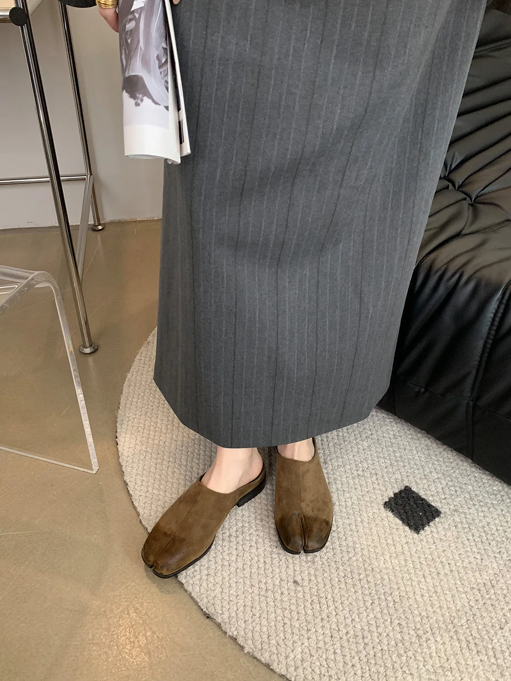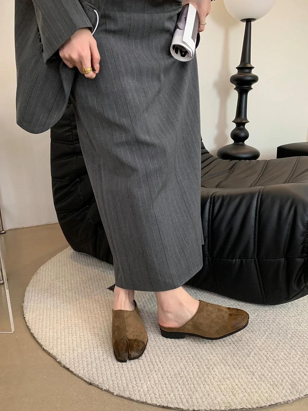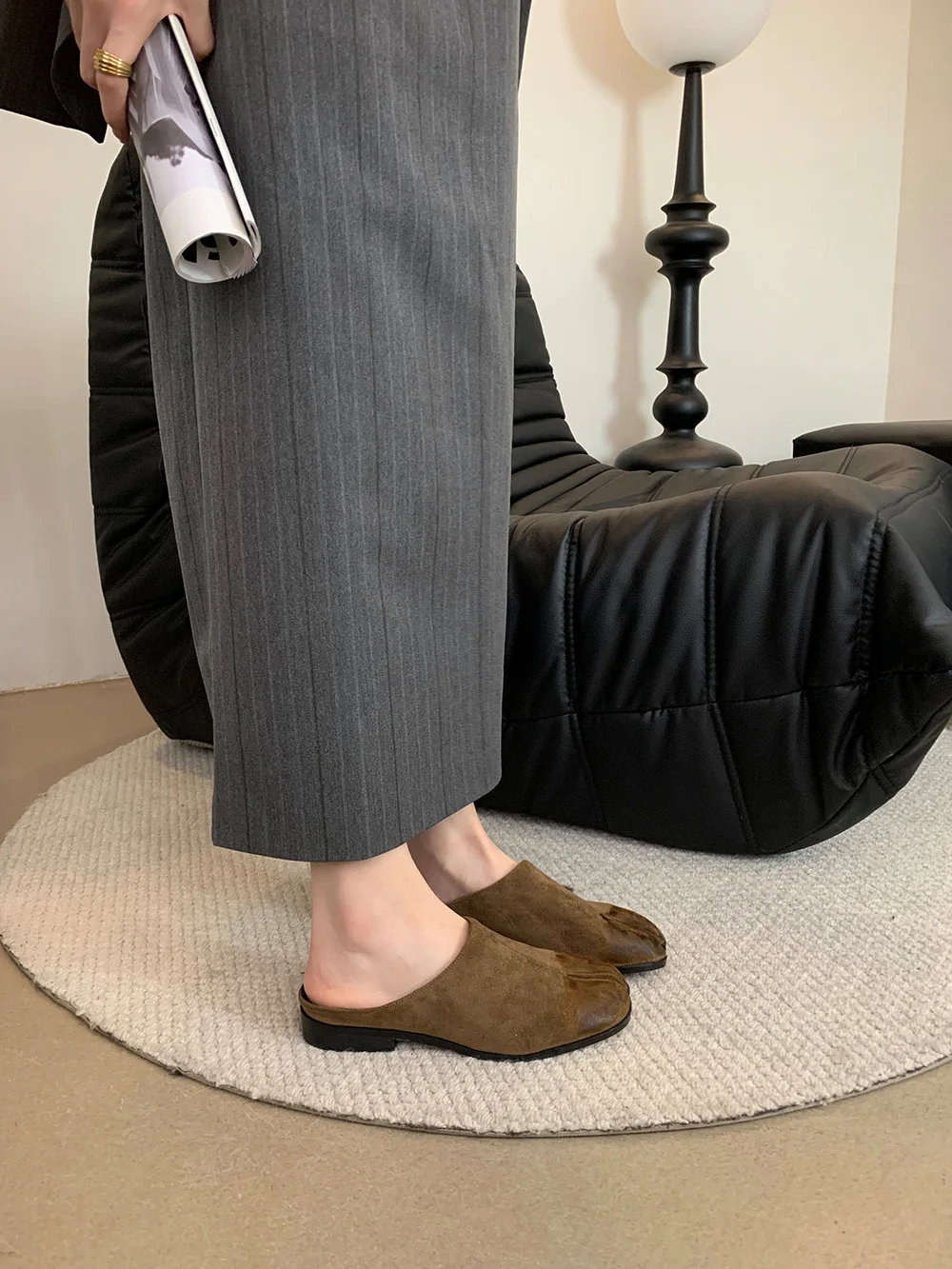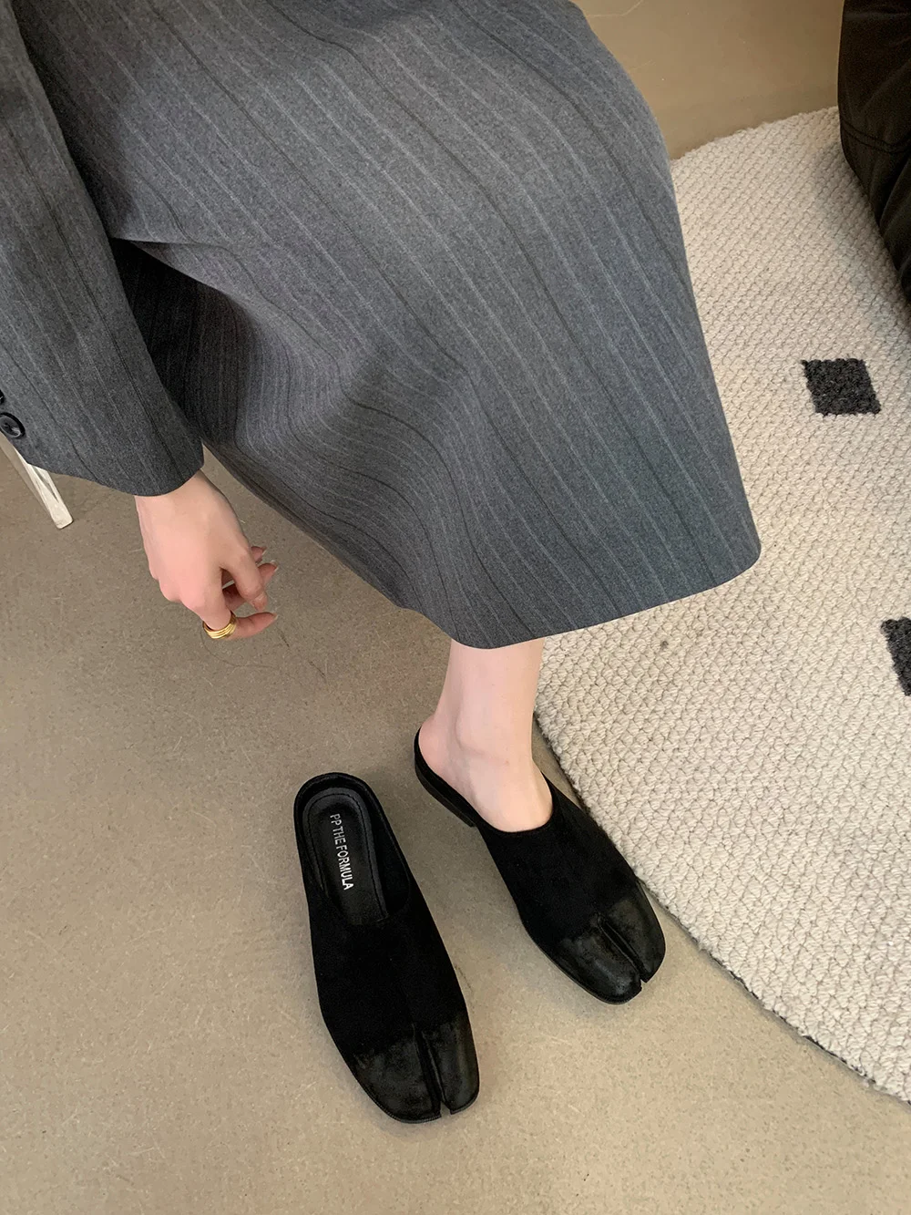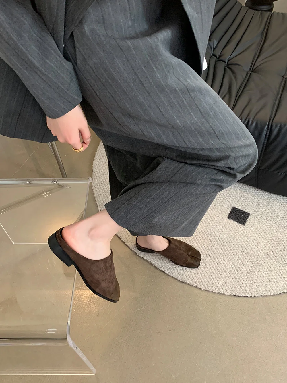 LBSFY - Flock Women Slides Slippers 2024 New Arrivals Clip Toe Summer Outside Dress Shoes Low Heeled Black Khaki Brown Party Pumps 35-39