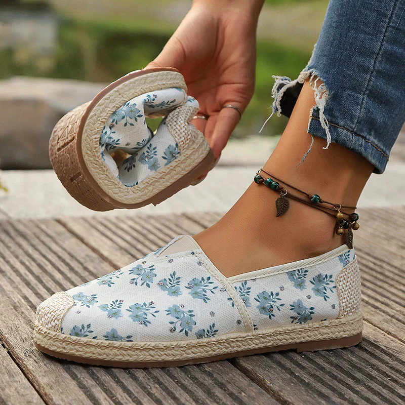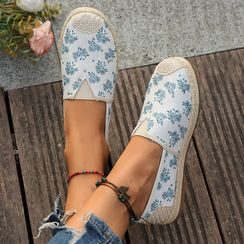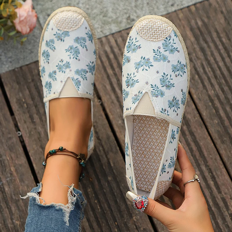 LBSFY - Flowers Print Loafers Shoes Women Autumn Slip-On Breathable Canvas Espadrille Shoes Woman Comfort Non-Slip Casual Flats Female