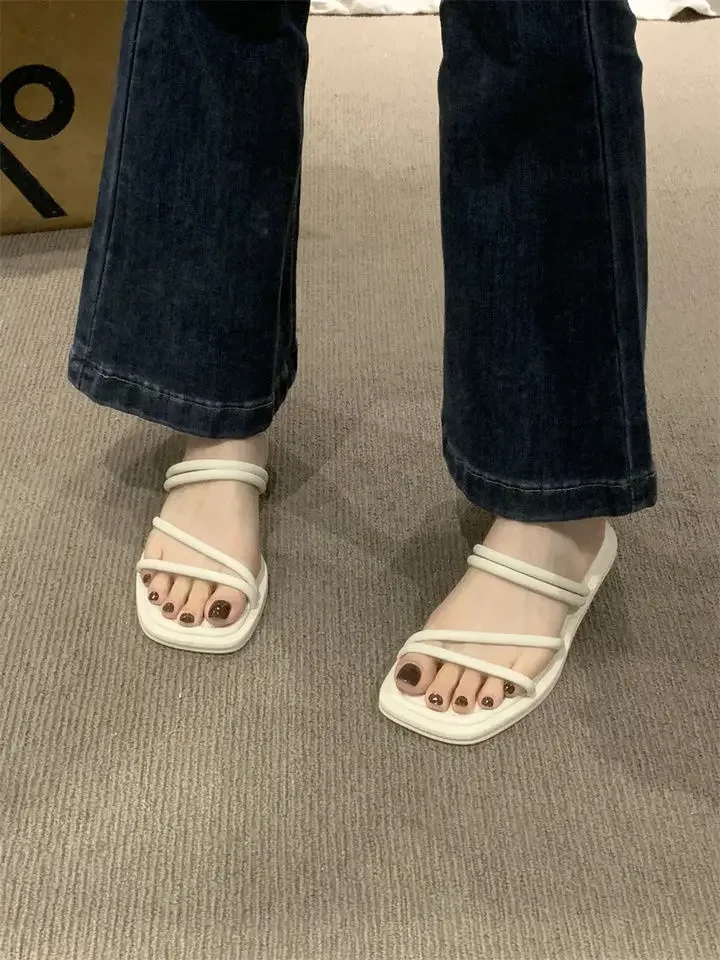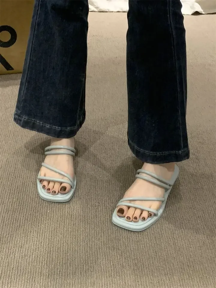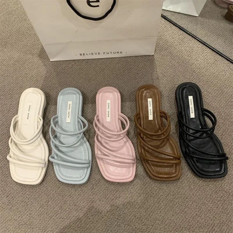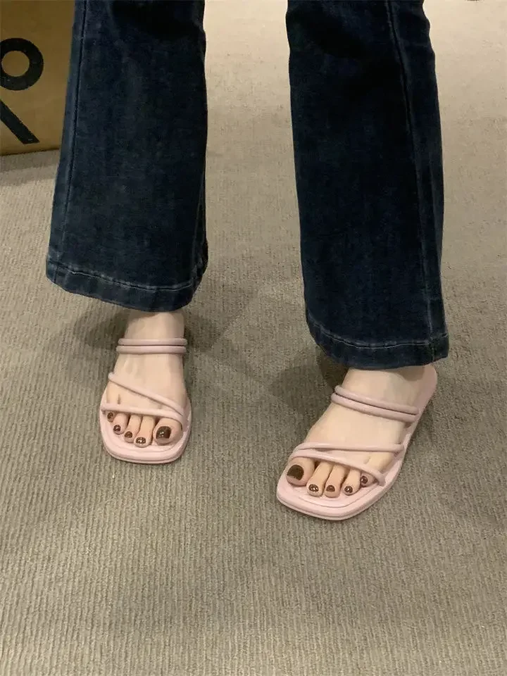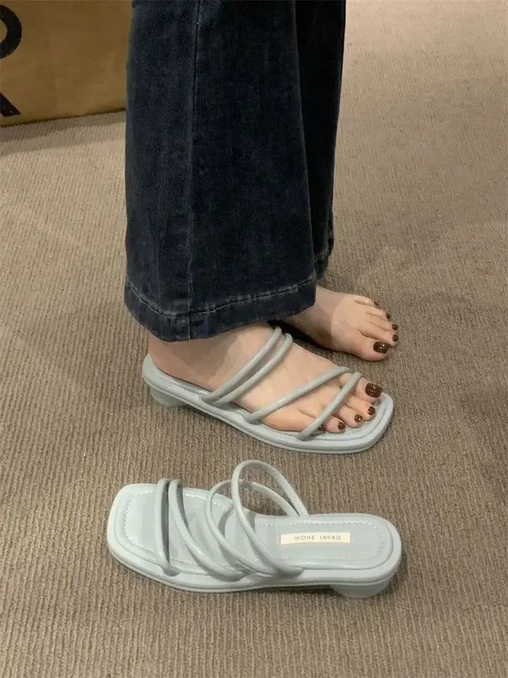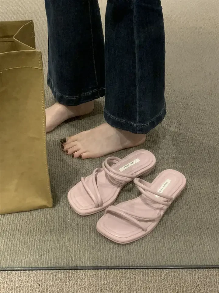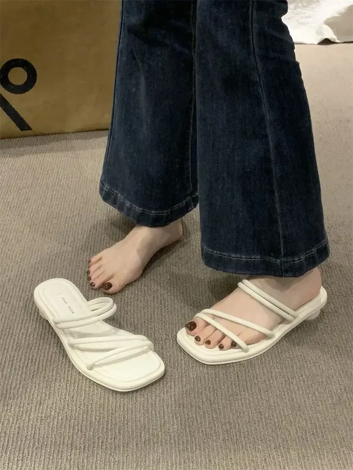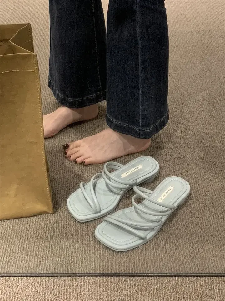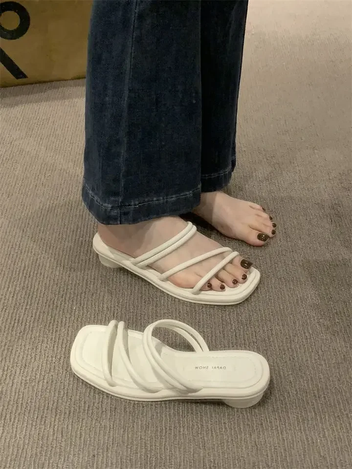 LBSFY -French Style Low Heel Sandals Women's Outdoor Wearable Slippers Exposed Toe Thin Strap Gentle Evening Breeze Slippers