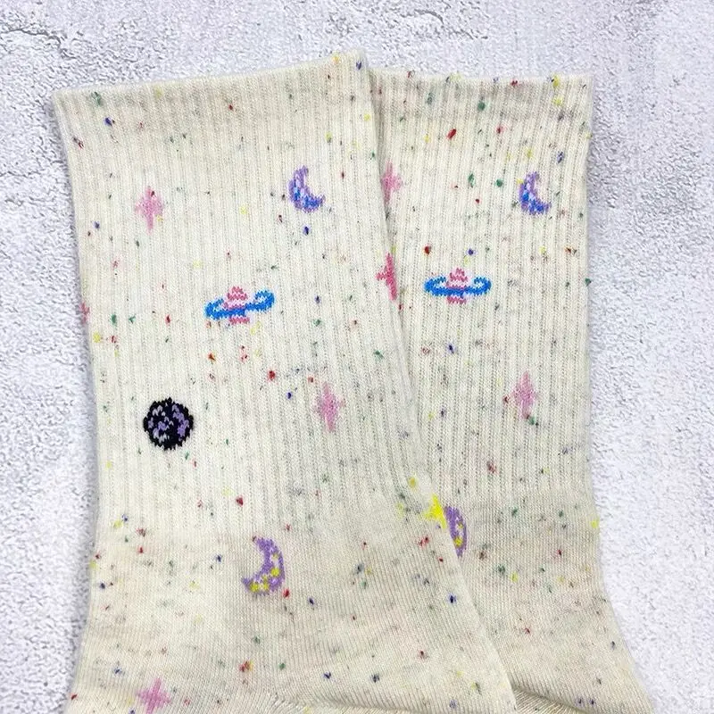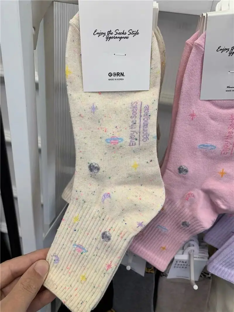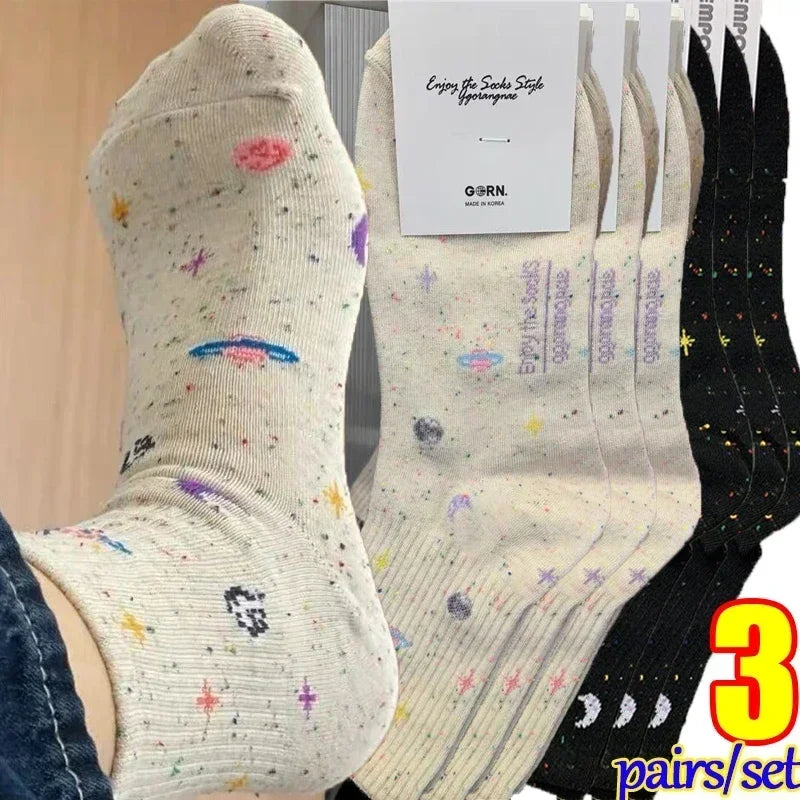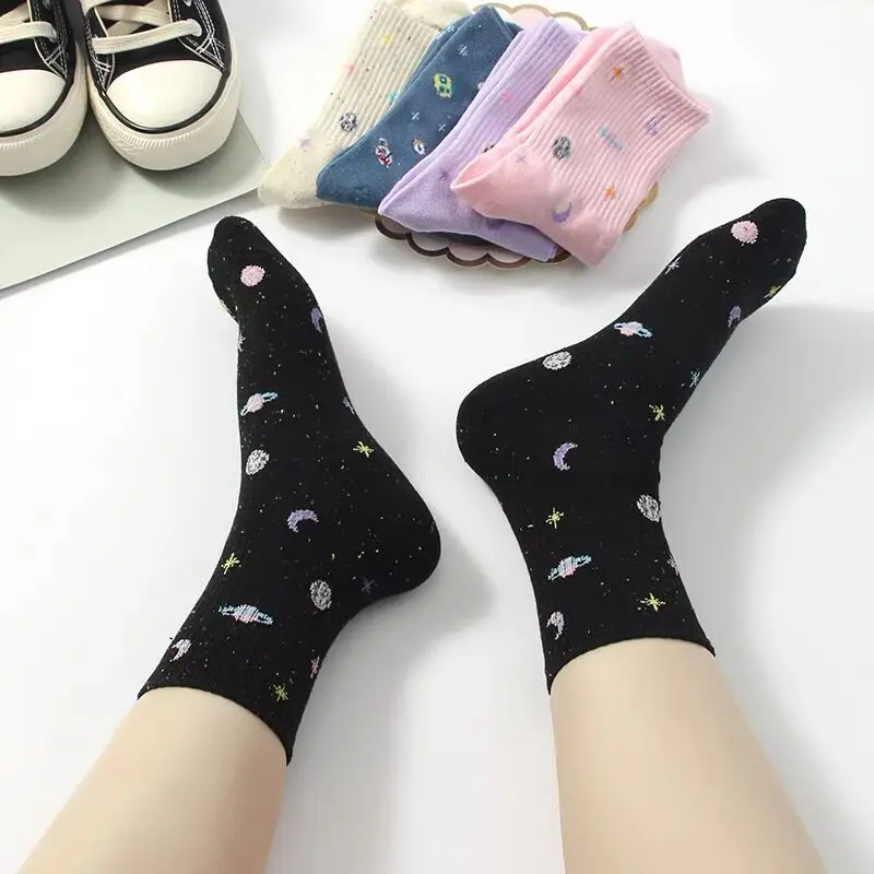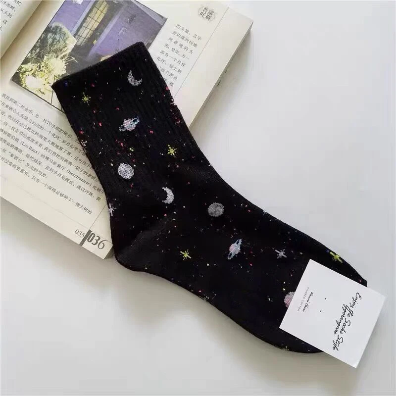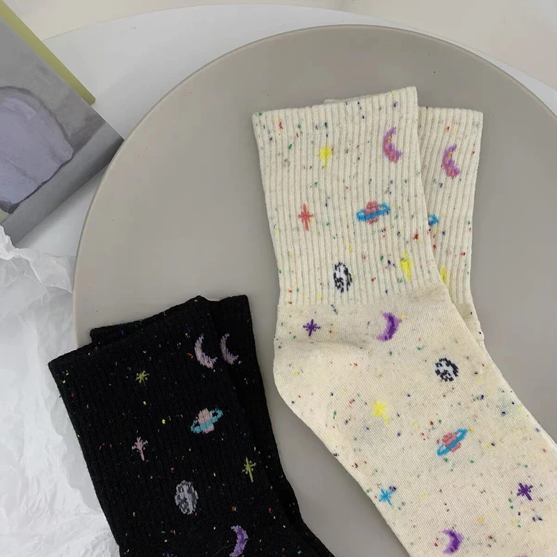 Lbsfy Funny Moon Stars Pattern Socks Women Harajuku Planet Space Tube Sock Female Colorful Sweet Warm Cute Casual Streetwear Meias