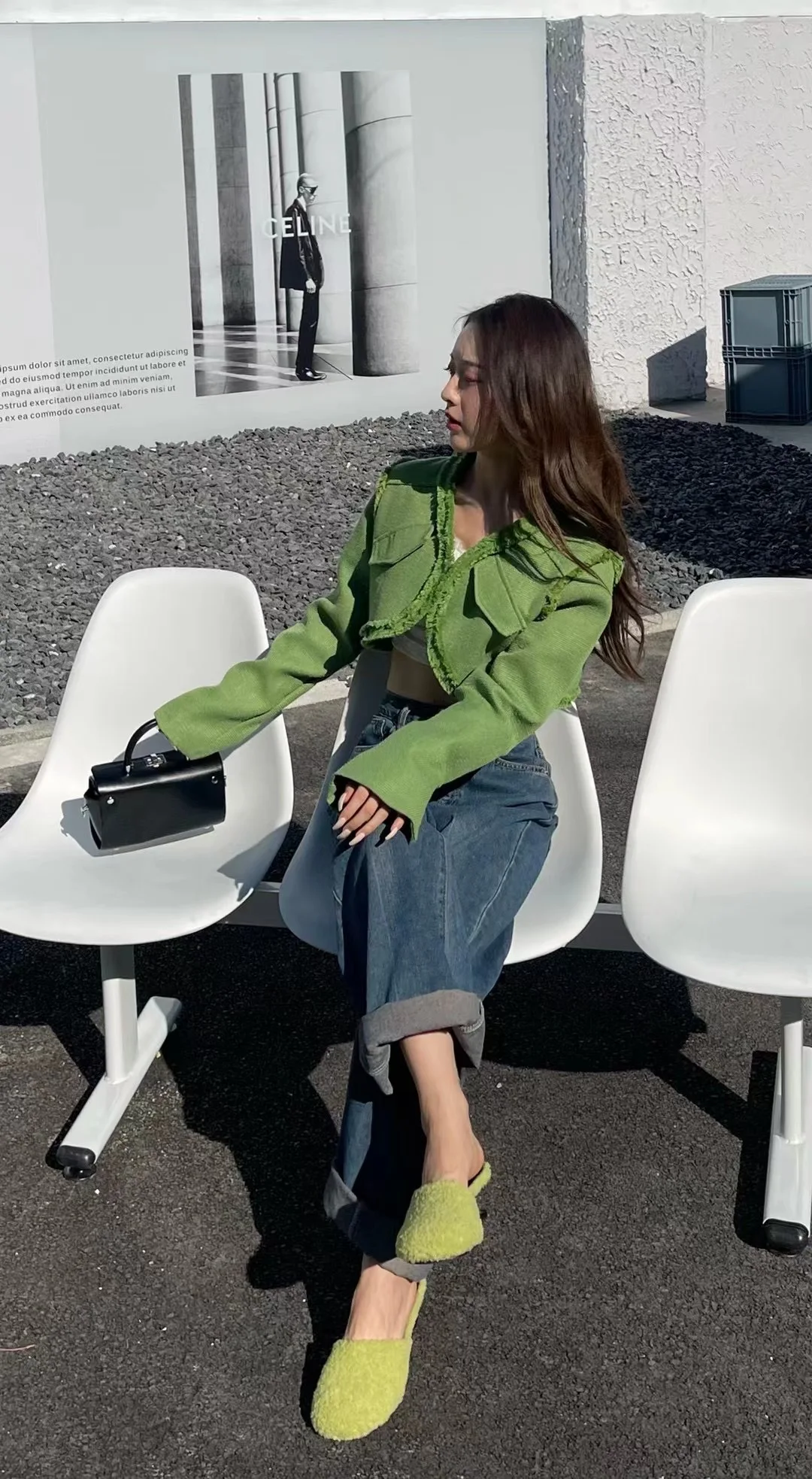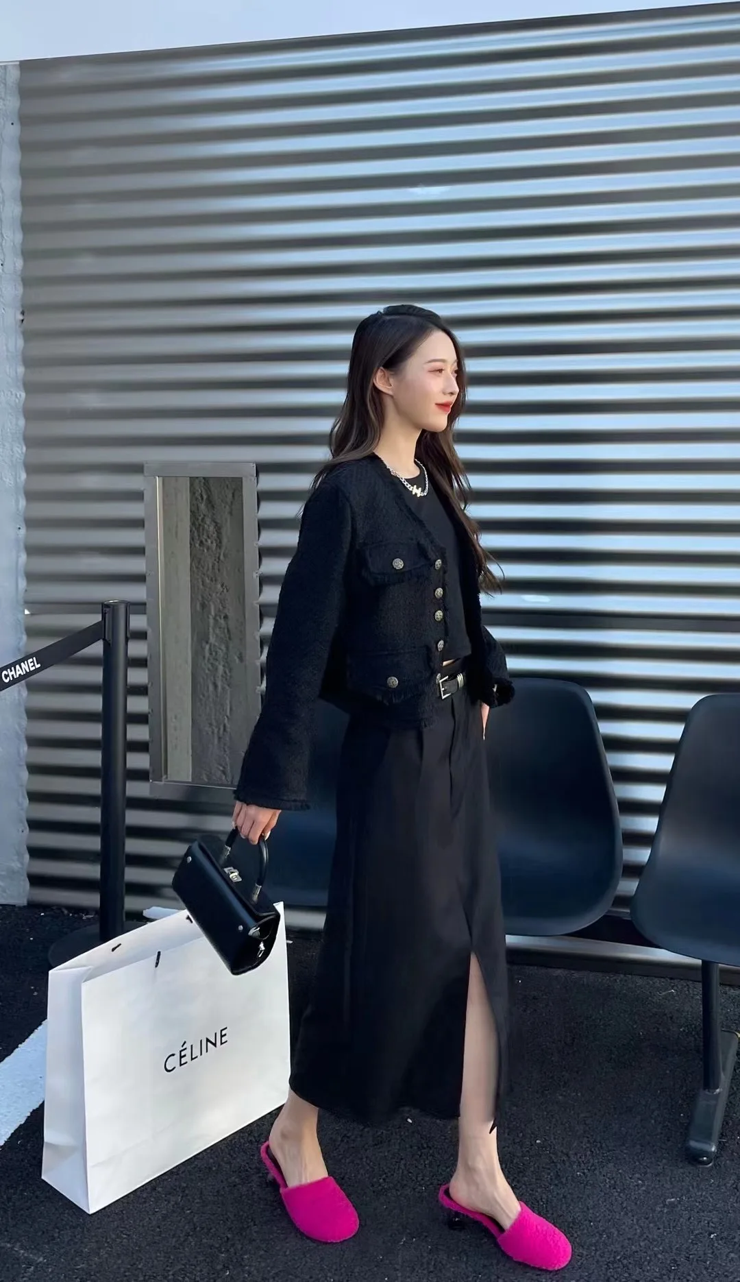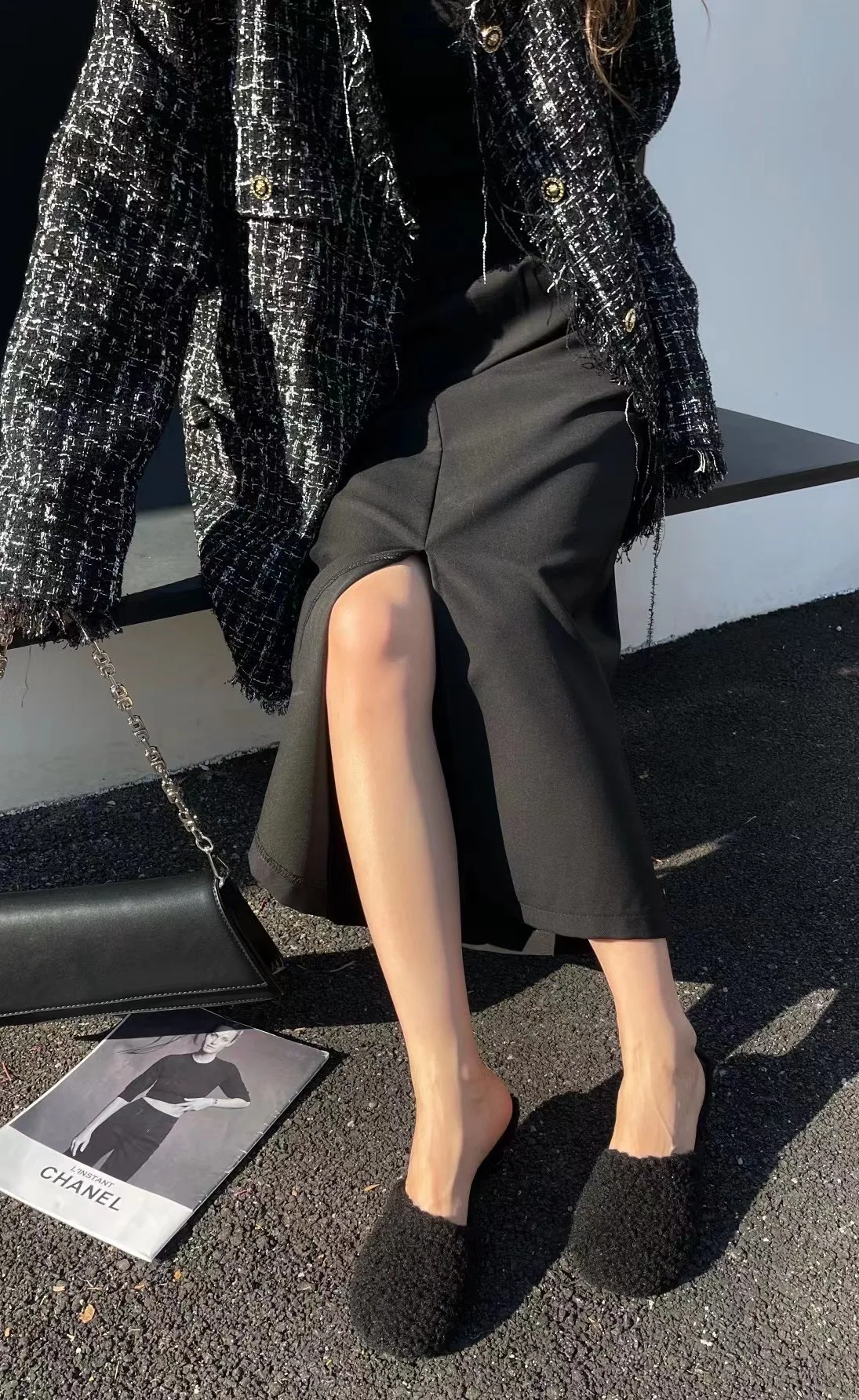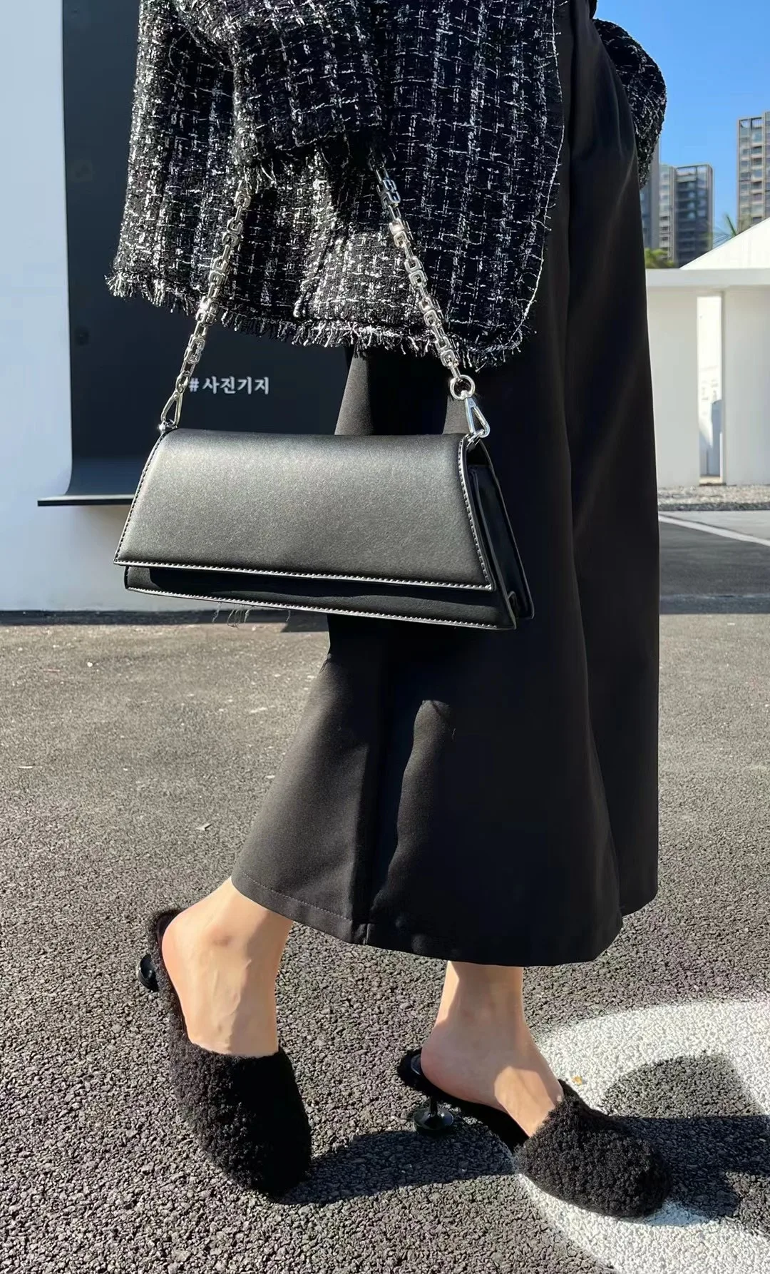 LBSFY - Fur Women Slippers Round Toe Slides Mules Shoes 2024 New Arrivals Thin Mid Heels Black Green Rose Fashion Dress Shoes Woman 39