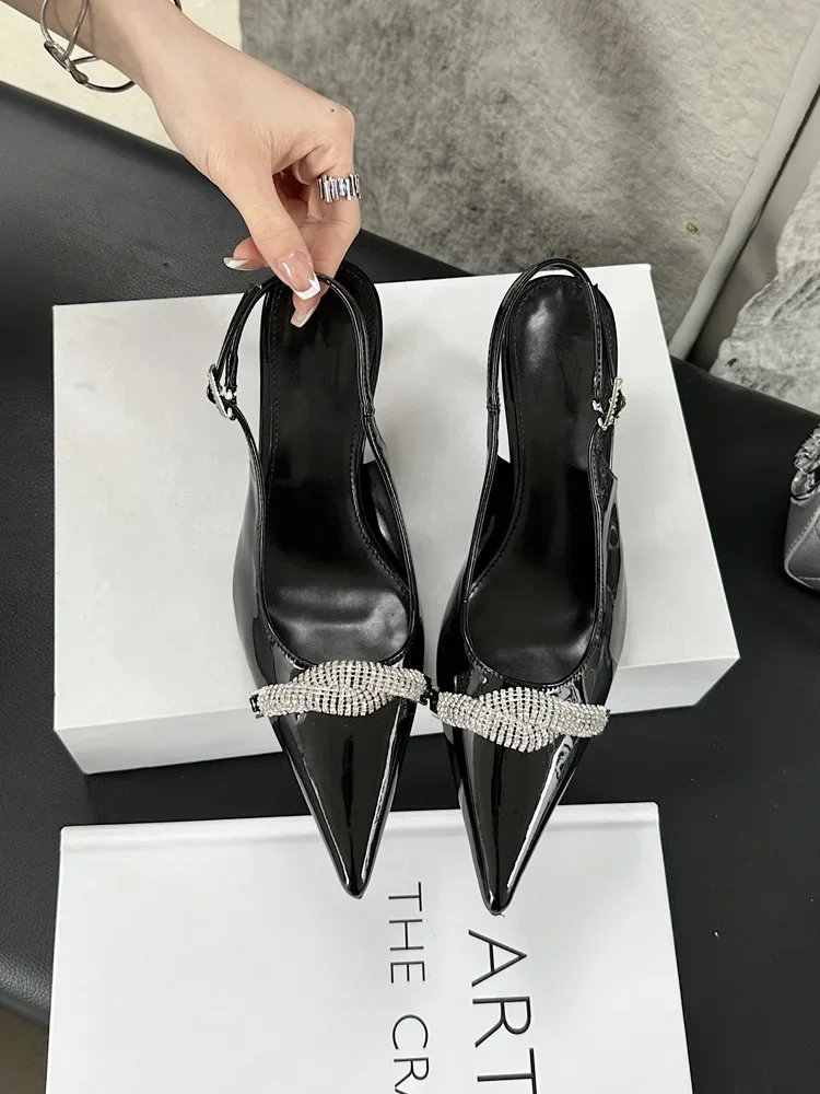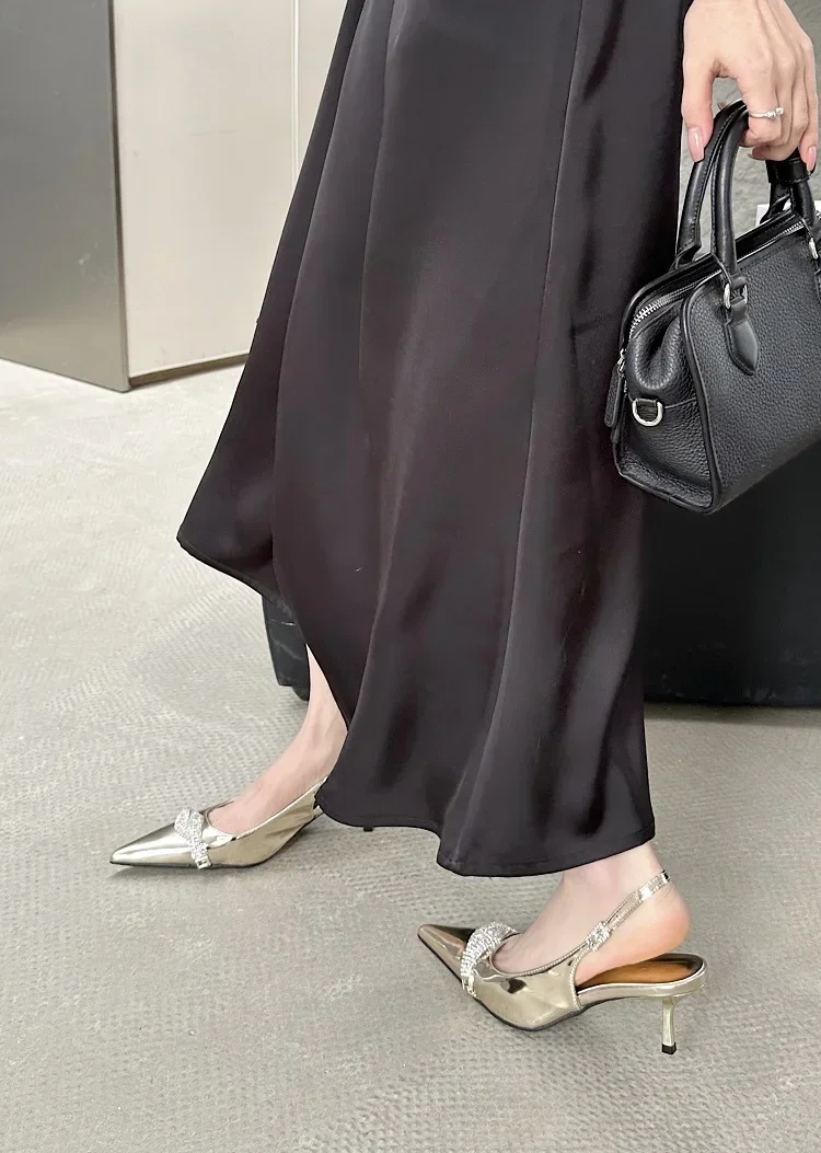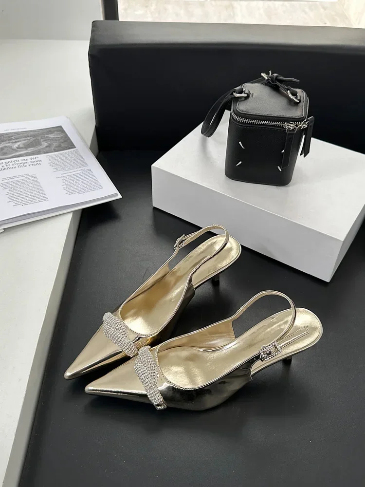 Lbsfy Gold Pointed Toe Pumps Sandals Female Summer 2025 Elegant Slingbacks Shoes Sexy Crystal High Heels Wedding Party Shoes Women