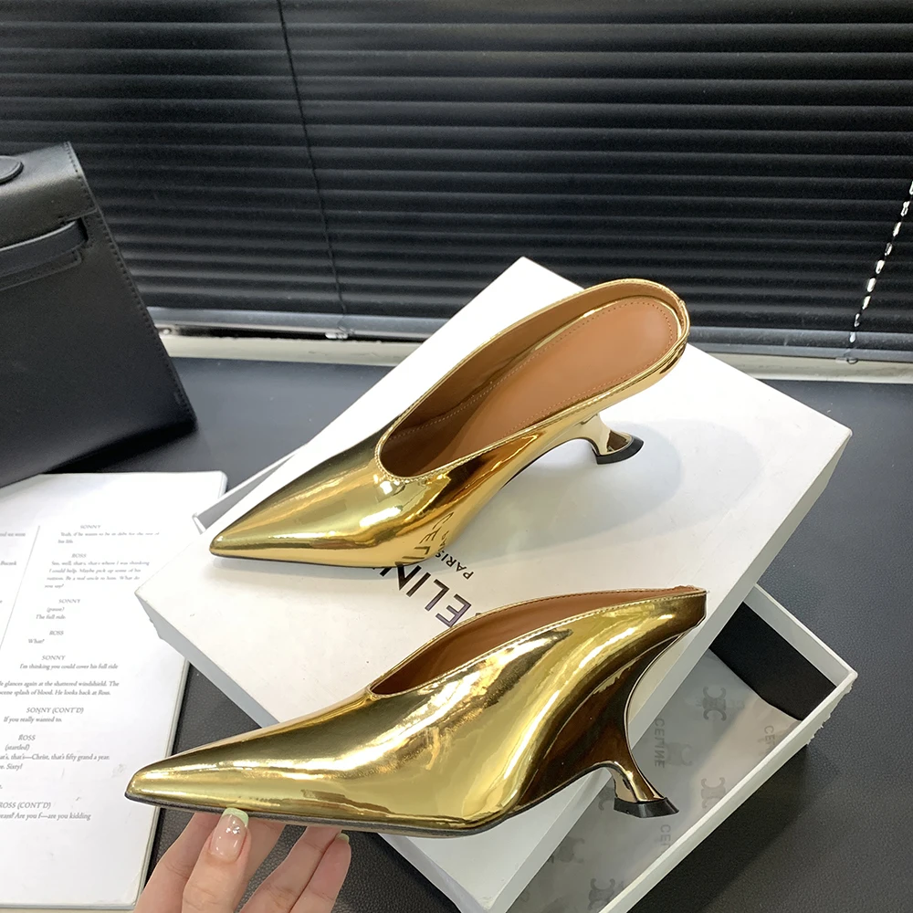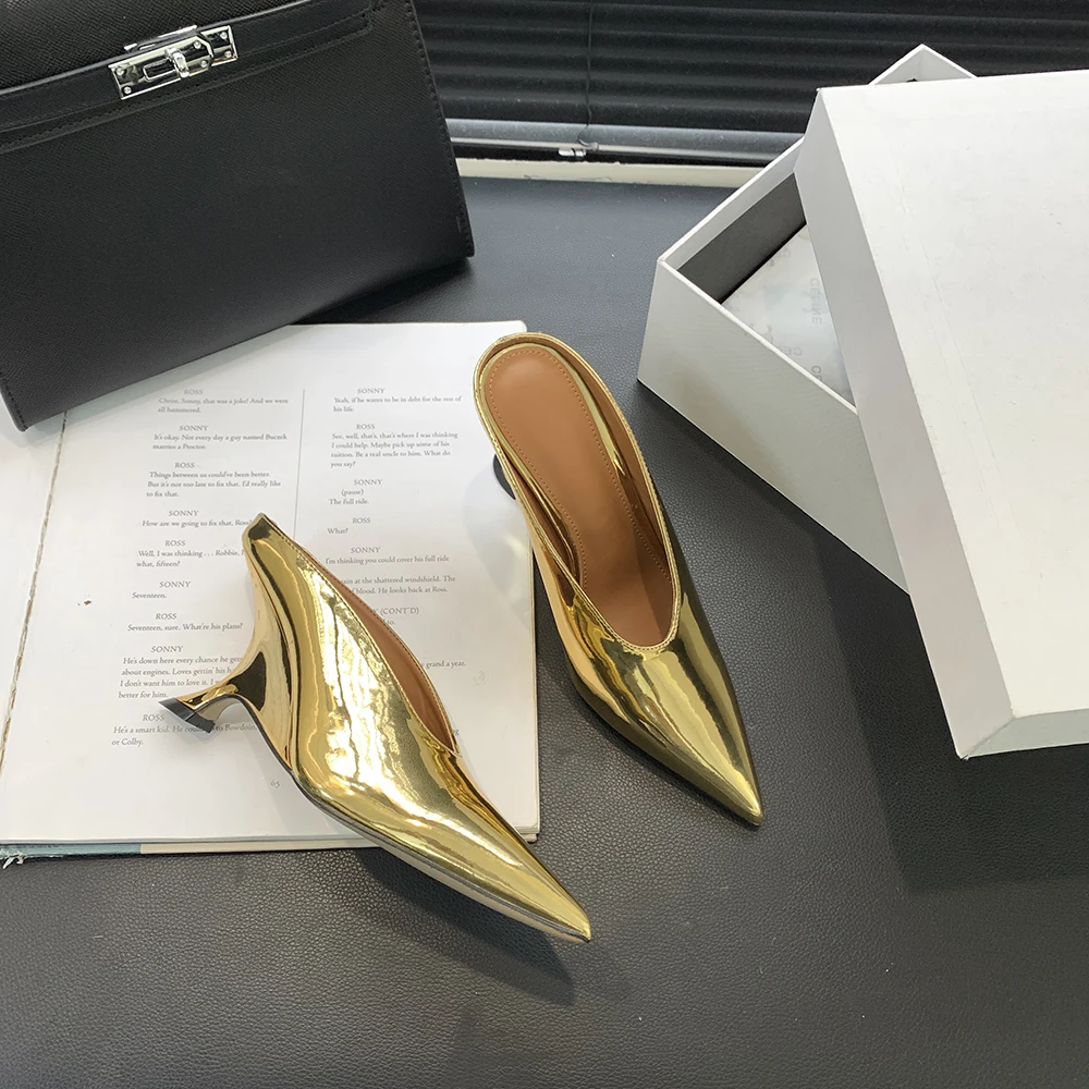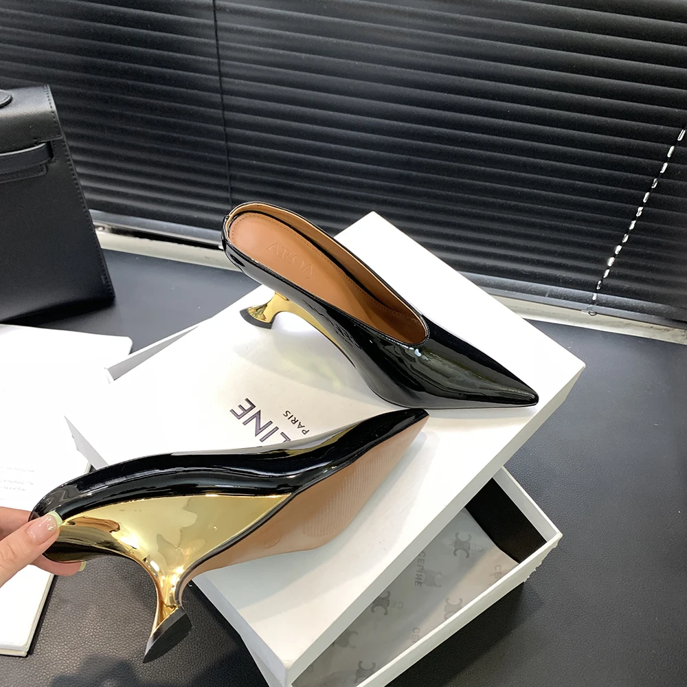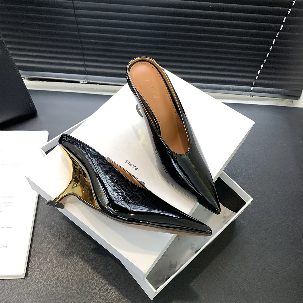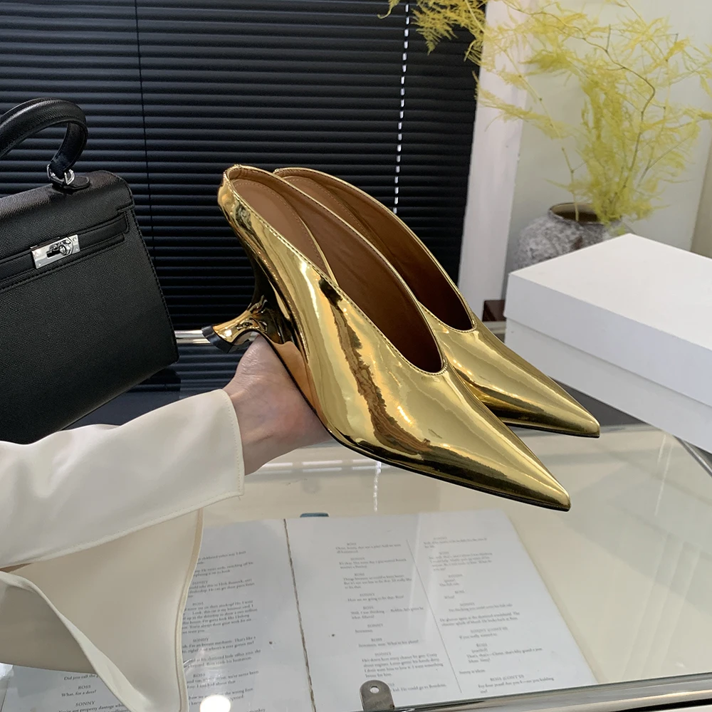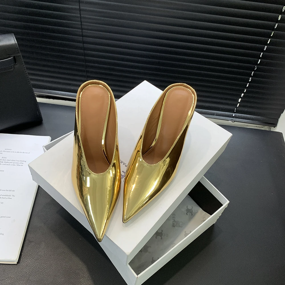 LBSFY - Gold Silver Black Women Sandals Slides Pointed Toe Summer Outside Thick Wedge High Heels Slip On Party Pumps Sandals Sexy Pumps