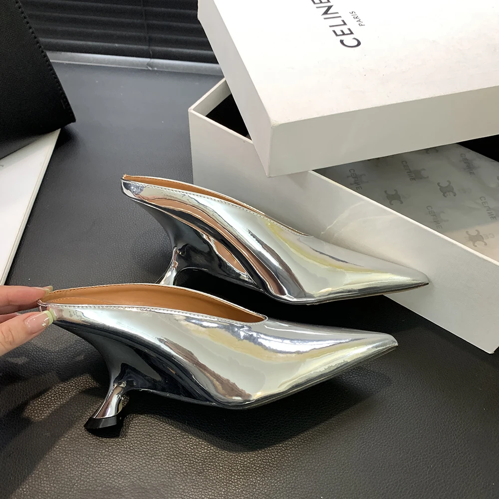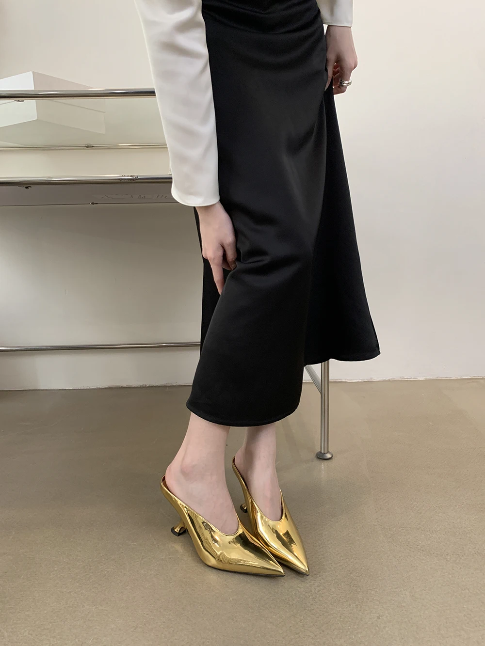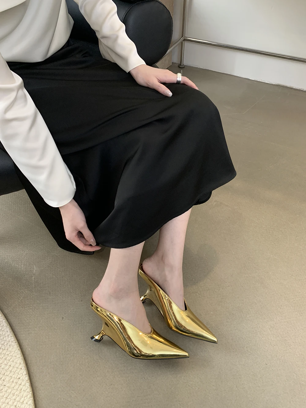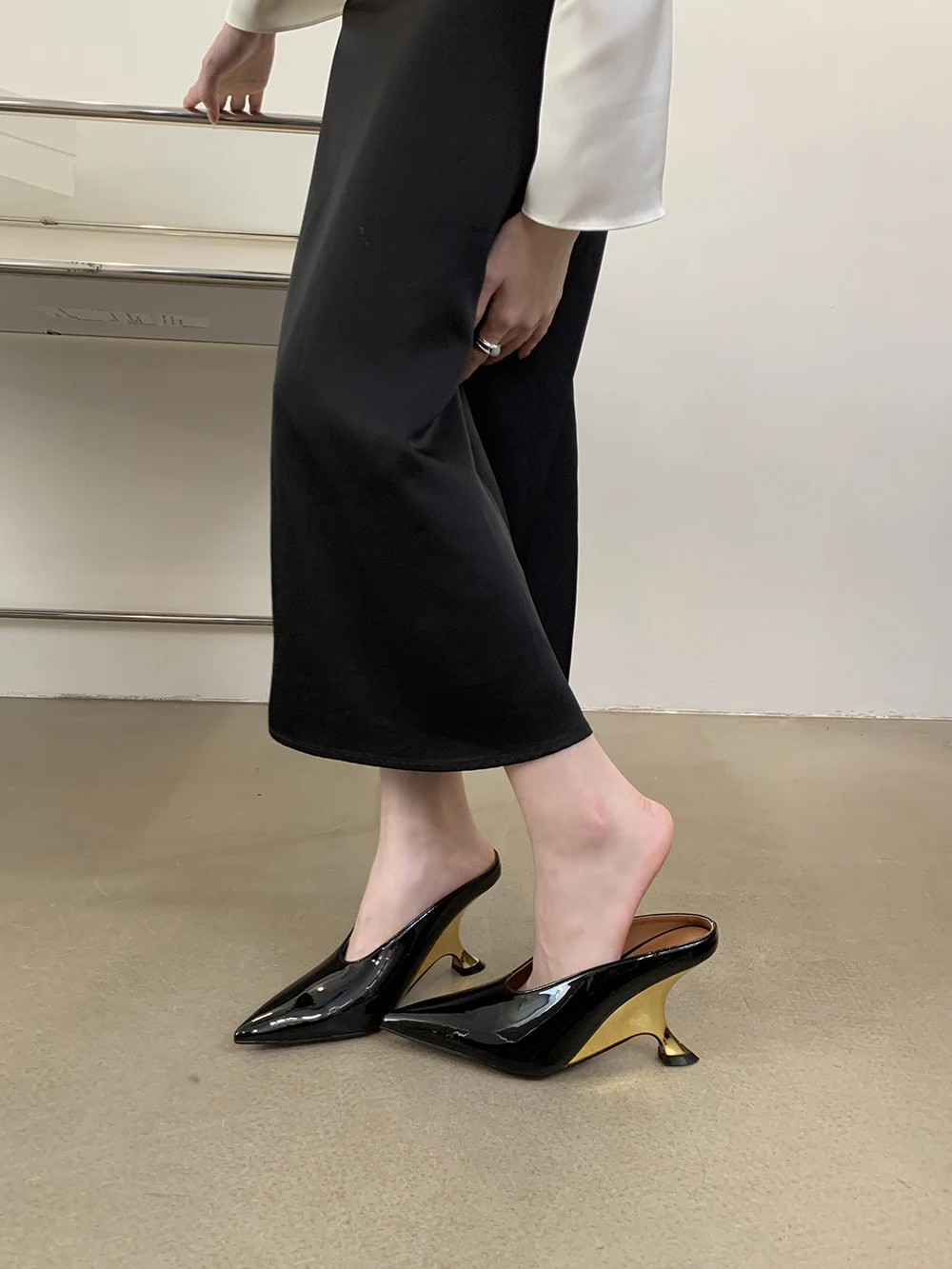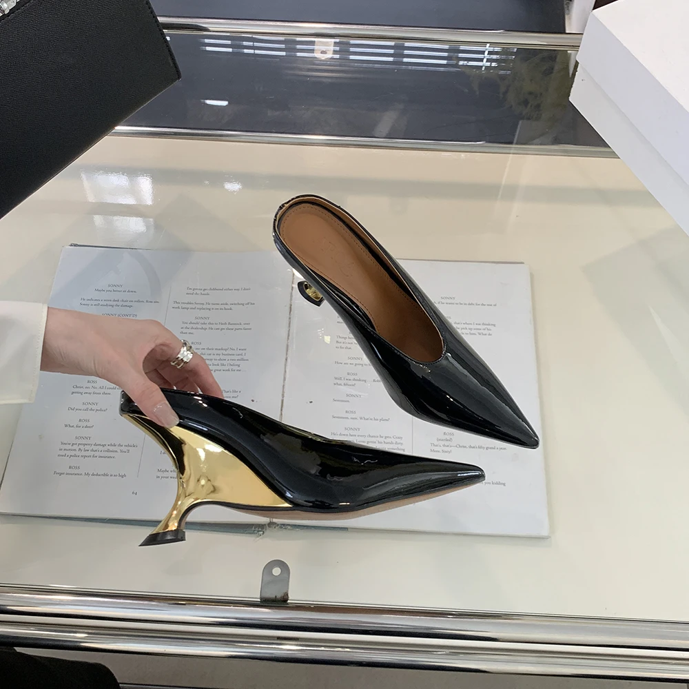 LBSFY - Gold Silver Black Women Sandals Slides Pointed Toe Summer Outside Thick Wedge High Heels Slip On Party Pumps Sandals Sexy Pumps