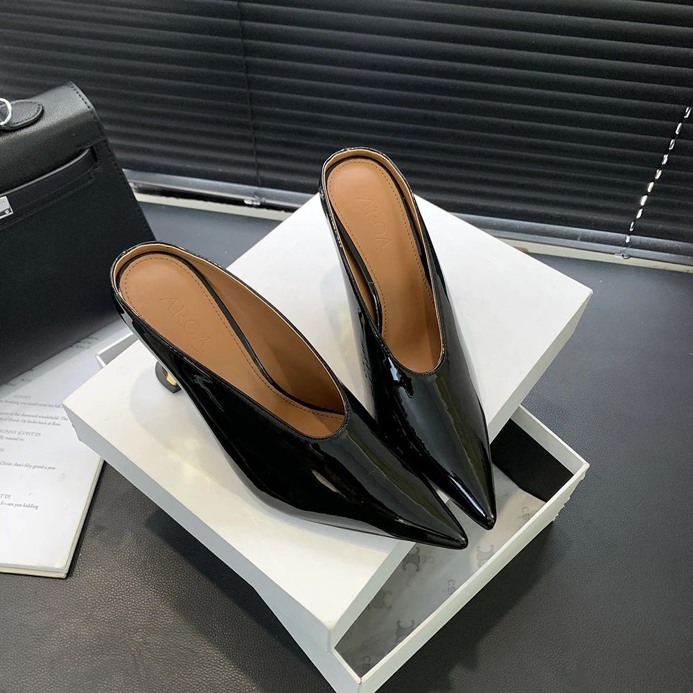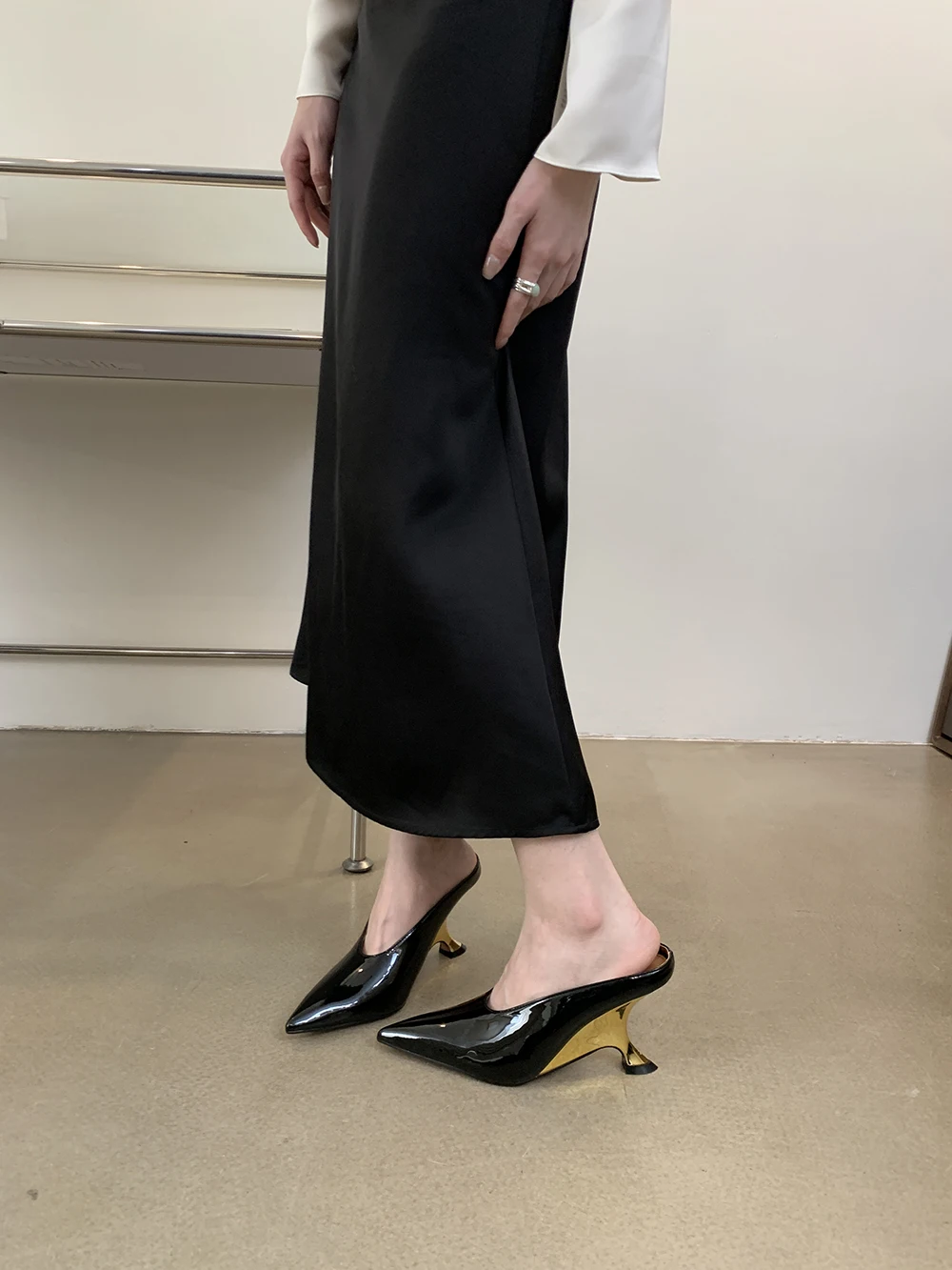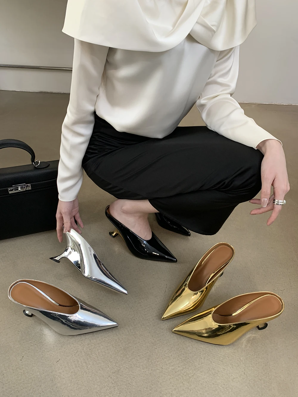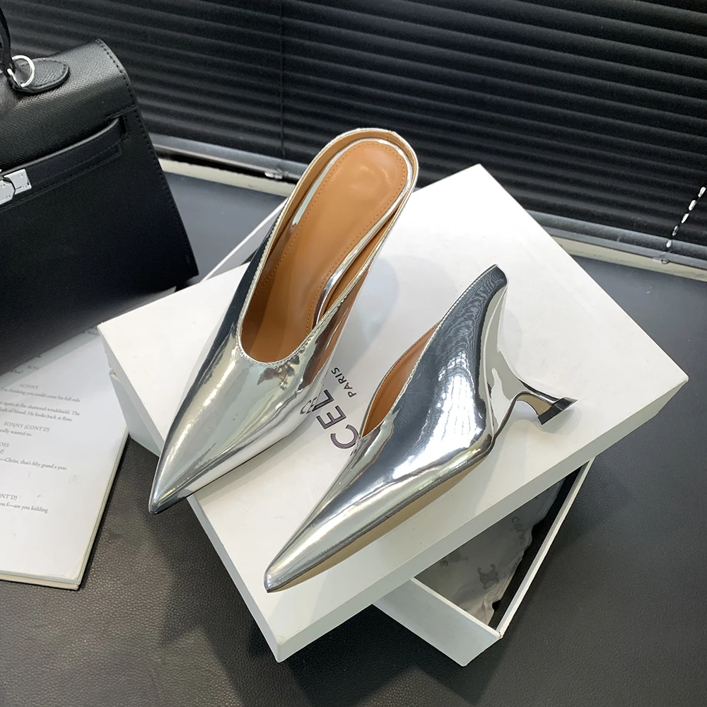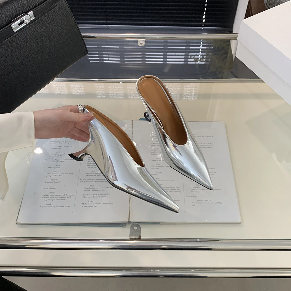 LBSFY - Gold Silver Black Women Sandals Slides Pointed Toe Summer Outside Thick Wedge High Heels Slip On Party Pumps Sandals Sexy Pumps