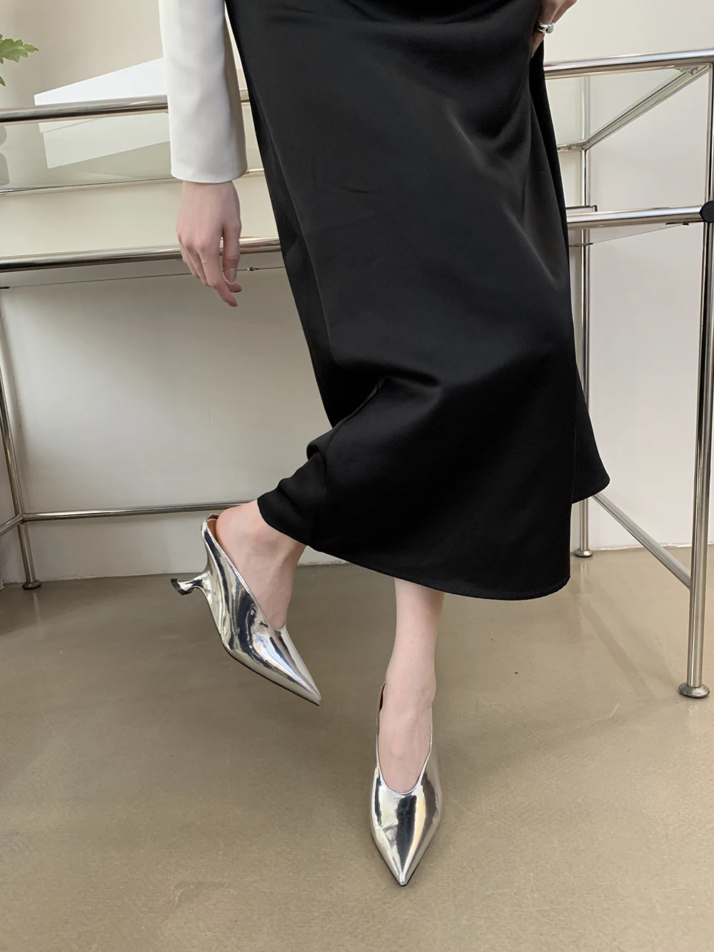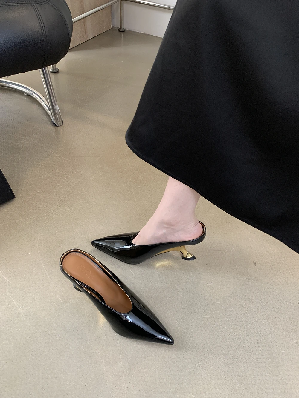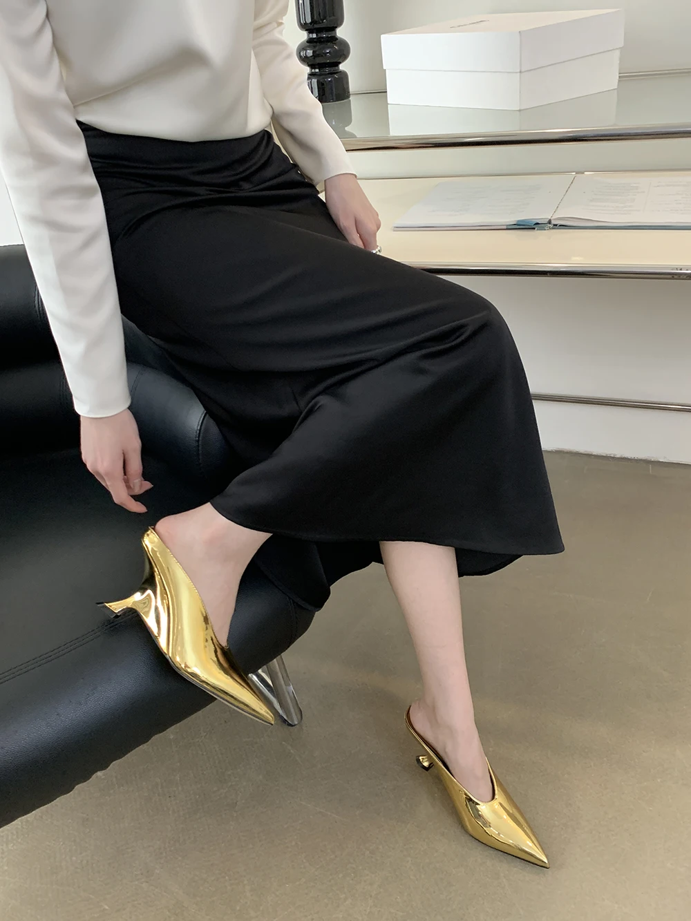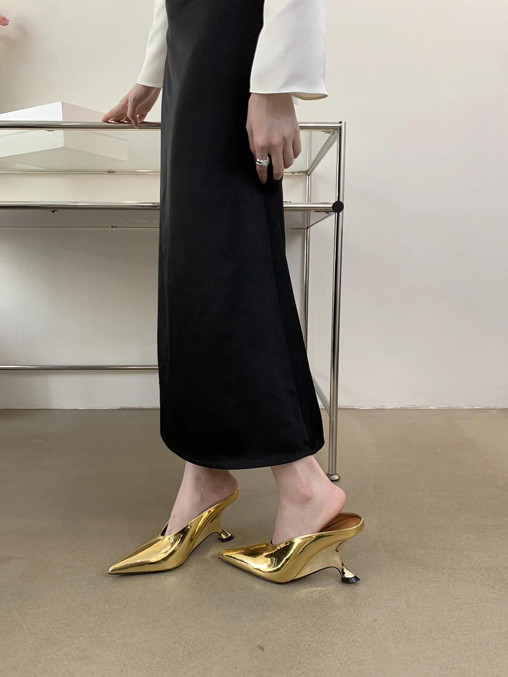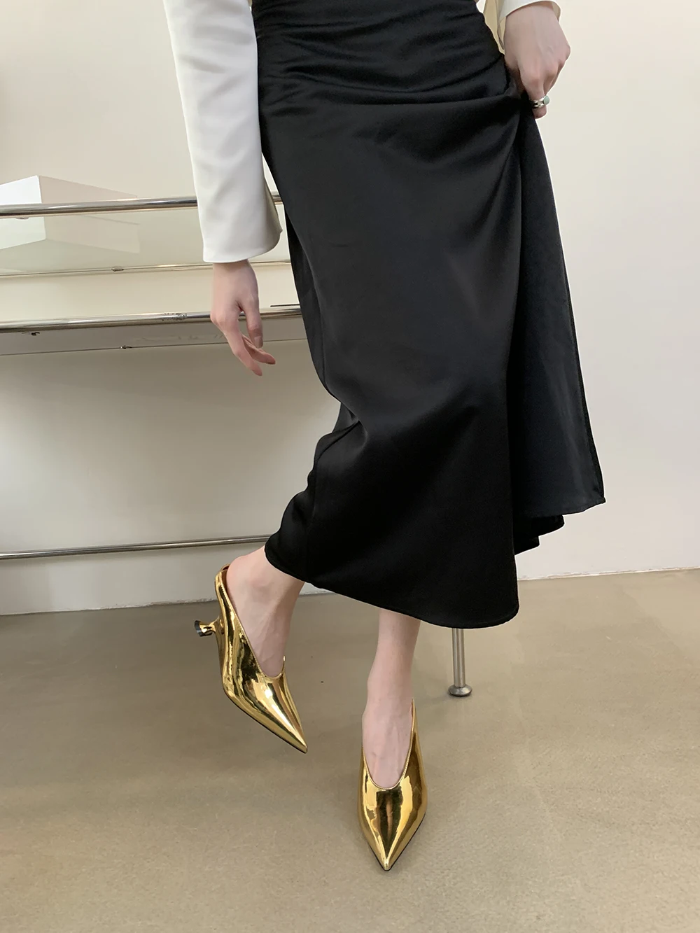 LBSFY - Gold Silver Black Women Sandals Slides Pointed Toe Summer Outside Thick Wedge High Heels Slip On Party Pumps Sandals Sexy Pumps