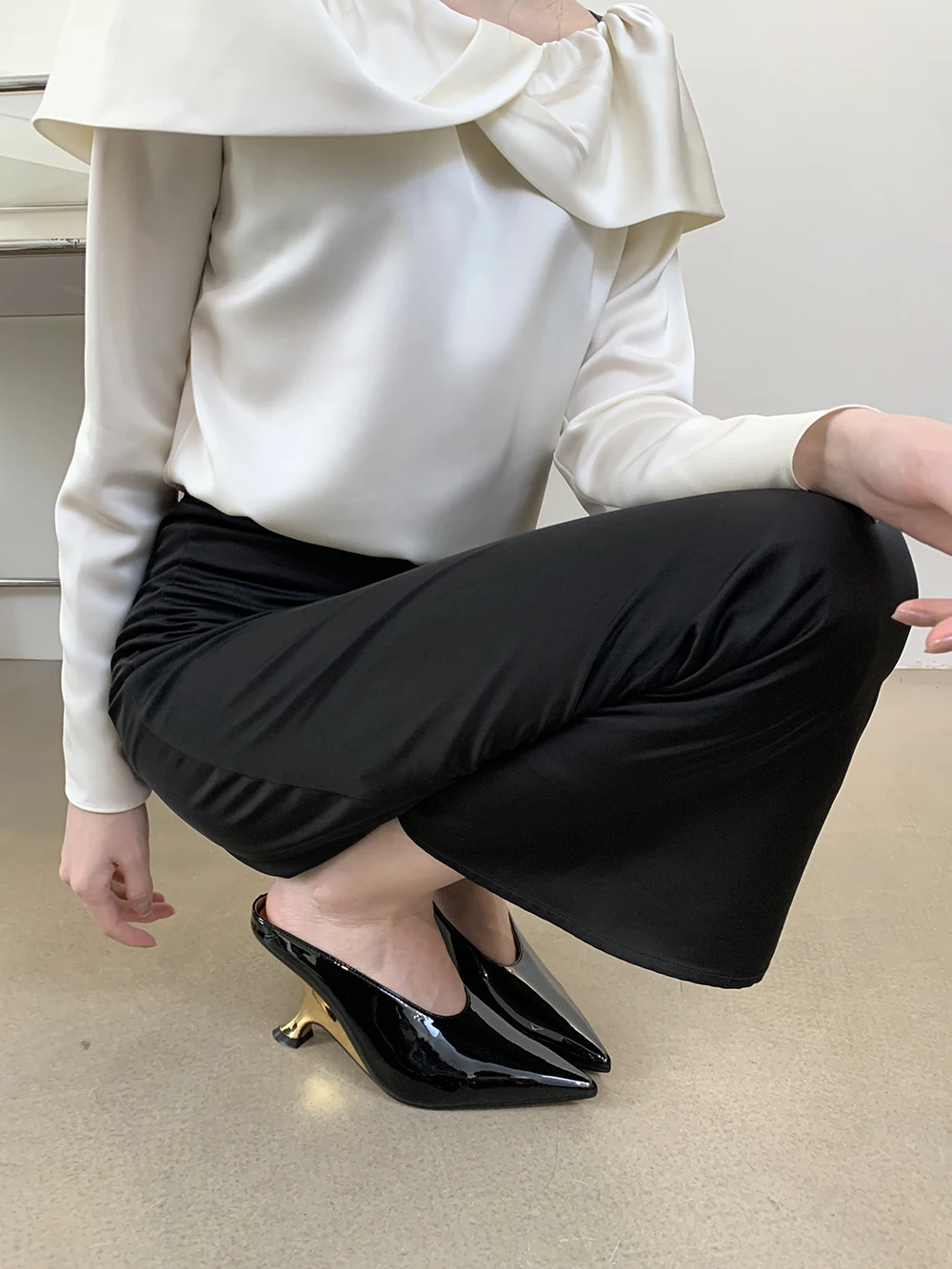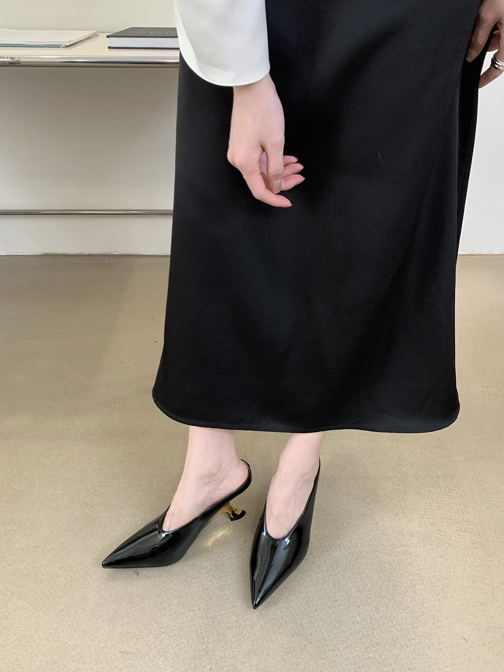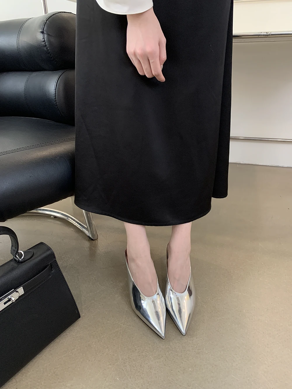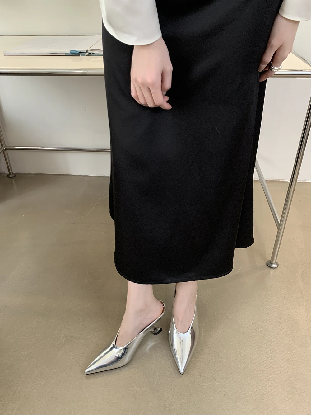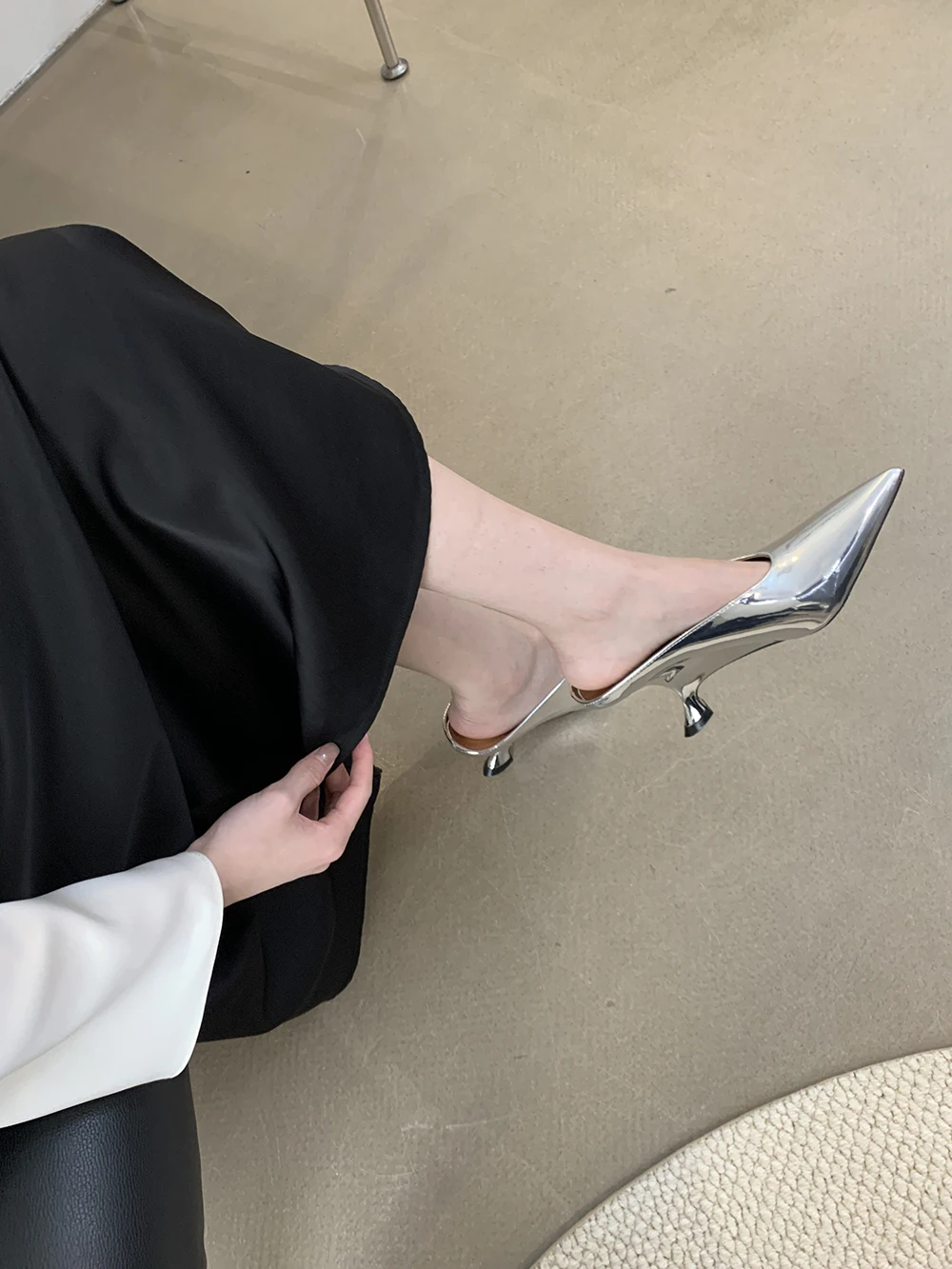 LBSFY - Gold Silver Black Women Sandals Slides Pointed Toe Summer Outside Thick Wedge High Heels Slip On Party Pumps Sandals Sexy Pumps