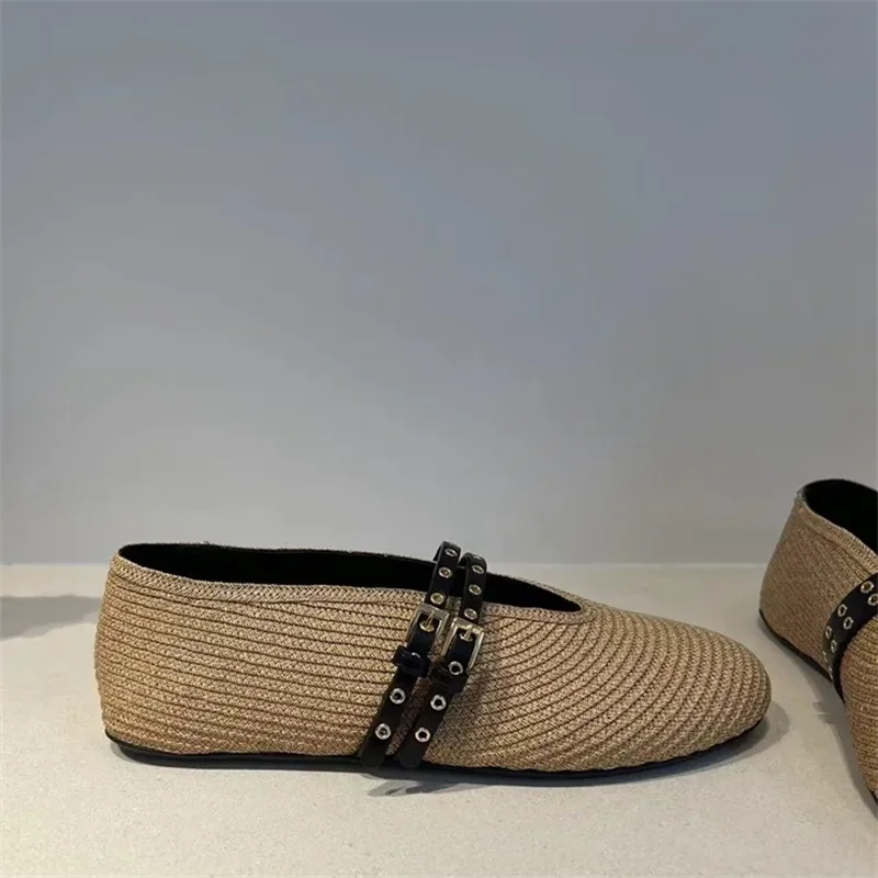 Lbsfy Hand Knitting Buckle Strap Women Ballet Flats Shoes Solid Color Casual Women Mary Janes Shoes Breathable Round Toe Loafers