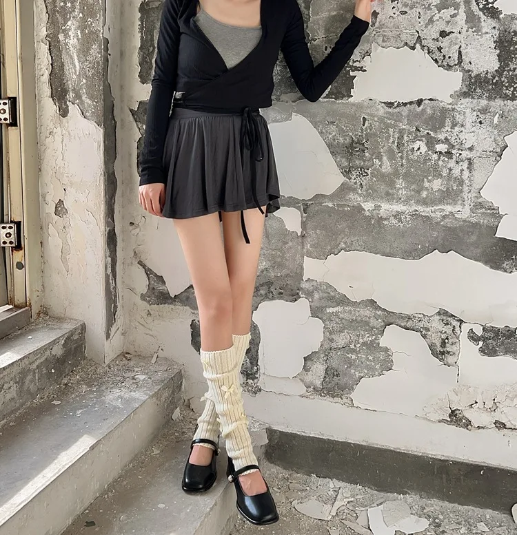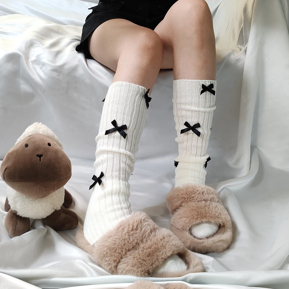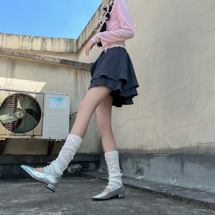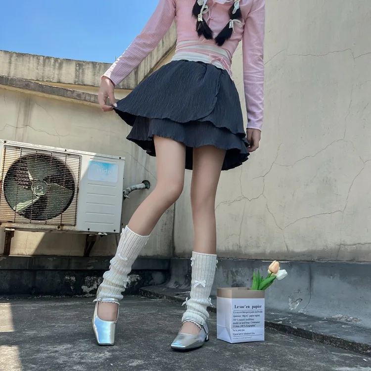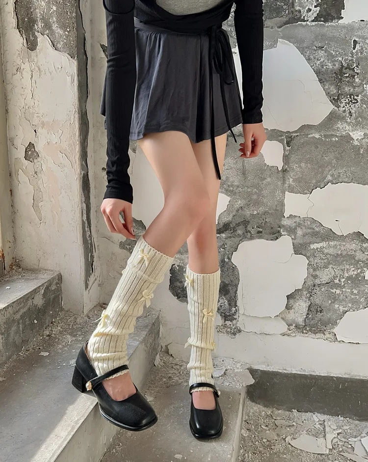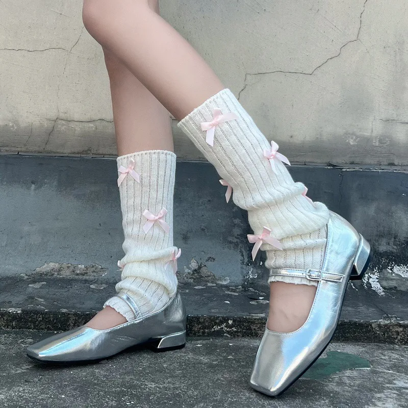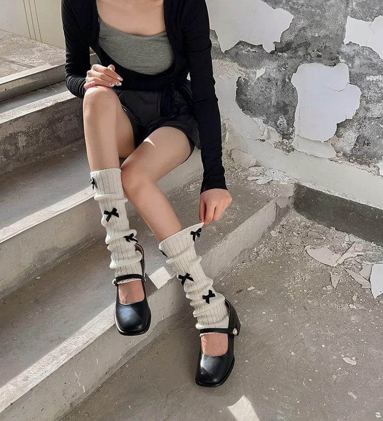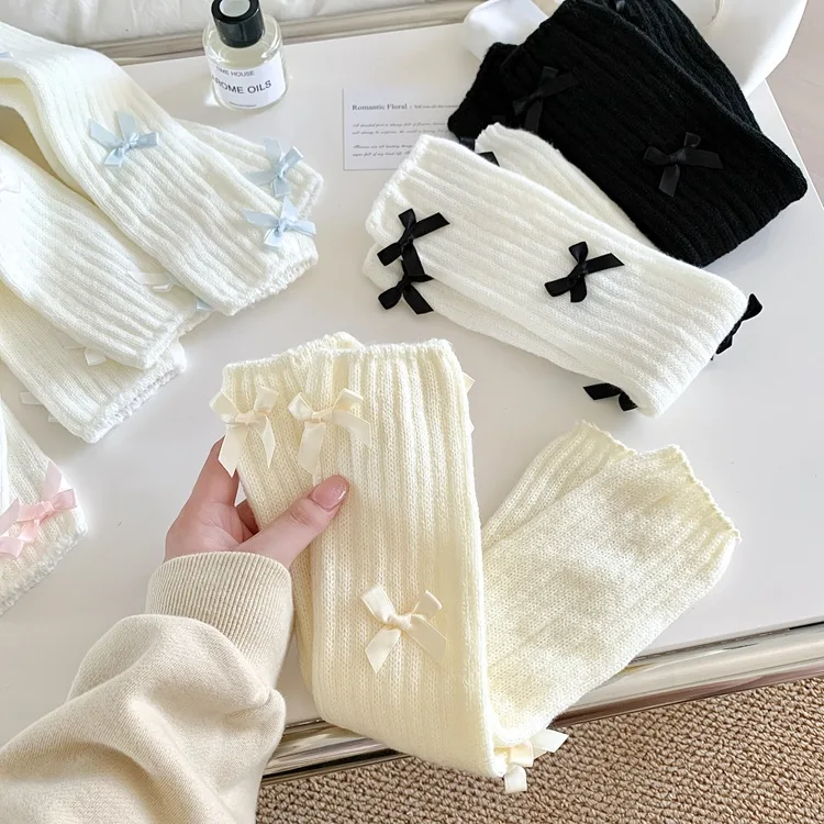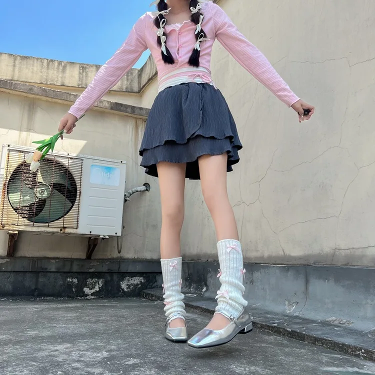 Lbsfy Harajuku Y2k Girls Cute Bow Knitted Leg Warmers Socks Japanese Lolita Kawaii Sweet JK Pink Ruffles Knitted Warm Leg Cover