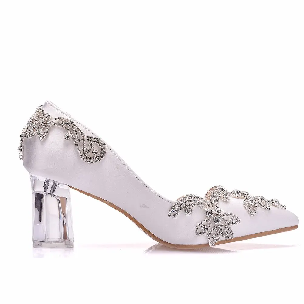 LBSFY - High Heels Luxury Satin Silk Wedding Shoes Bride Clear Christmas Day Evening Party Pumps