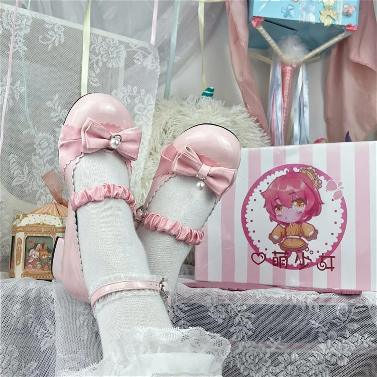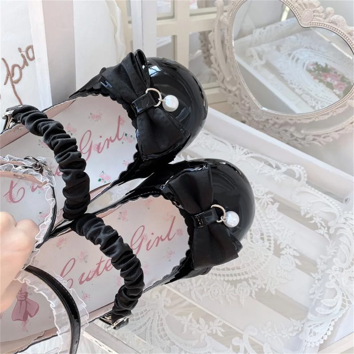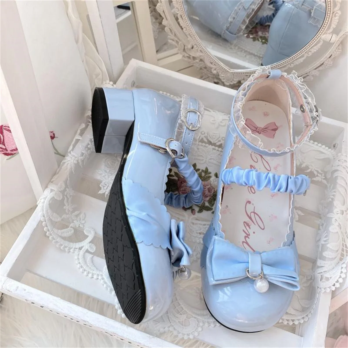 LBSFY - Japanese Style Lolita Cosplay Shoes Sweet Victorian Girl Elegant Tea Party Princess Round Head Bow Pearl Lace Middle Heel Shoes