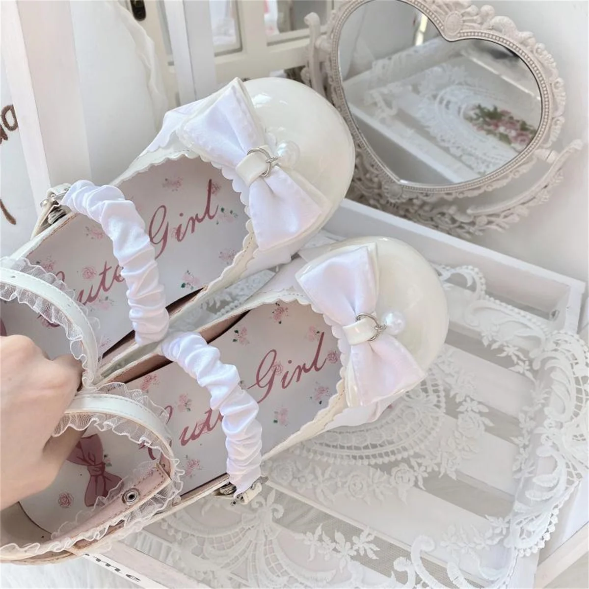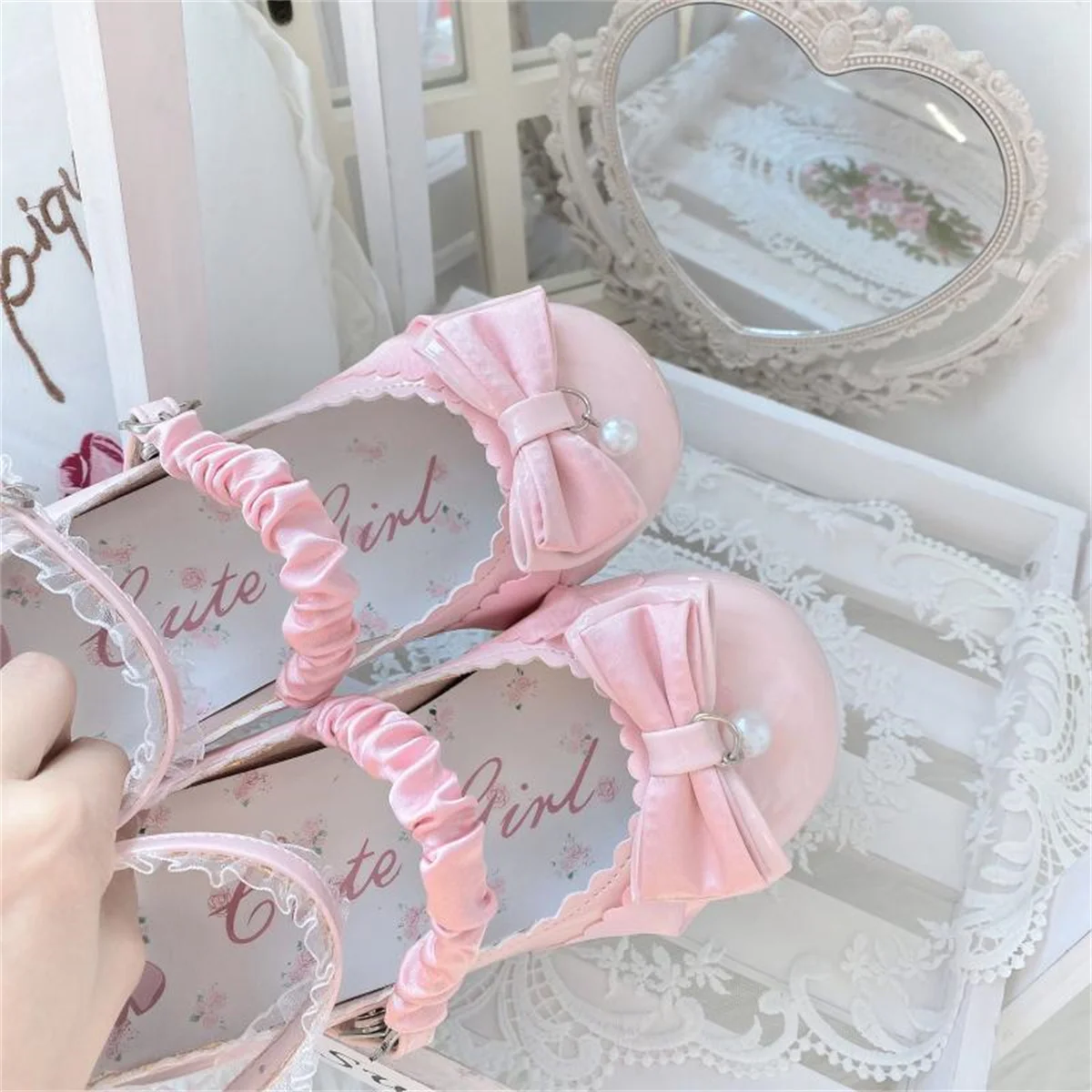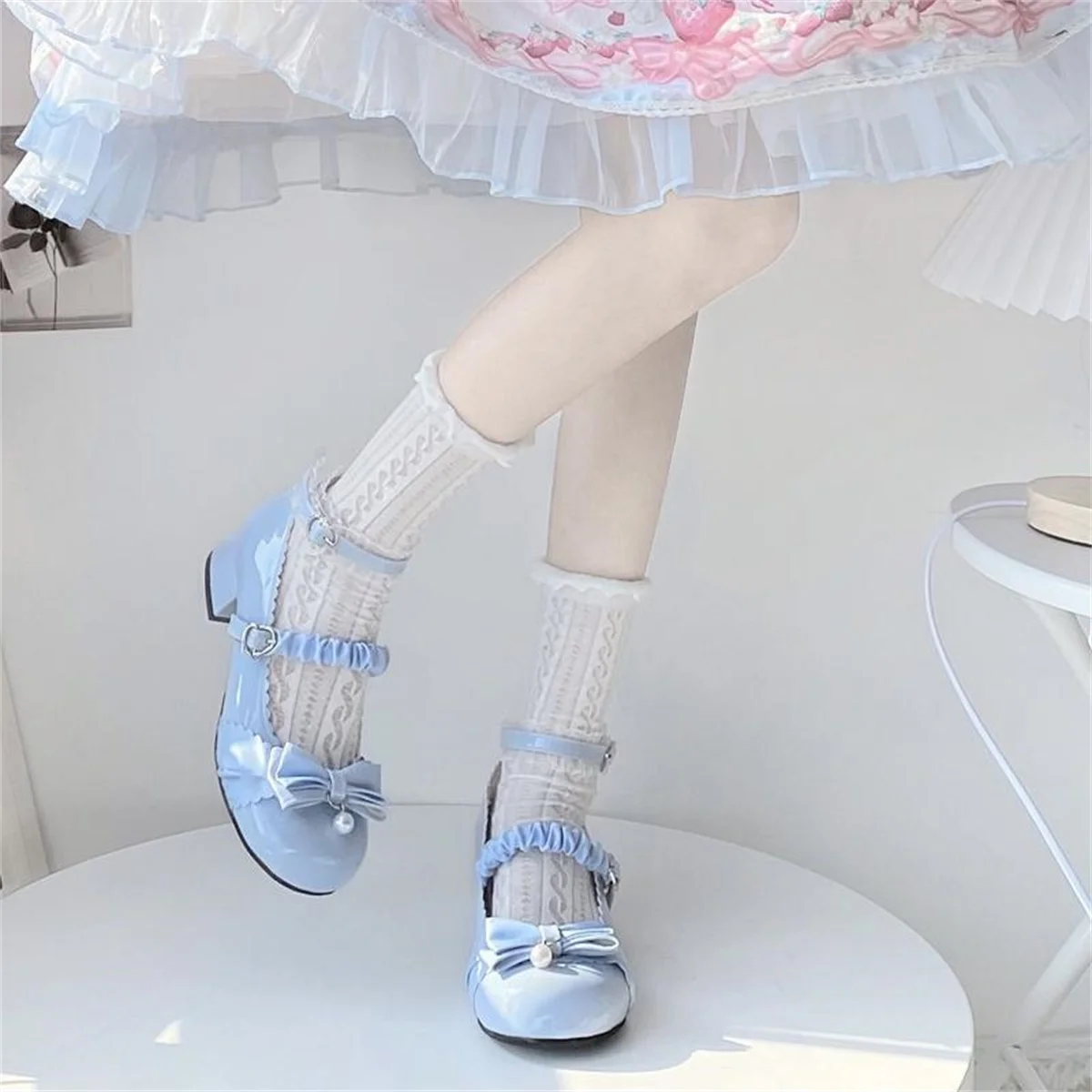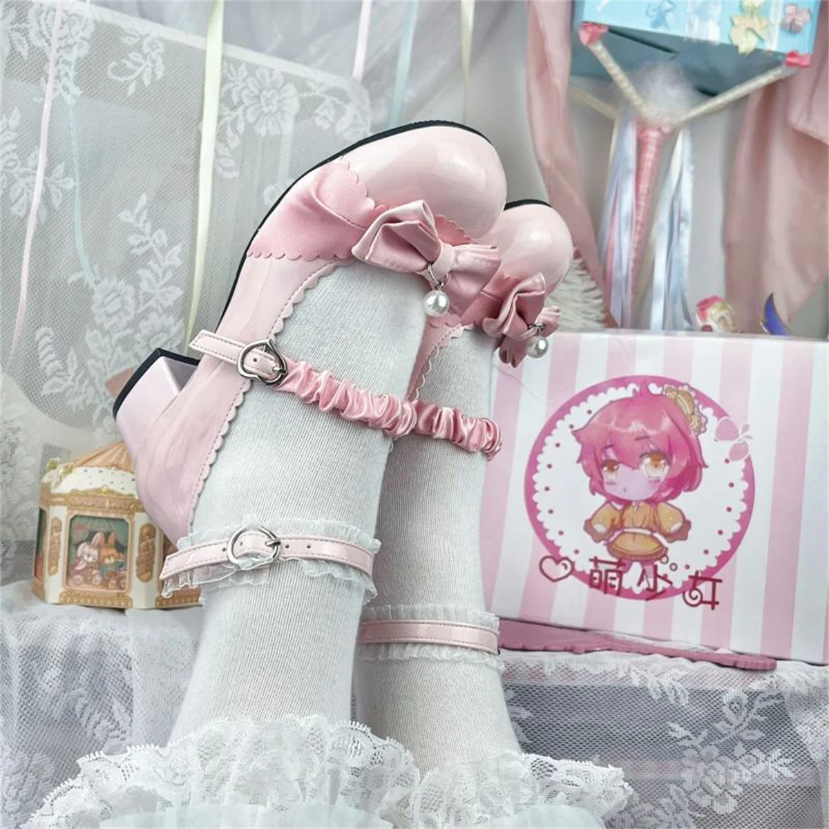LBSFY - Japanese Style Lolita Cosplay Shoes Sweet Victorian Girl Elegant Tea Party Princess Round Head Bow Pearl Lace Middle Heel Shoes