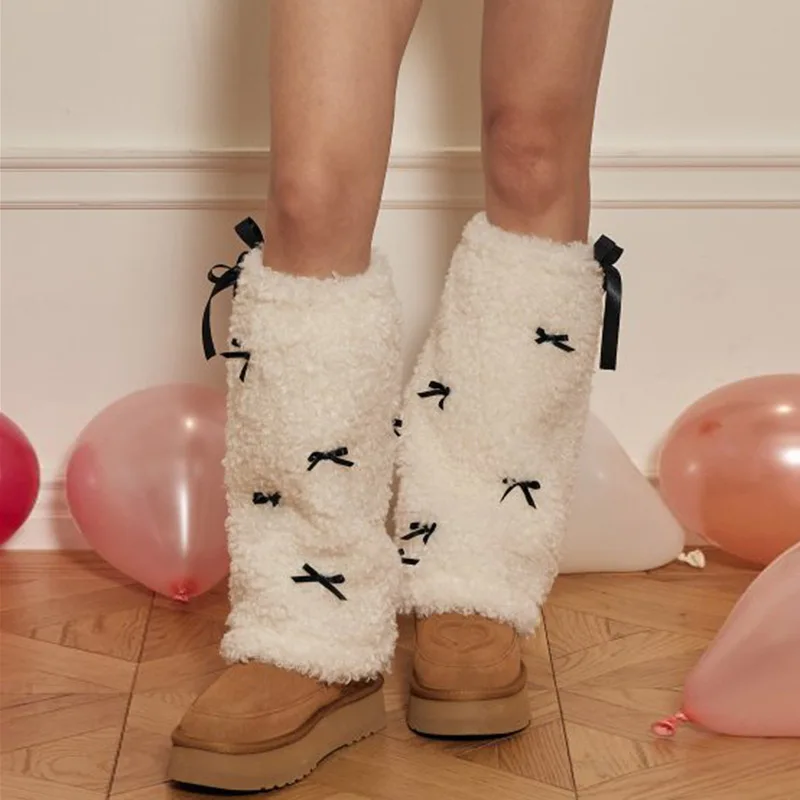 Name: Y2K Women Bow Spliced Plush Leg Warmers