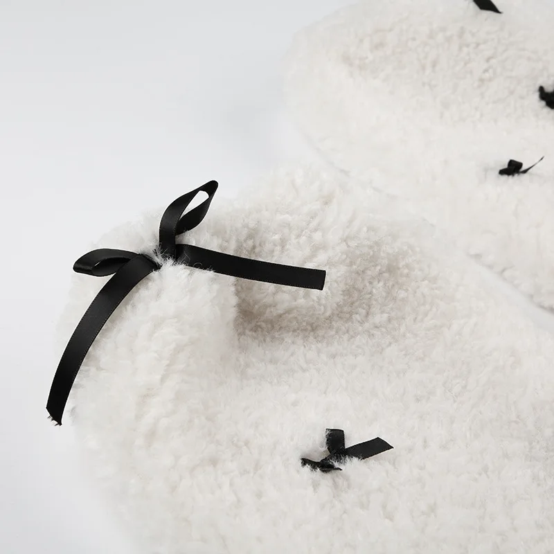 Lbsfy Kawaii Bow Winter Plush Leg Warmers Lambhair Boots Cover Socks Spliced Thickened Y2K Women Jk Punk Hiphop Cosplay Accessories