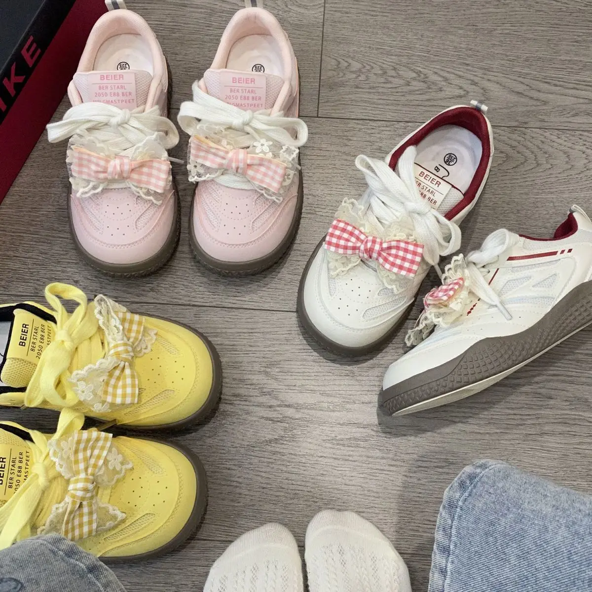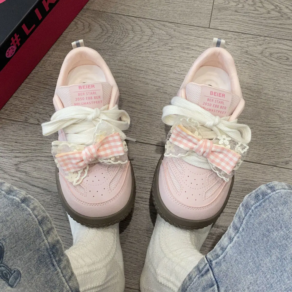 LBSFY - Kawaii Shoes Bowknot Women Sneakers Spring Summer 2025 Platform Vulcanize Cute Casual Pink Lolita Korean Fashion Footwear
