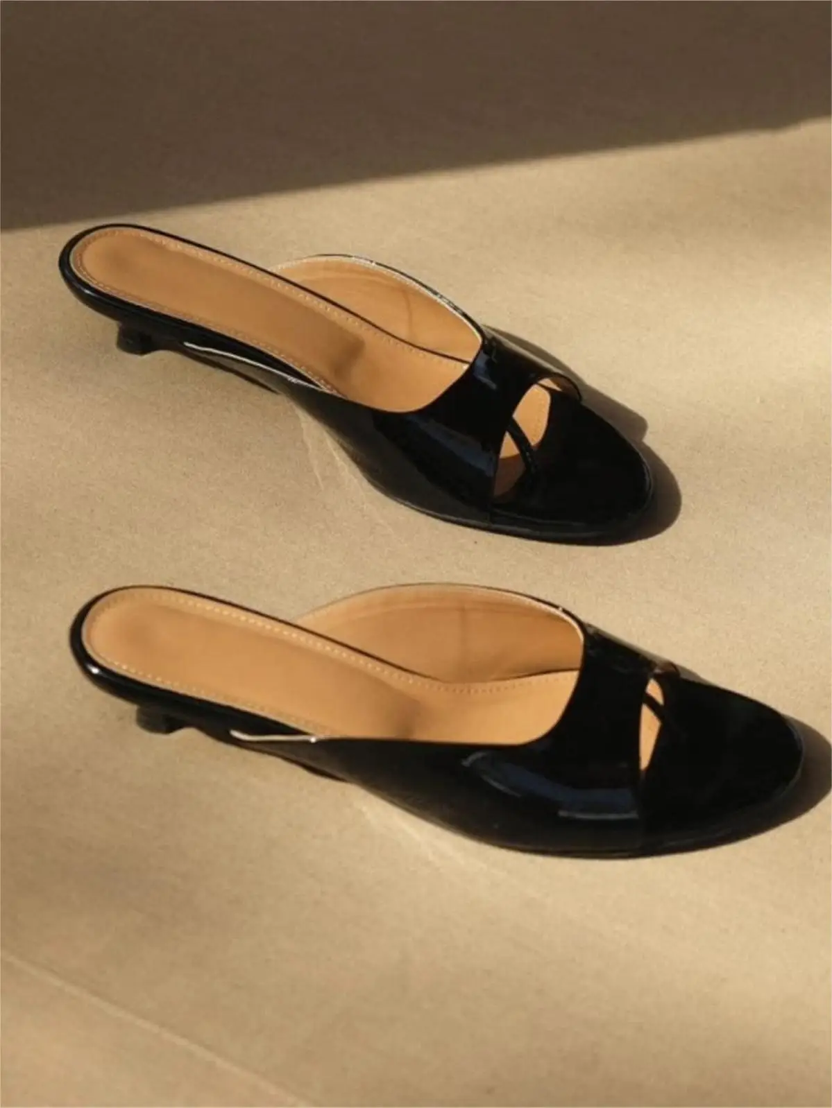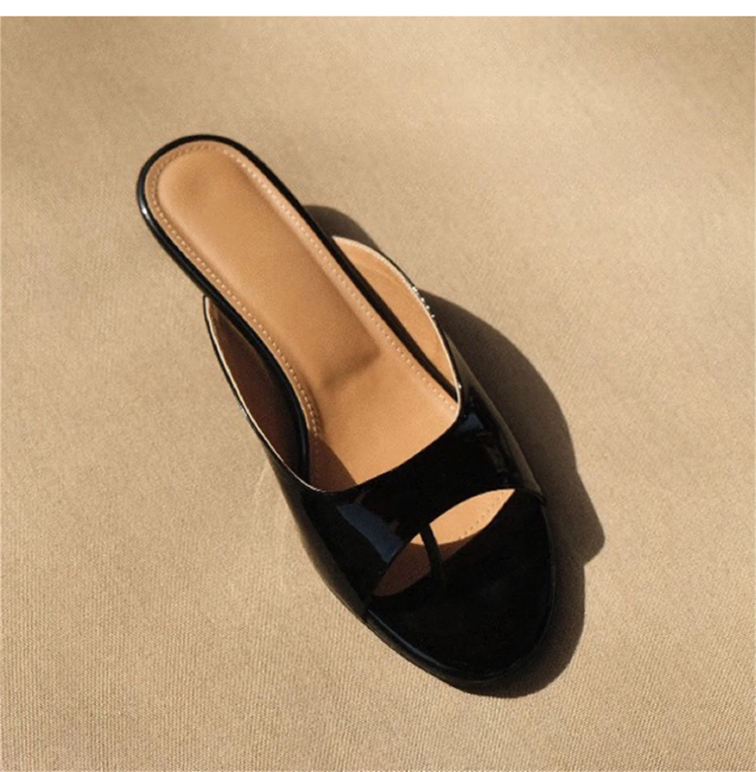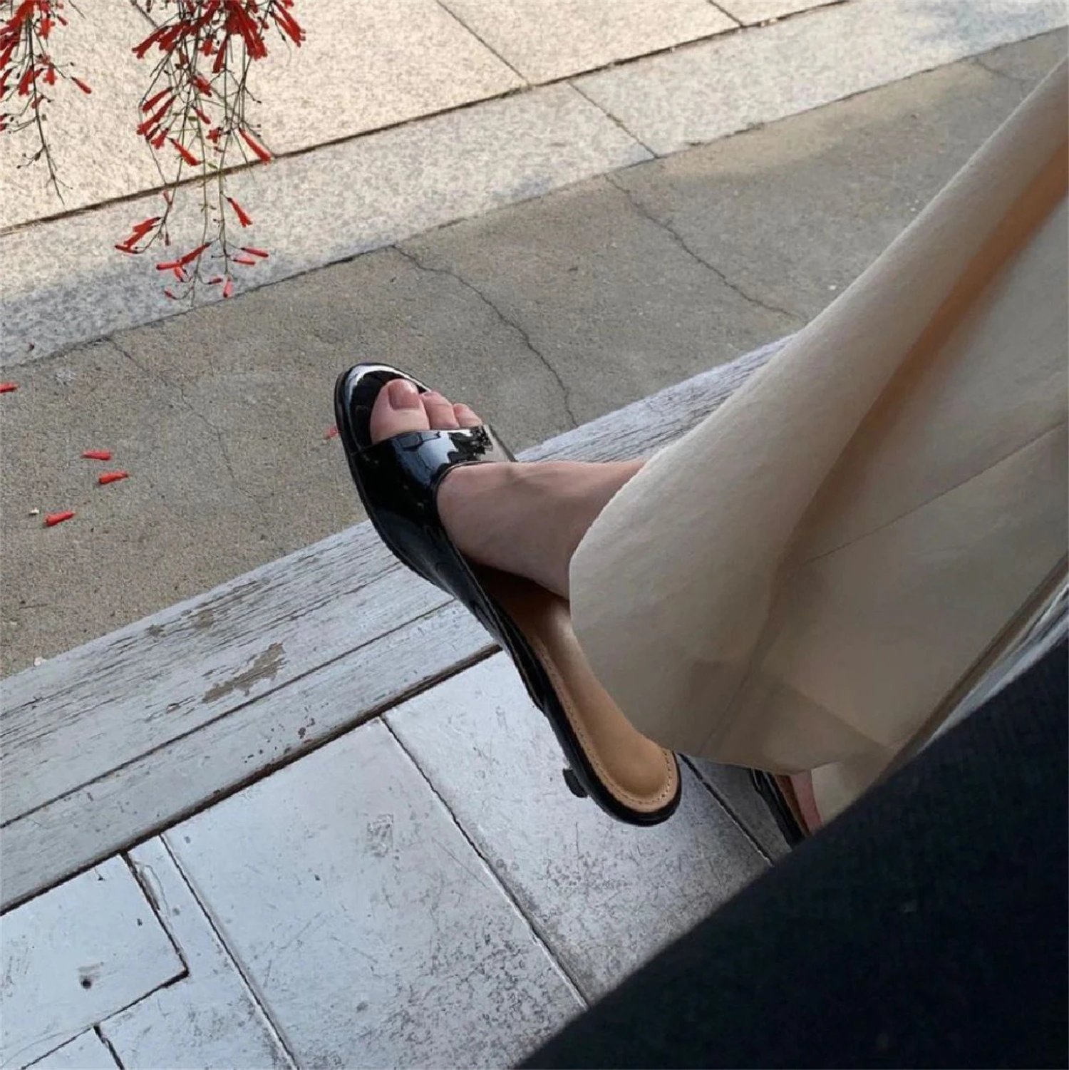 LBSFY - Kitten Heels Flip Flops Mule Sandals Patent Leather Casual Round Open Toe Patent Leather 2024 Beach Slides Pumps Shoes For Women