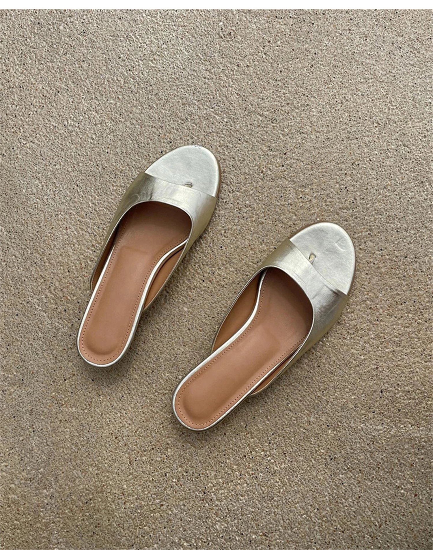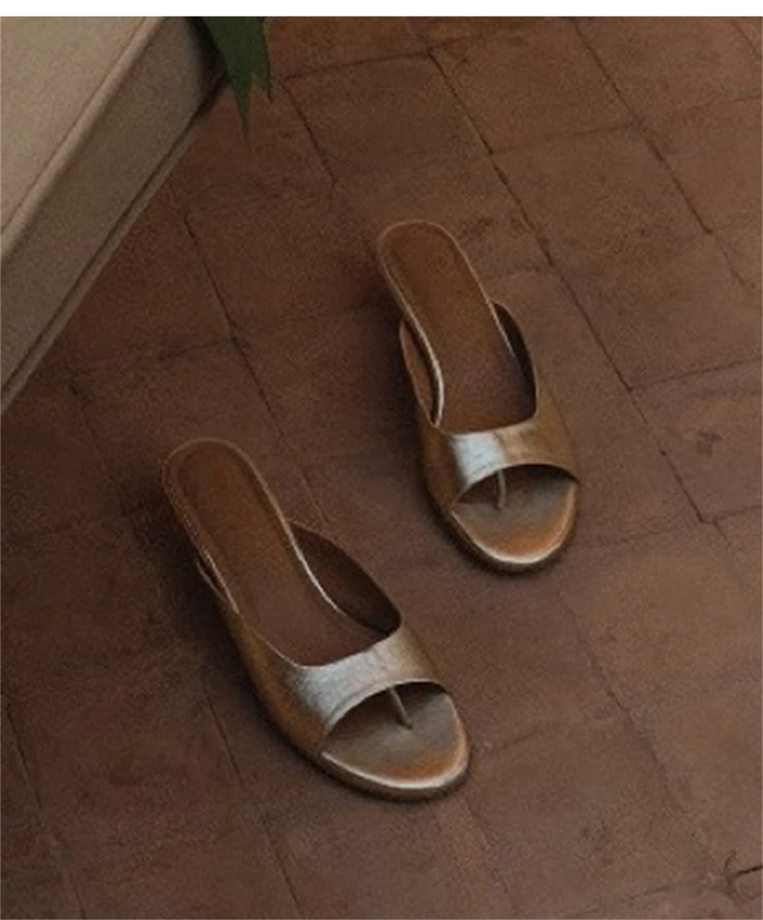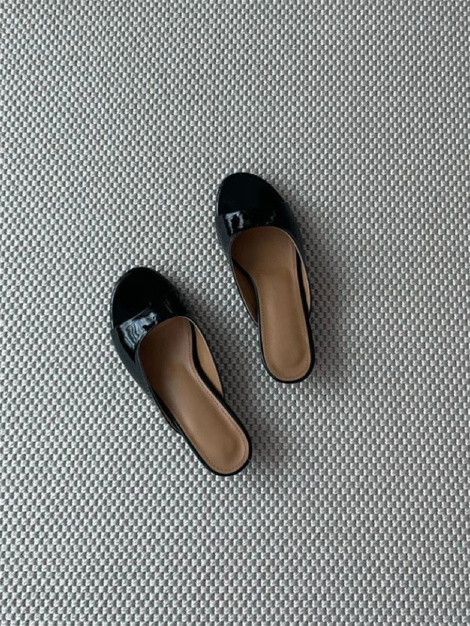 LBSFY - Kitten Heels Flip Flops Mule Sandals Patent Leather Casual Round Open Toe Patent Leather 2024 Beach Slides Pumps Shoes For Women