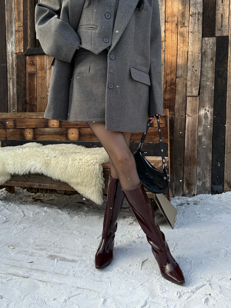 LBSFY  -  Knee High Boots For Women Kitten Heel 2025 New Burgundy Boots Leather Shoes