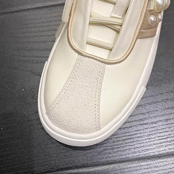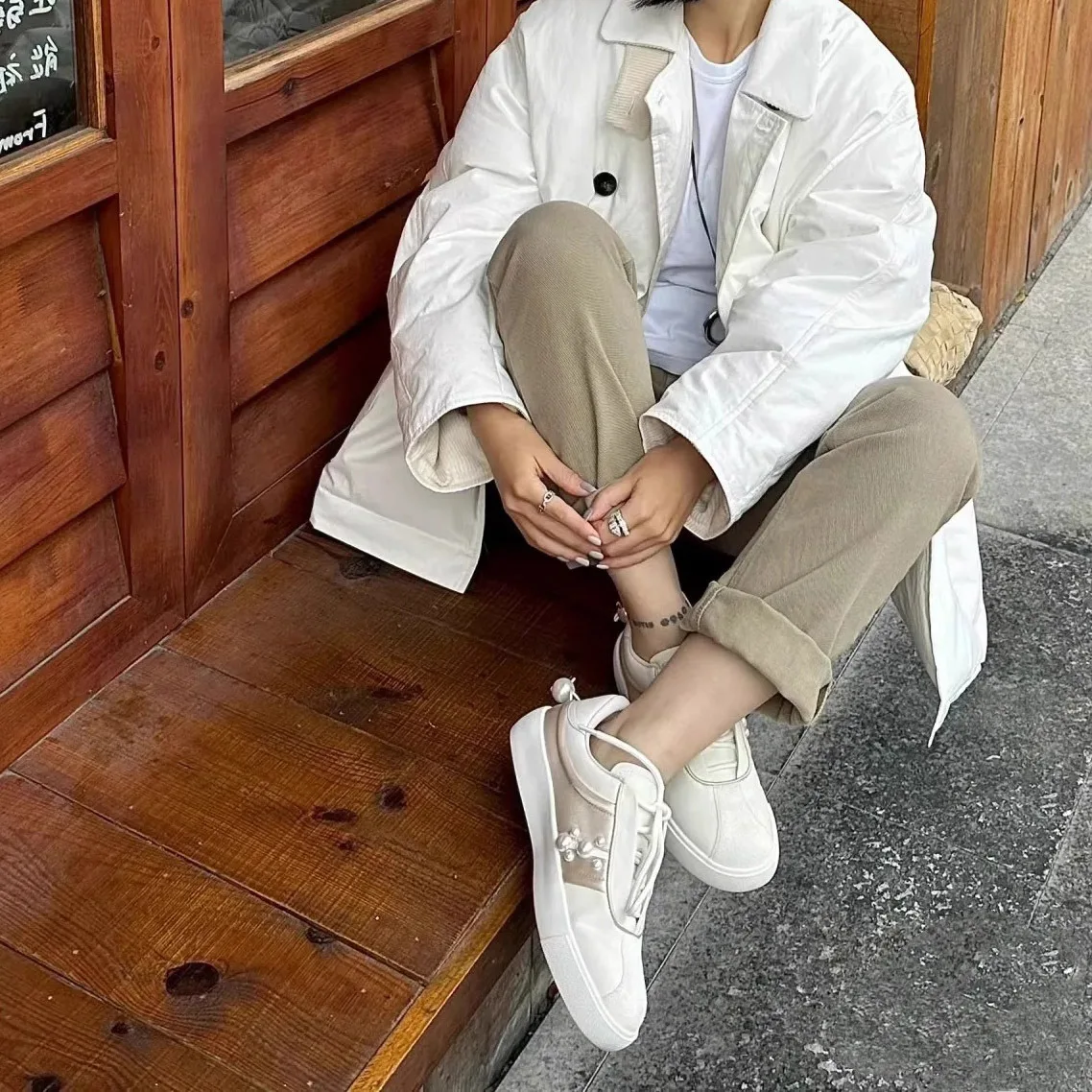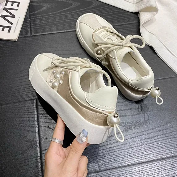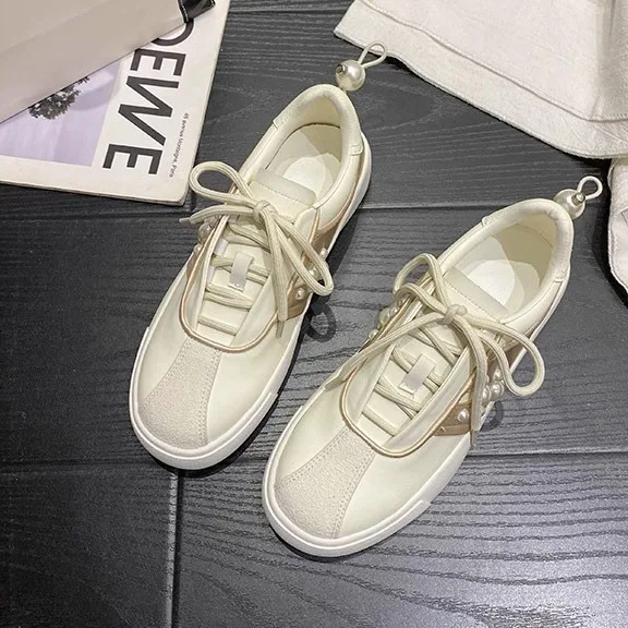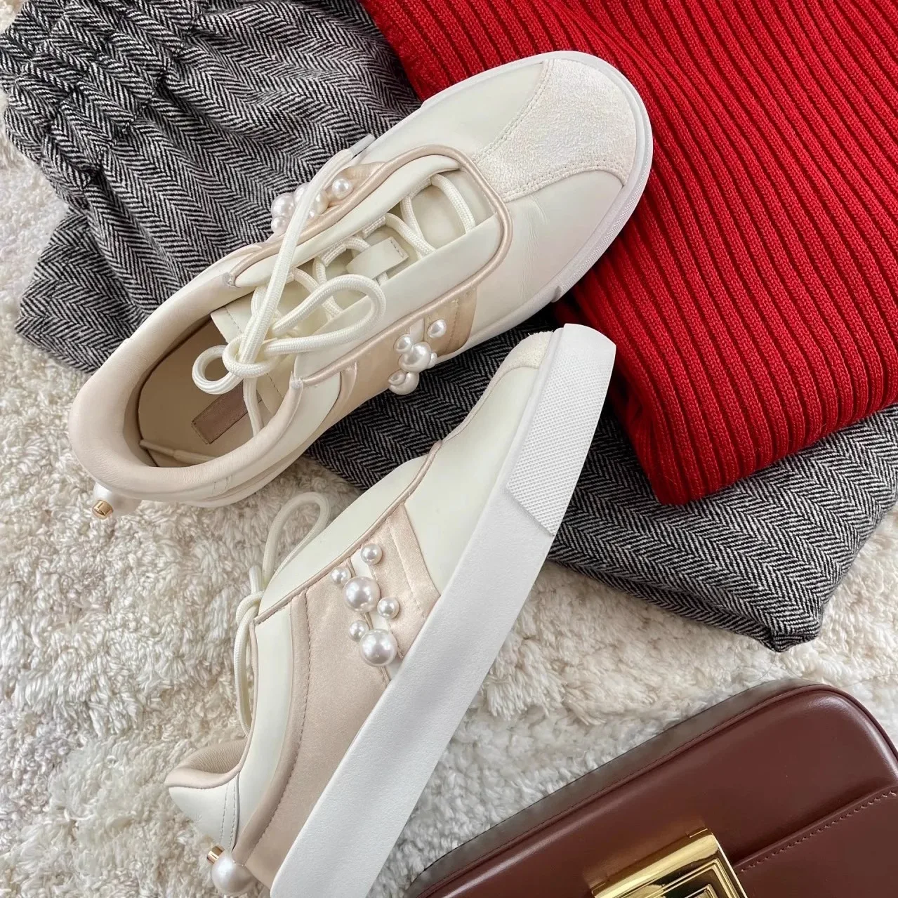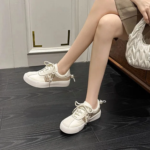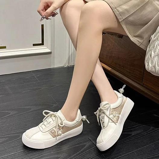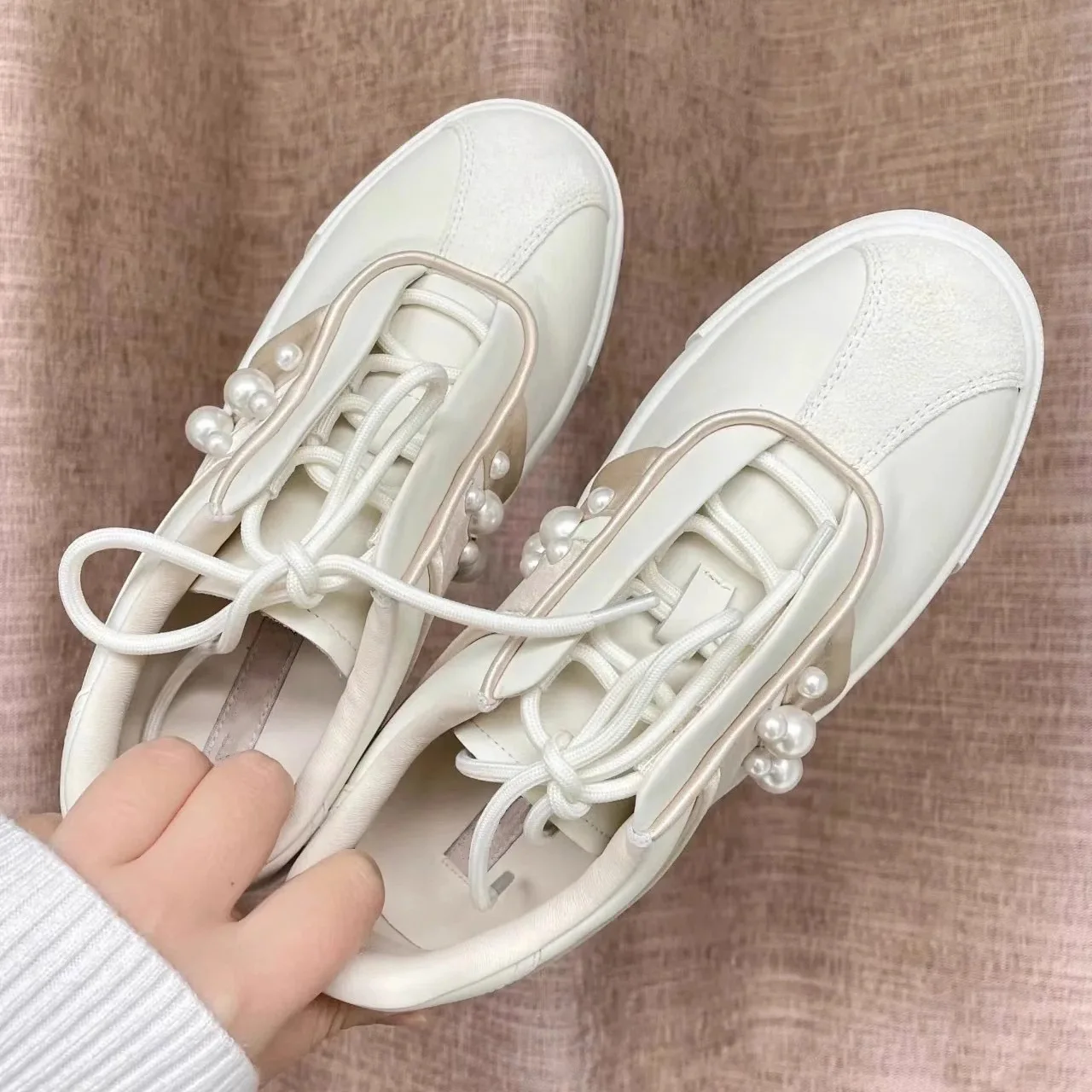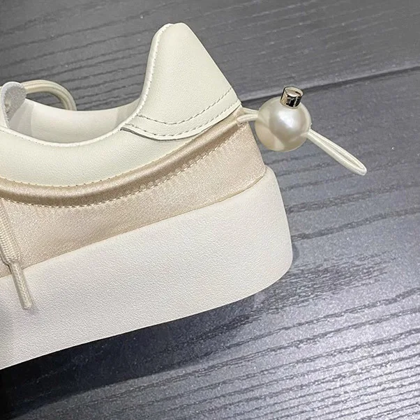 LBSFY - Korean Good Luck Circulation White Shoes Pearl Lace New Chinese Casual Board Shoes Women's Shoes Foreign Trade