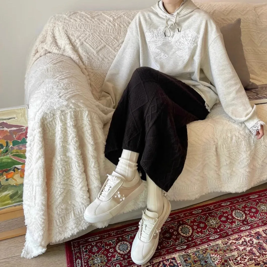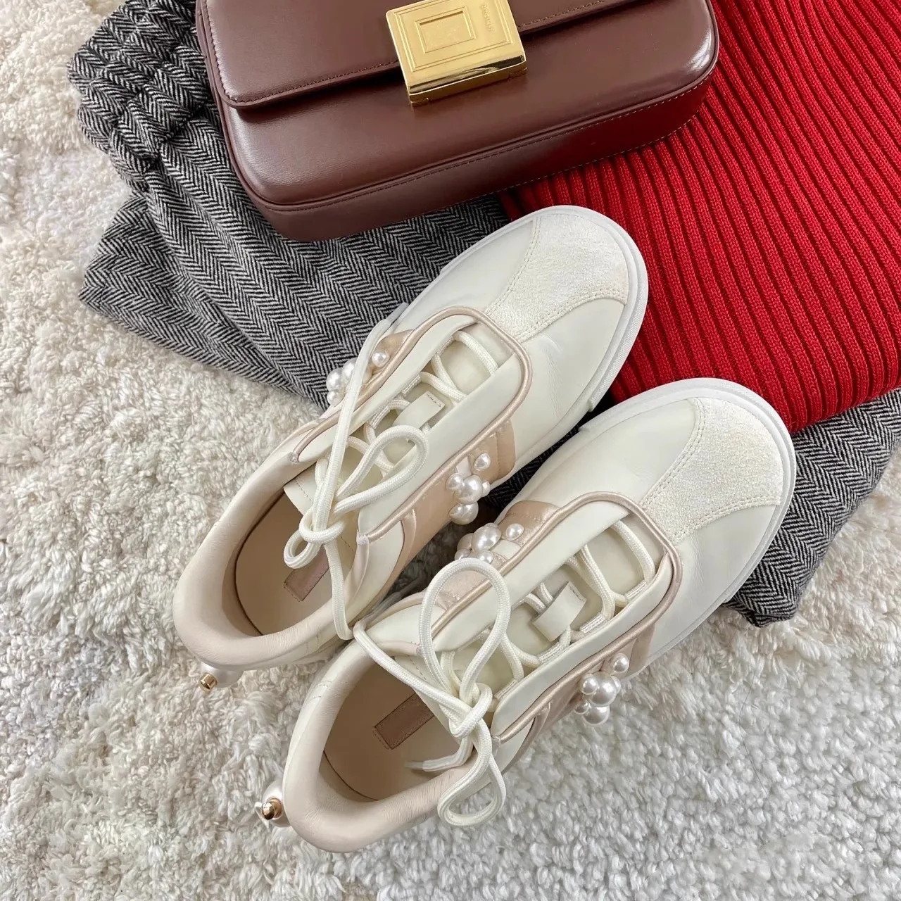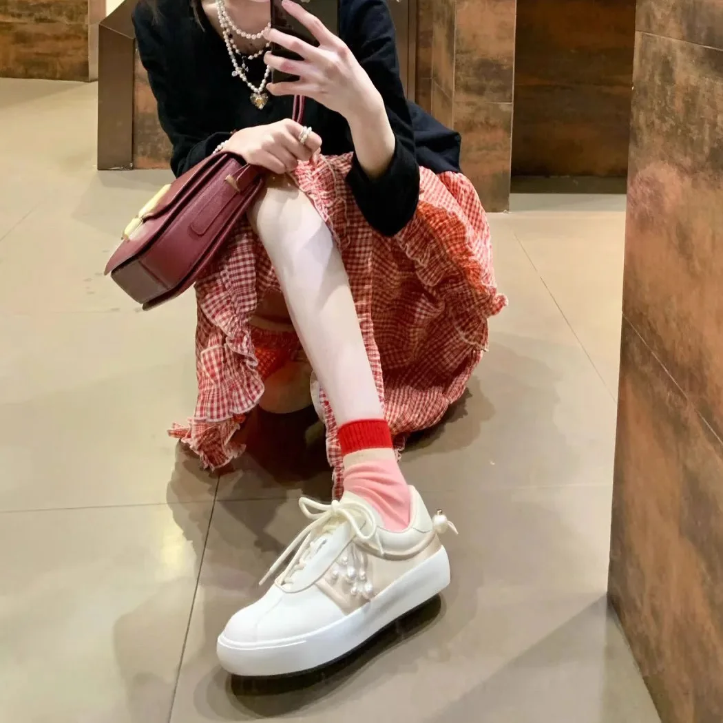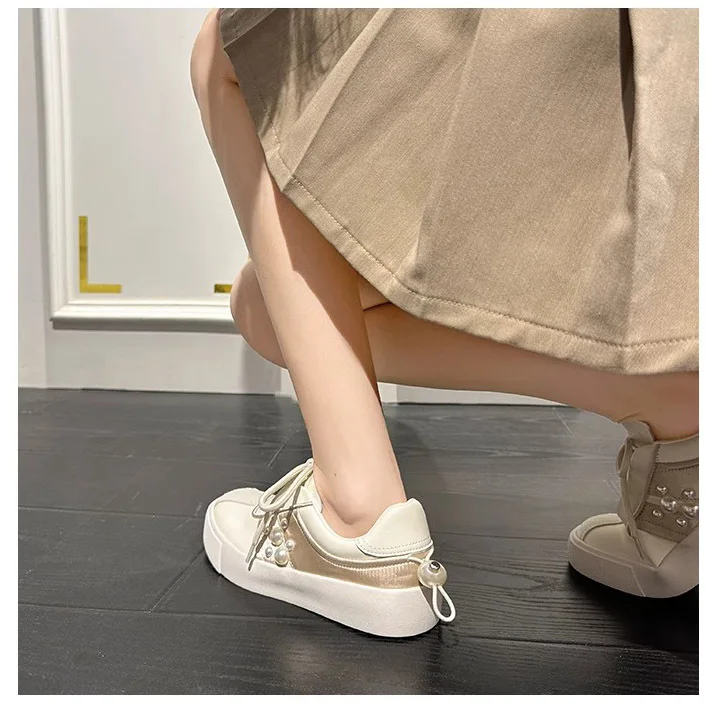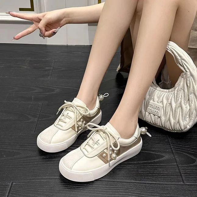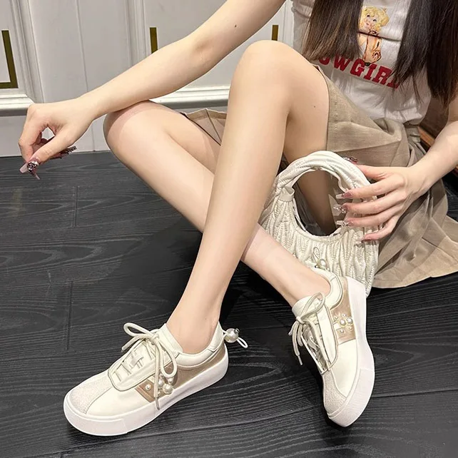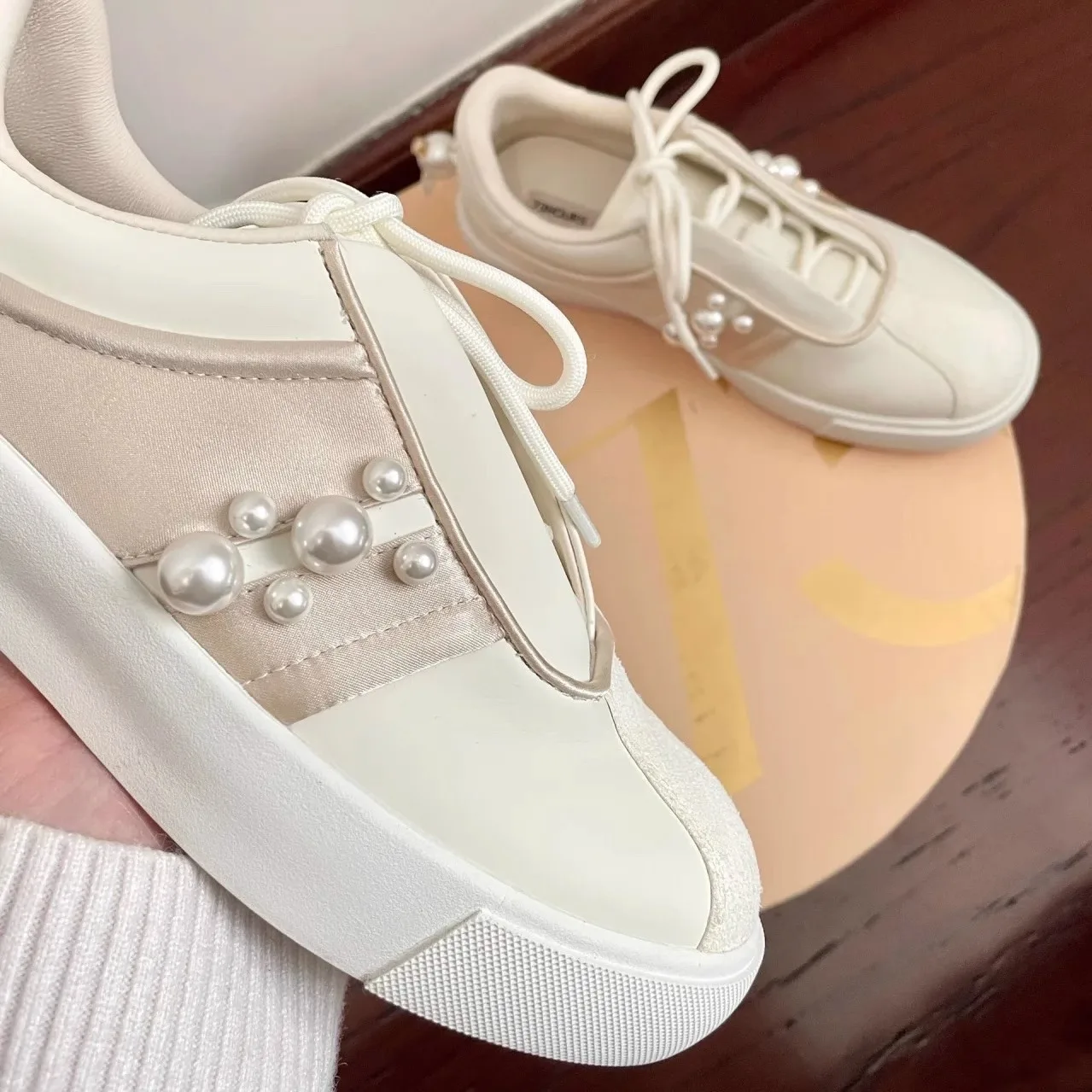 LBSFY - Korean Good Luck Circulation White Shoes Pearl Lace New Chinese Casual Board Shoes Women's Shoes Foreign Trade