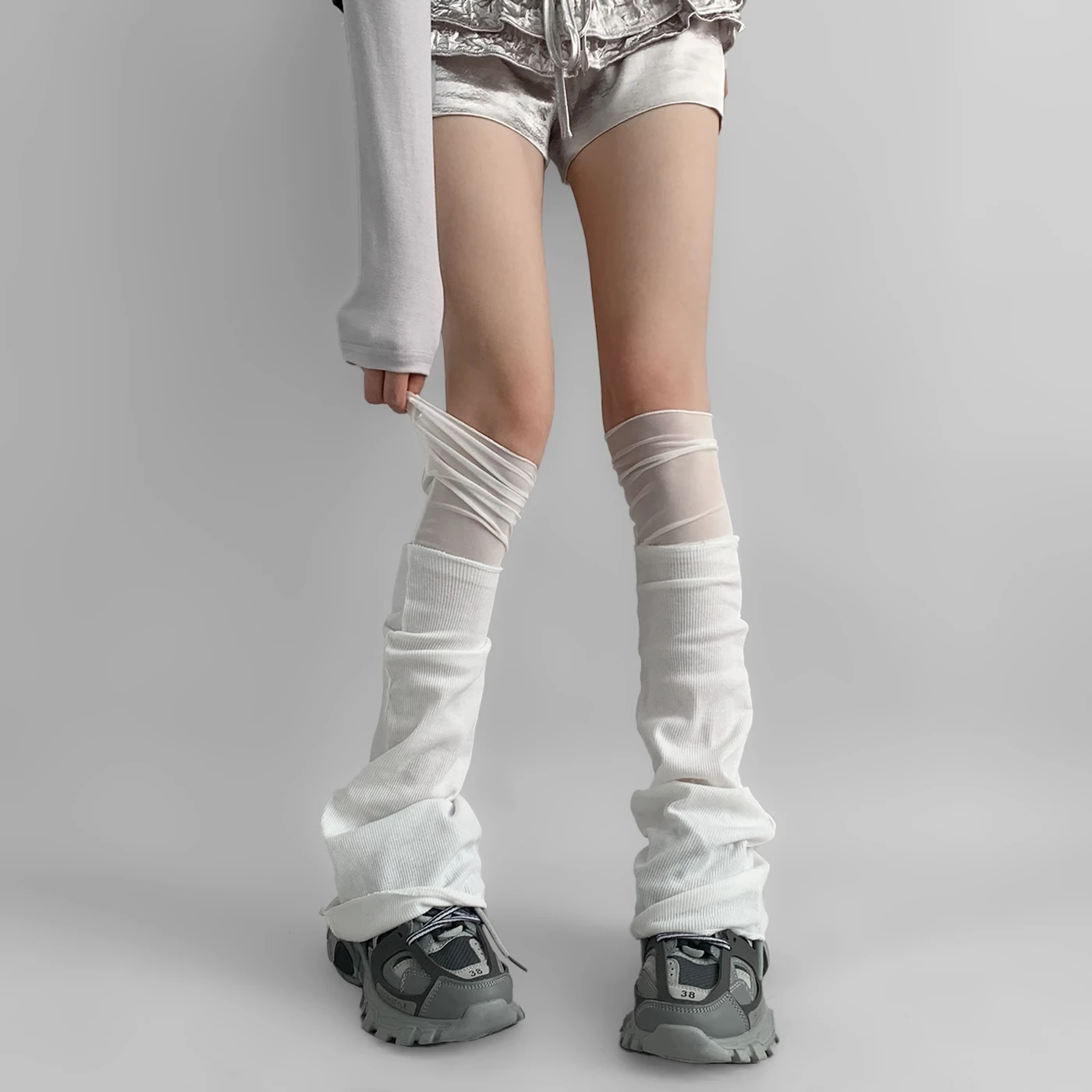 Lbsfy Korean Mesh Patchwork Cotton Leg Warmers Japanese Harajuku Solid Color Pile Socks Mid Tube Socks Cool Over Knee Flare Leg Socks