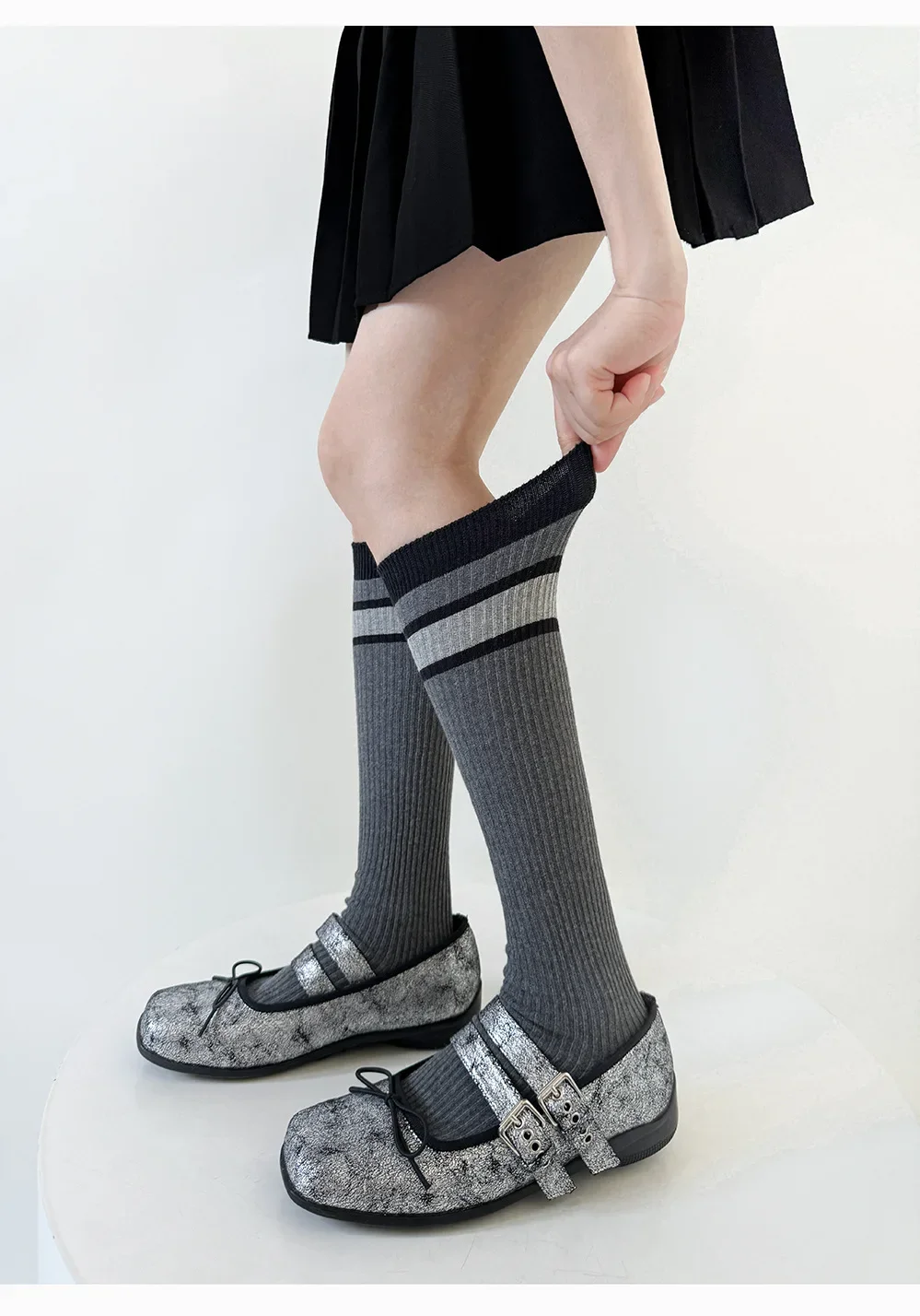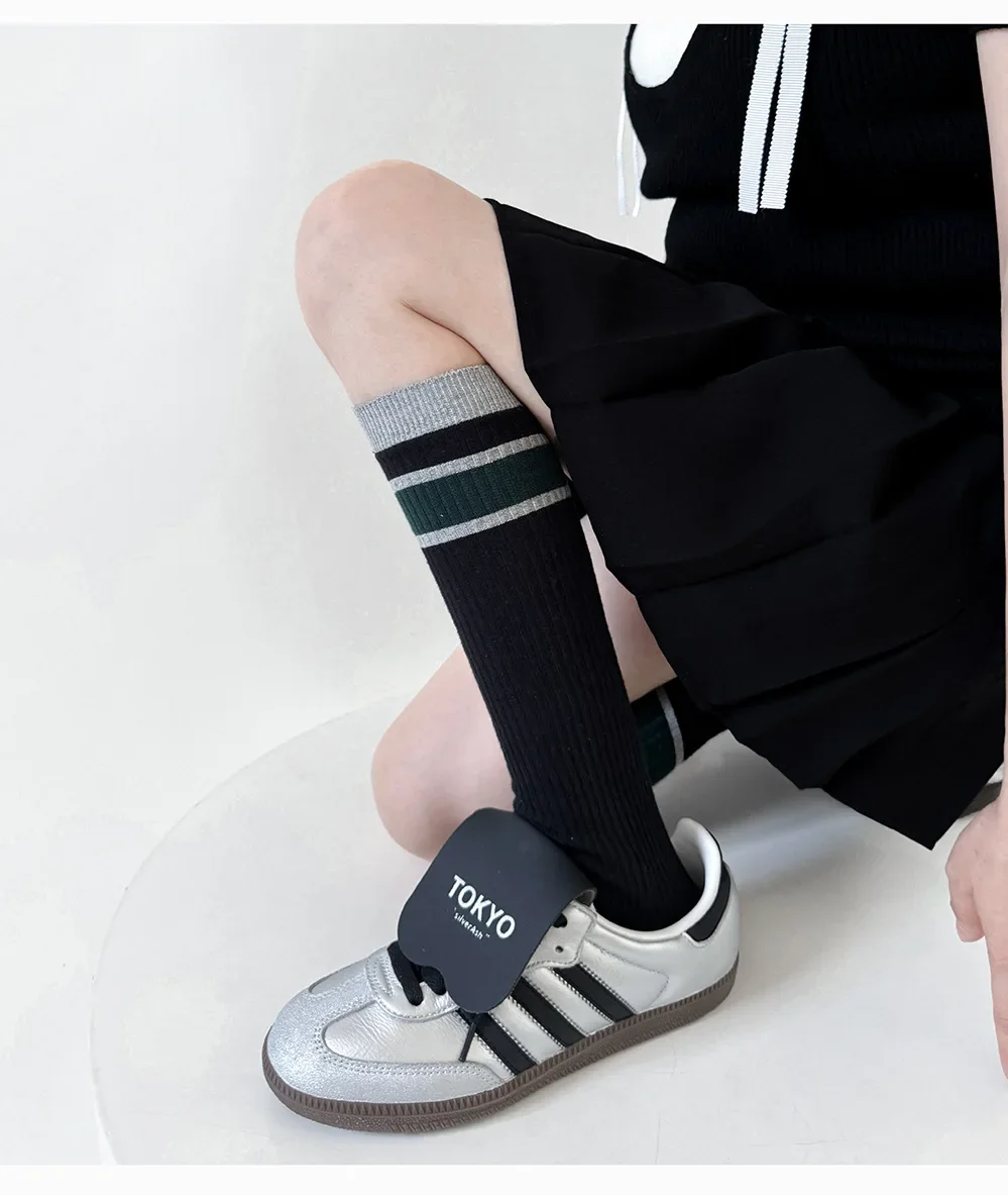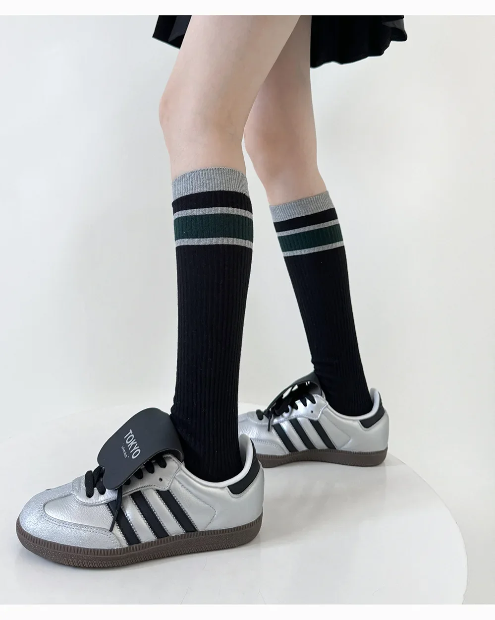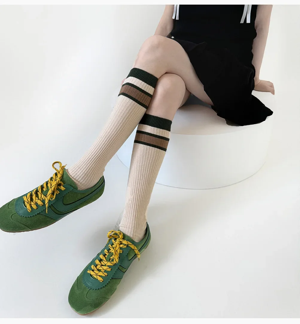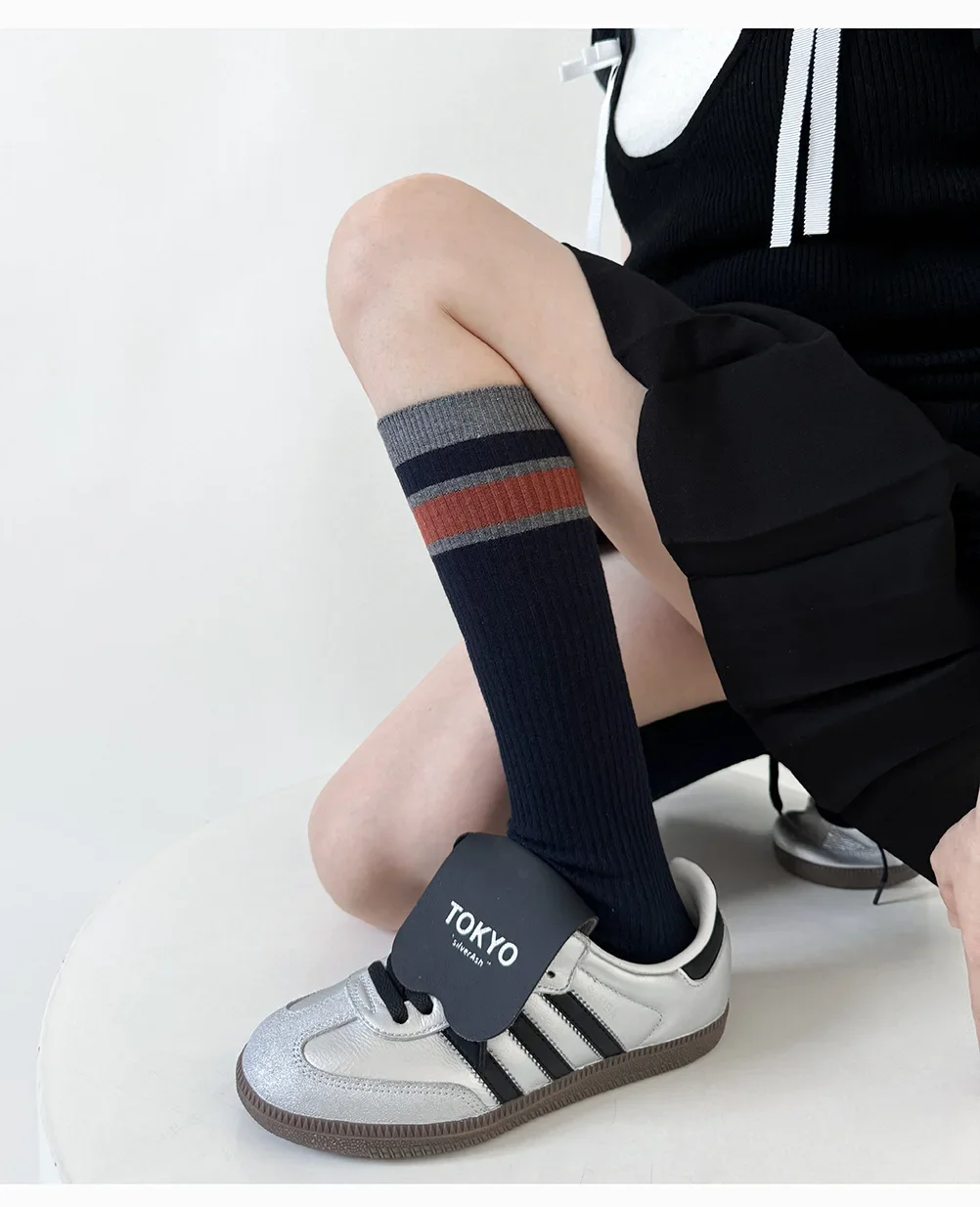 Lbsfy Korean Striped Calf Socks Cotton Colorblocked Knee Socks High Breathable Sport Cycling Mid-calf Socks Japanese JK Accessories