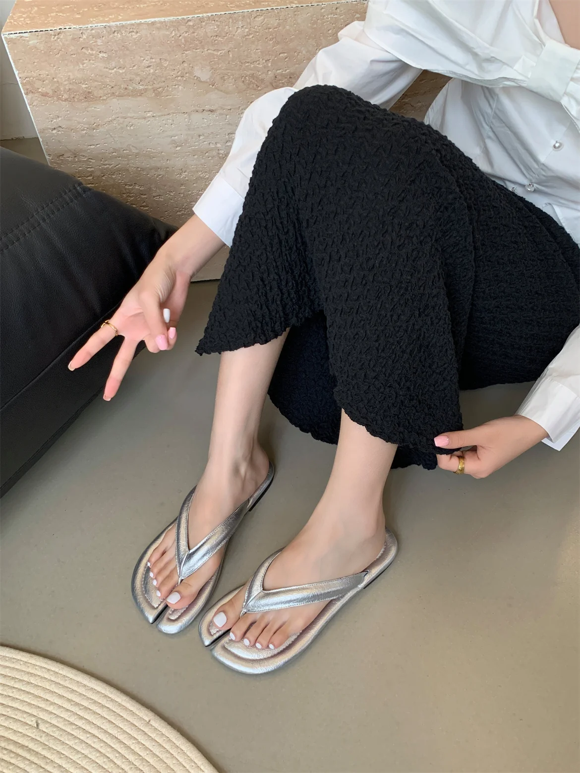 LBSFY - Ladies Clip Toe Flip Flops Silver Tabi Ninja Slippers Woman Beach Shoes Flat Sandalias Femme Slides Split Toe Sand