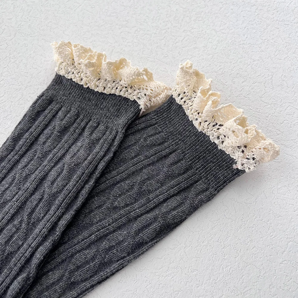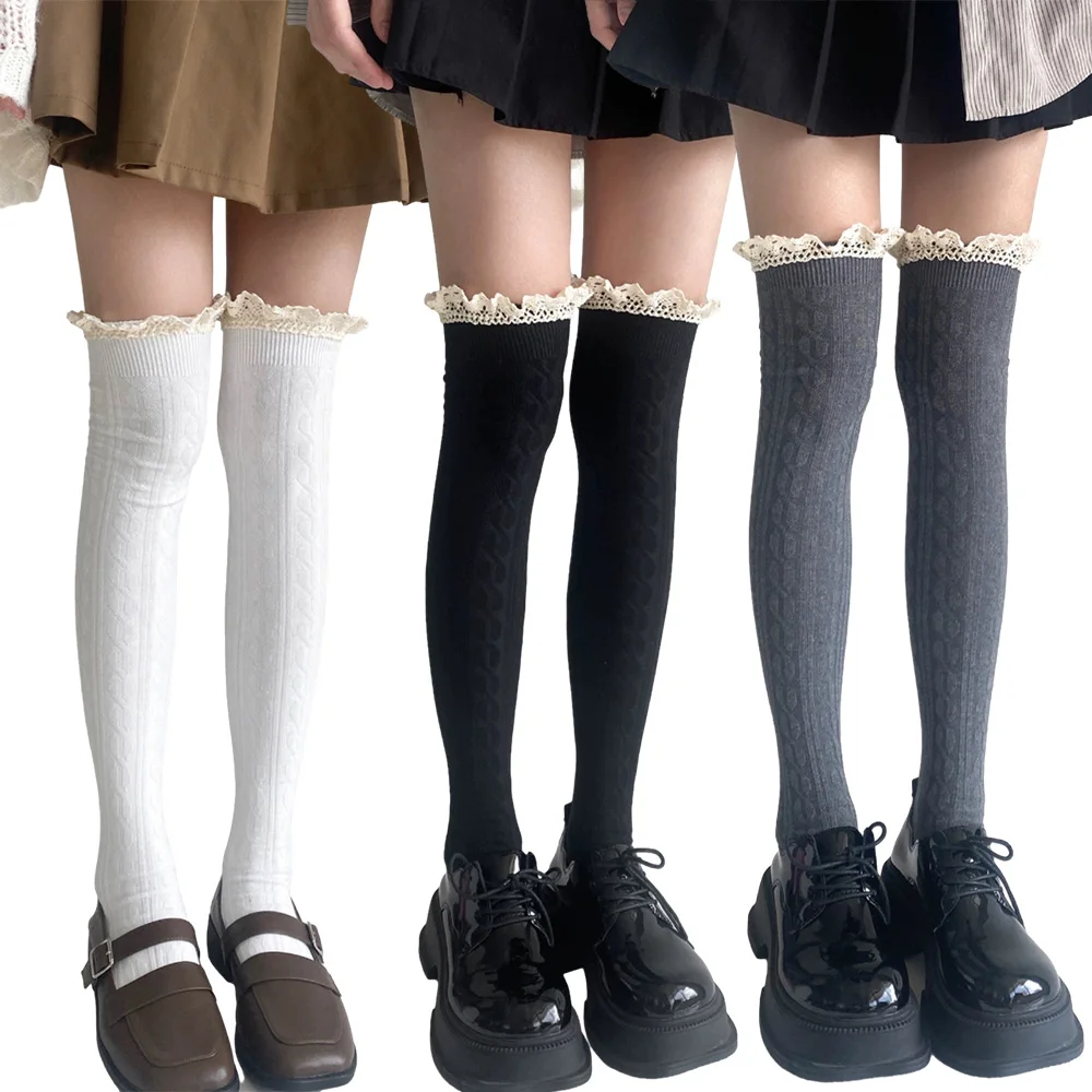 Lbsfy Lolita Lace Up Long Knee Socks for Women Over Knee Thigh High Stockings Spring Autumn Fashion Girls Warm Sexy Cotton JK Tights