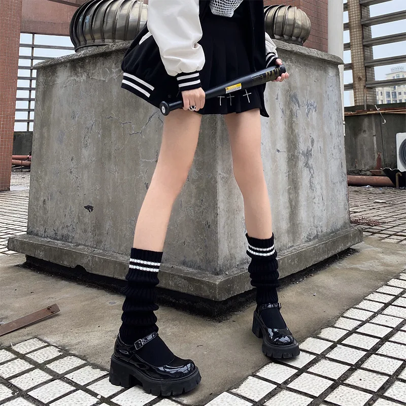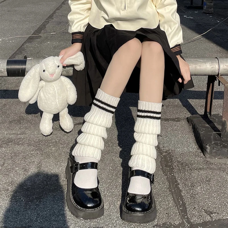 Lbsfy Y2k Star Pattern Knitted Leg Warmers Gothic Loose Leg Cover Sock Girls Winter Casual Leg Protector Stocking JK Thigh High Socks