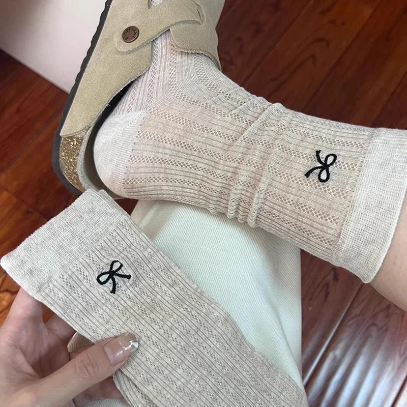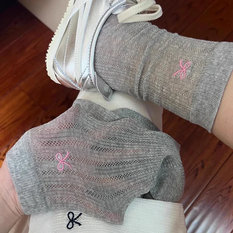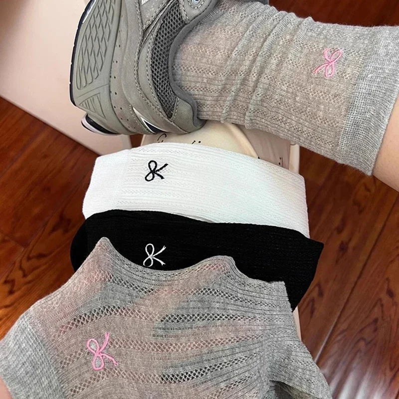 Lbsfy Lolita Sweet Lace Pink Bow Long Socks Women Girls Summer Hollow Out Sock Casual Crew Loose Sox Mid-tube Stockings Streetwears