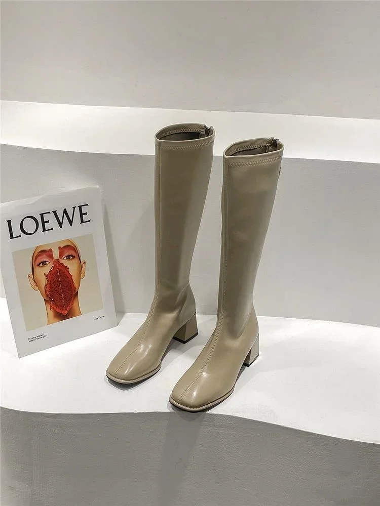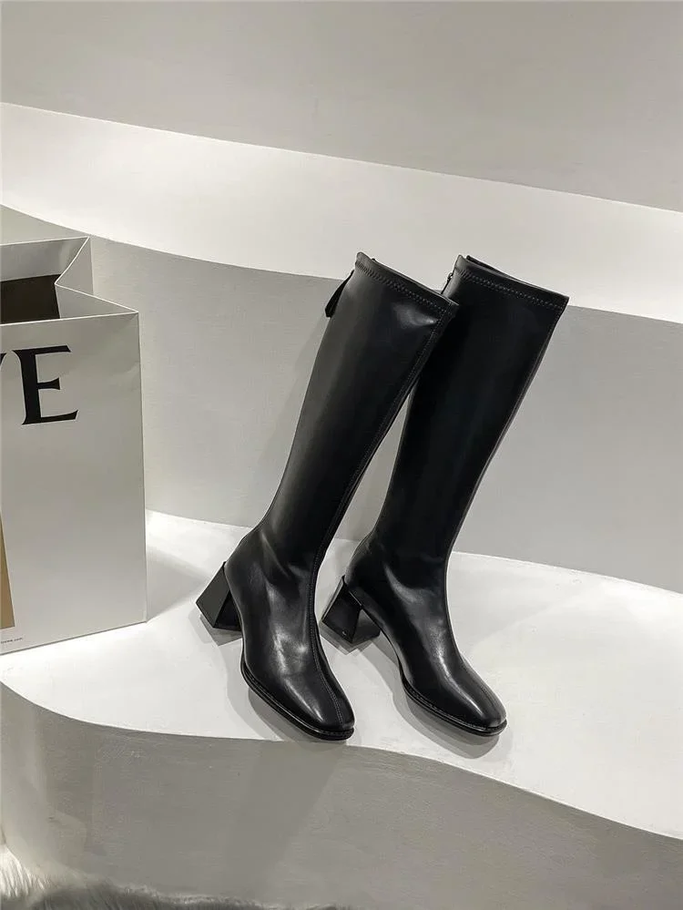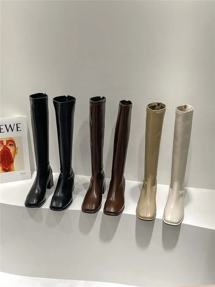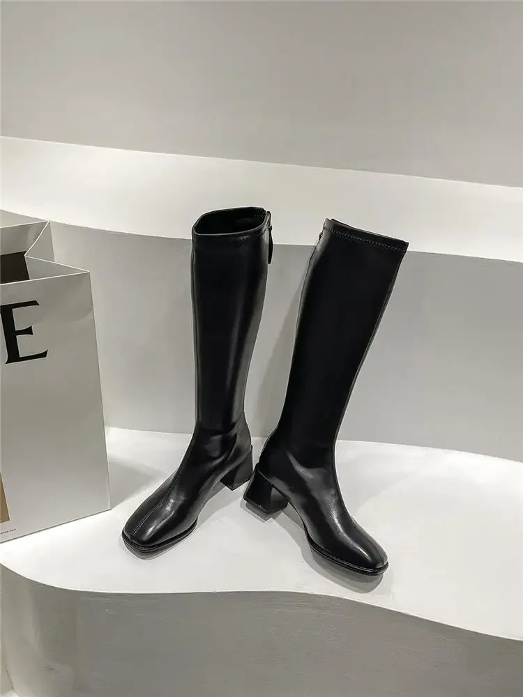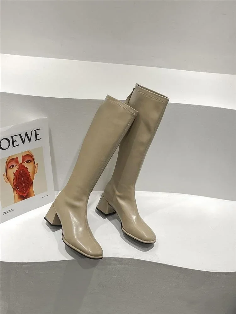 LBSFY - Long Boots Women New Boots Spring and Autumn Casual 5cm Thick Heel Solid Botas Femme Shoes Knee High Knight Botas De Mujer