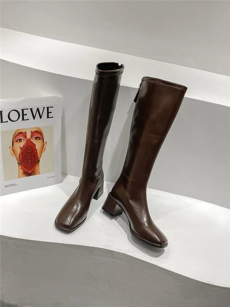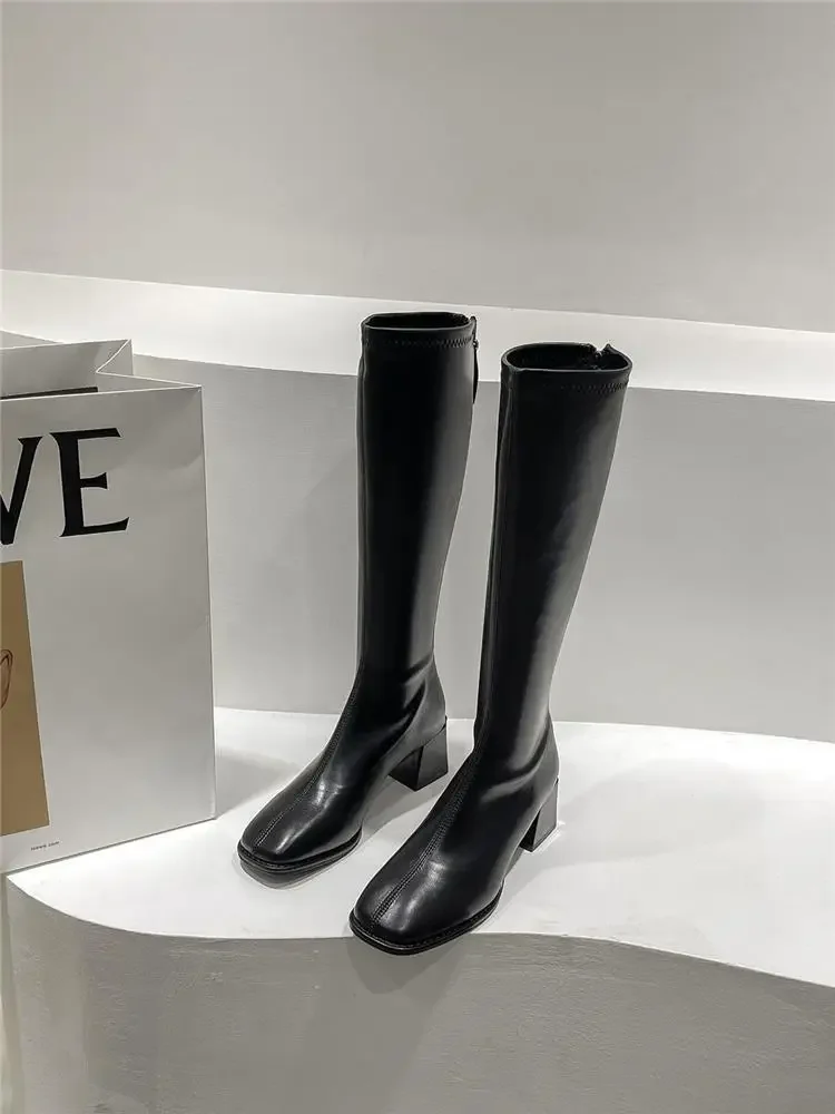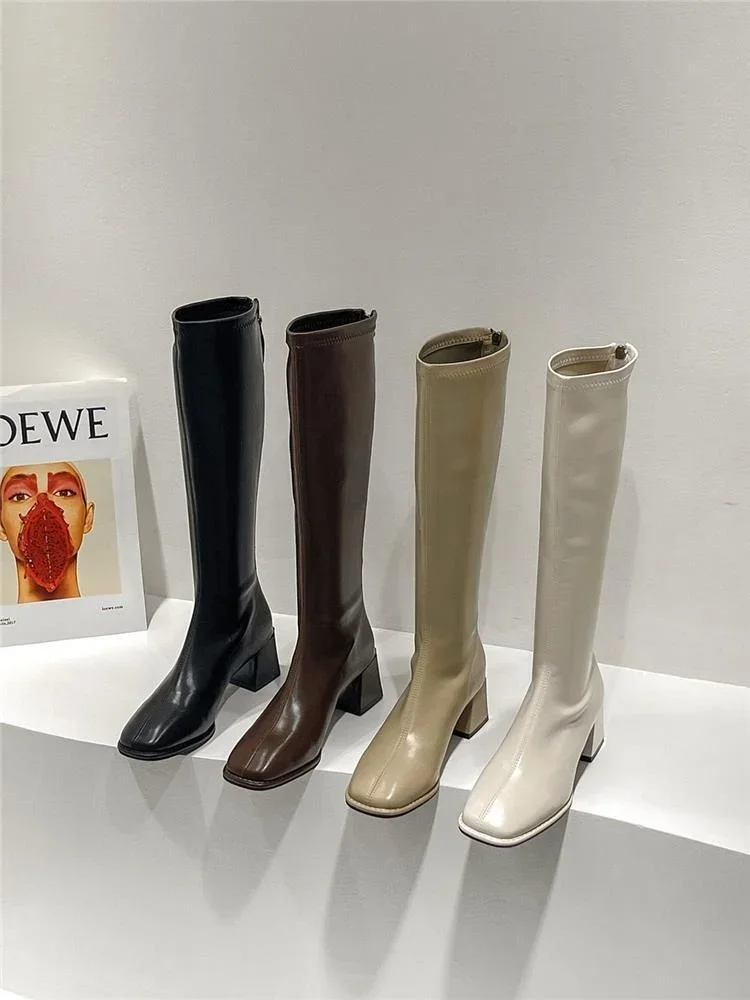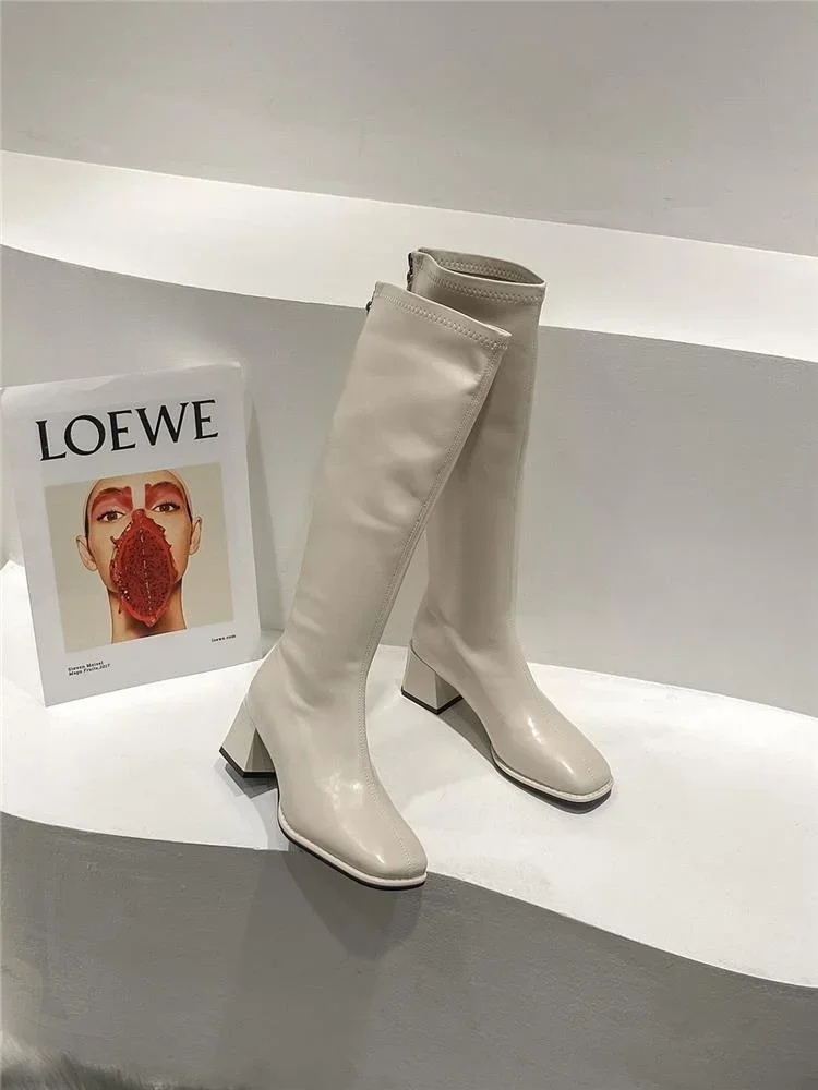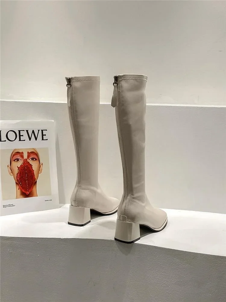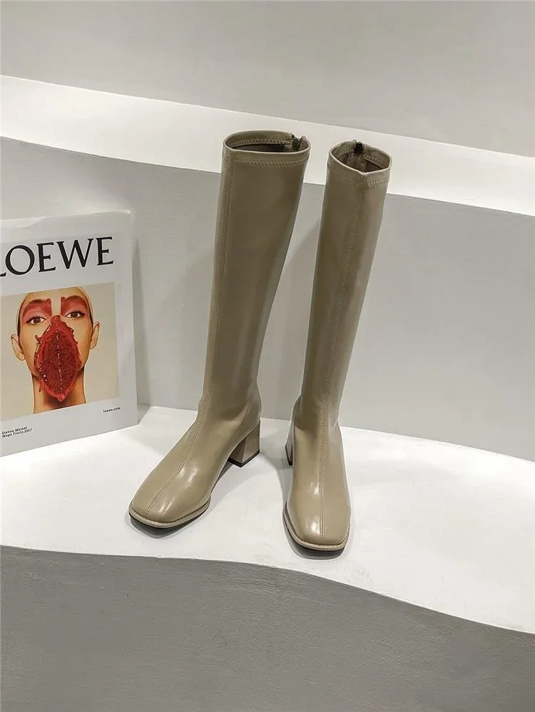 LBSFY - Long Boots Women New Boots Spring and Autumn Casual 5cm Thick Heel Solid Botas Femme Shoes Knee High Knight Botas De Mujer