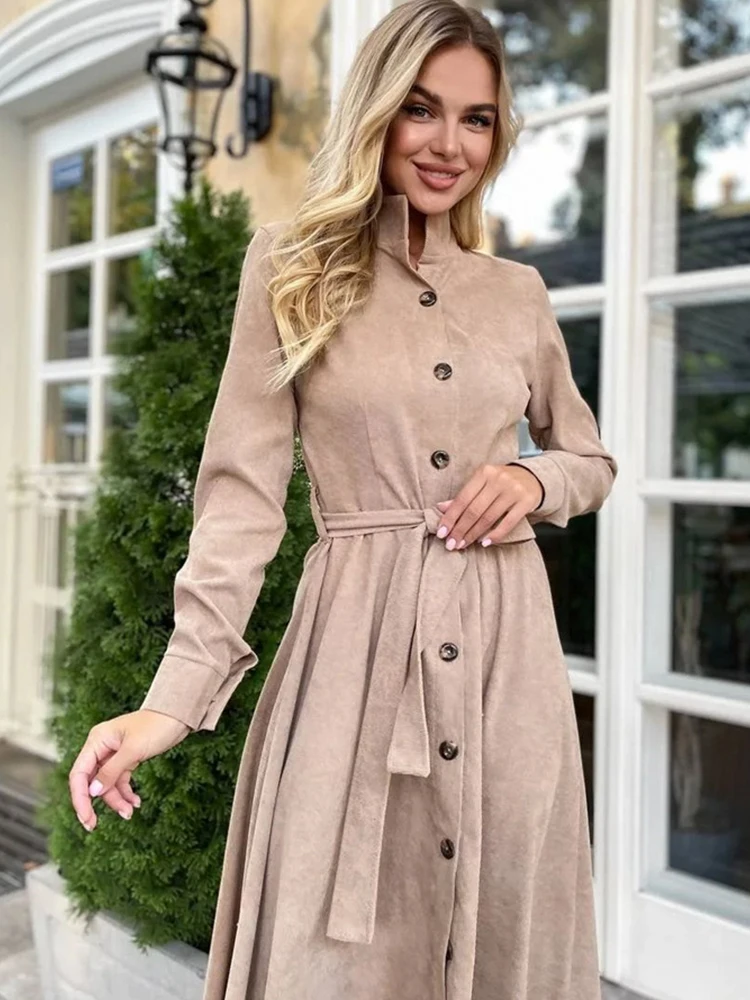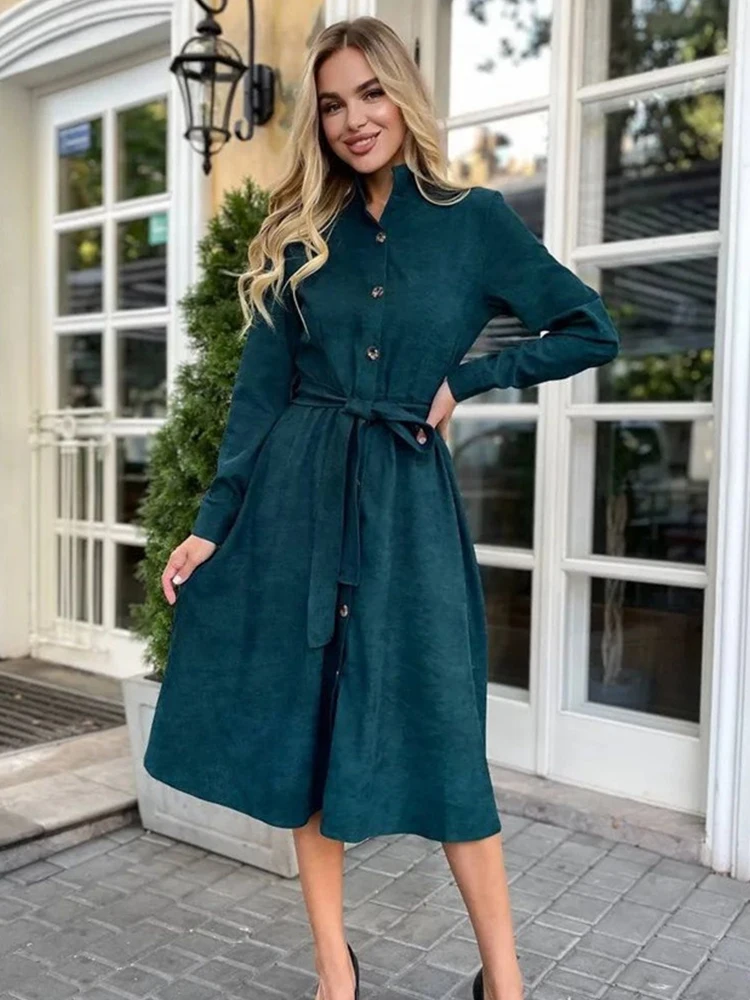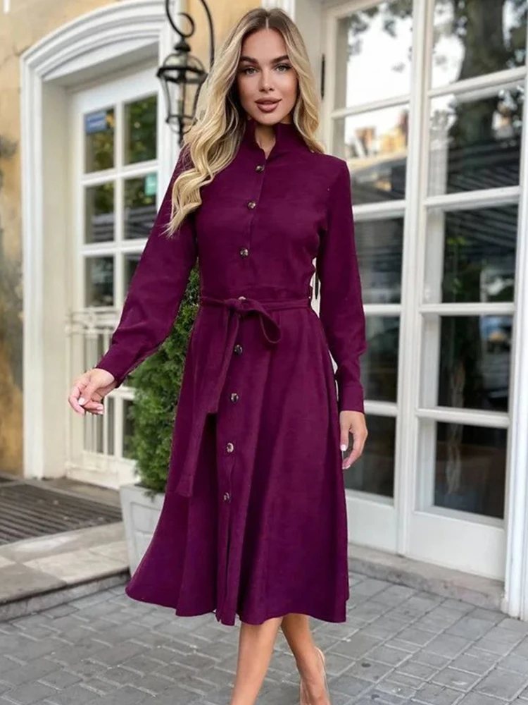LBSFY - Long Sleeve Elegant Party Dresses Women Button Knee Length Lady Dresses Women Shirts A Line Dresses Autumn New