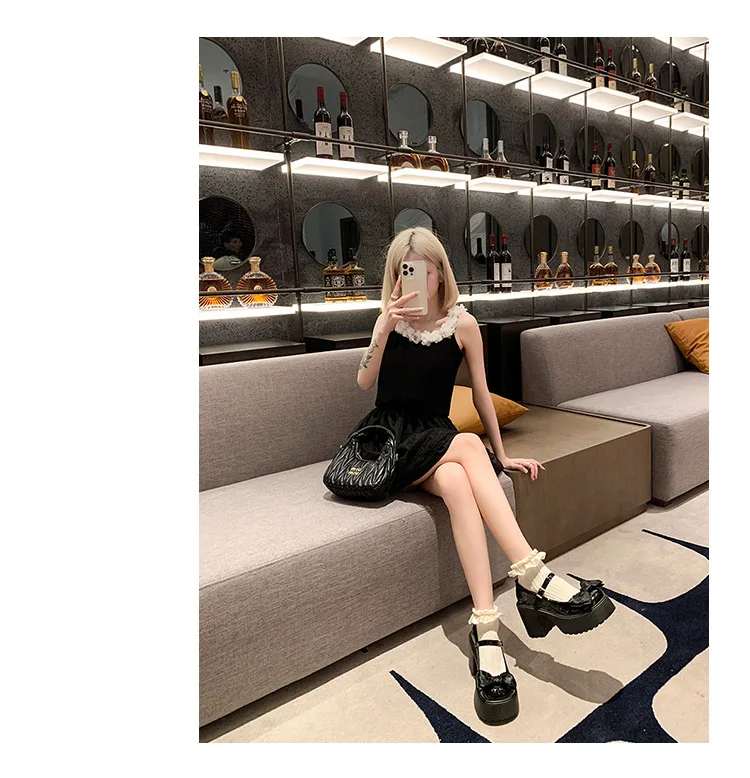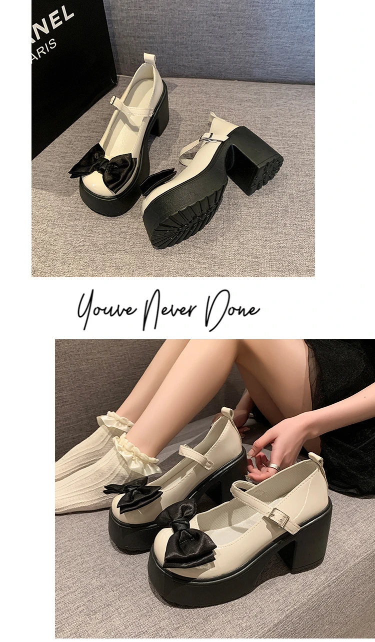 LBSFY - Lovely Black Bow Thick Heel Mary Jane for Women Shoes Fashion Increase Women's Shoes Designer Soft Sole Casual Ladies High Heels