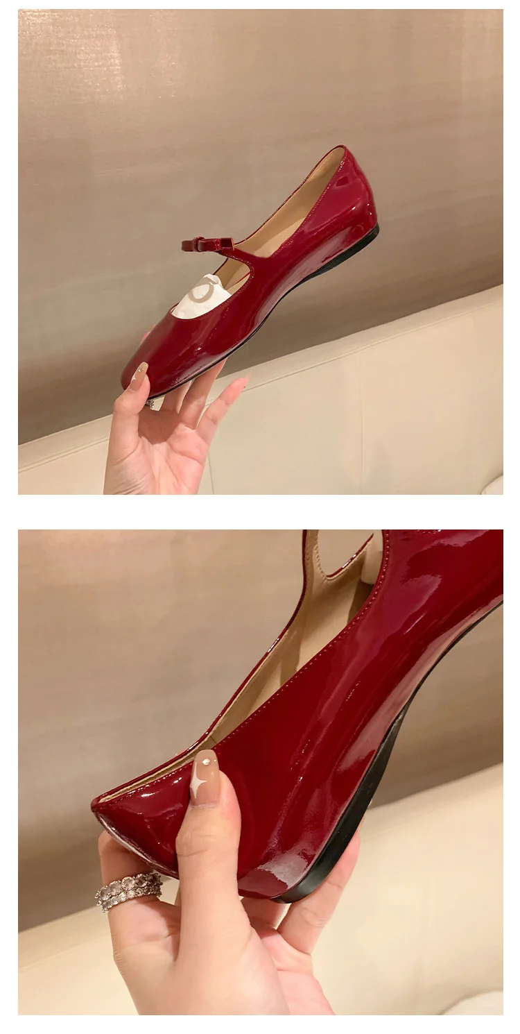 LBSFY - Luxury Bowtie Mary Janes Women Square Toe Shiny Leather Silk Flats Ballets Femmes Red Dance Party Ball Bridal Wedding Shoes
