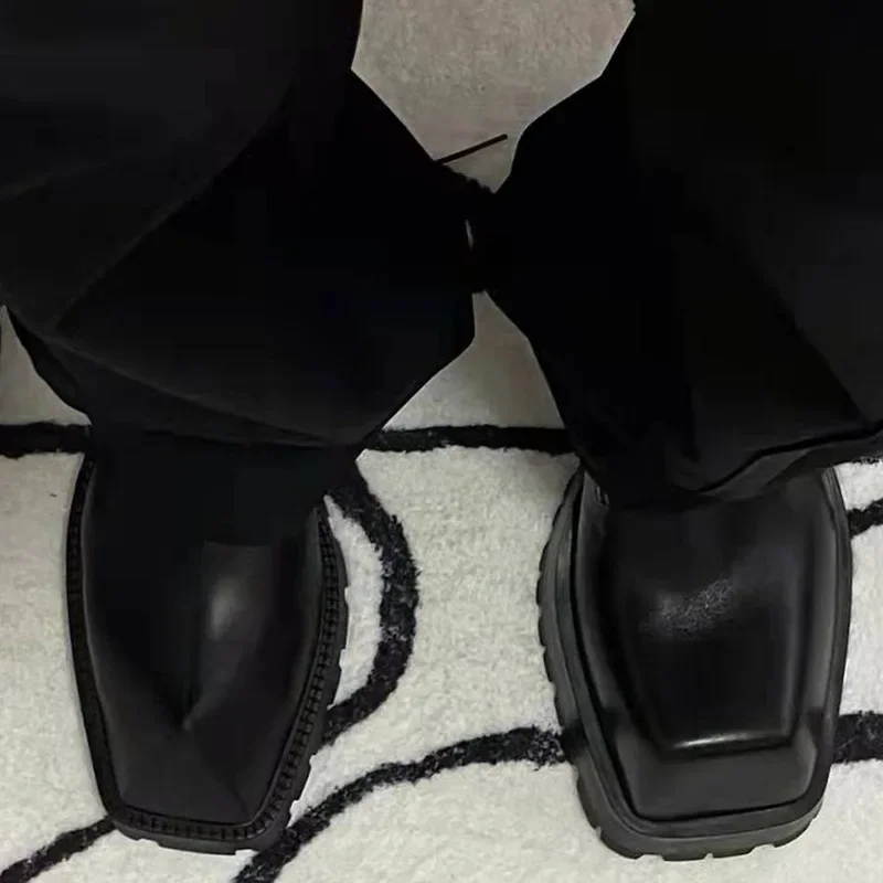 Lbsfy Luxury Designer Leather Women Shoes 2025 High Quality Chunky Platform Shoes for Women Square Toe Lace Up Unisex Casual Shoes