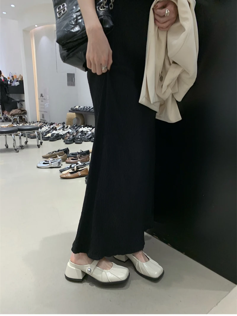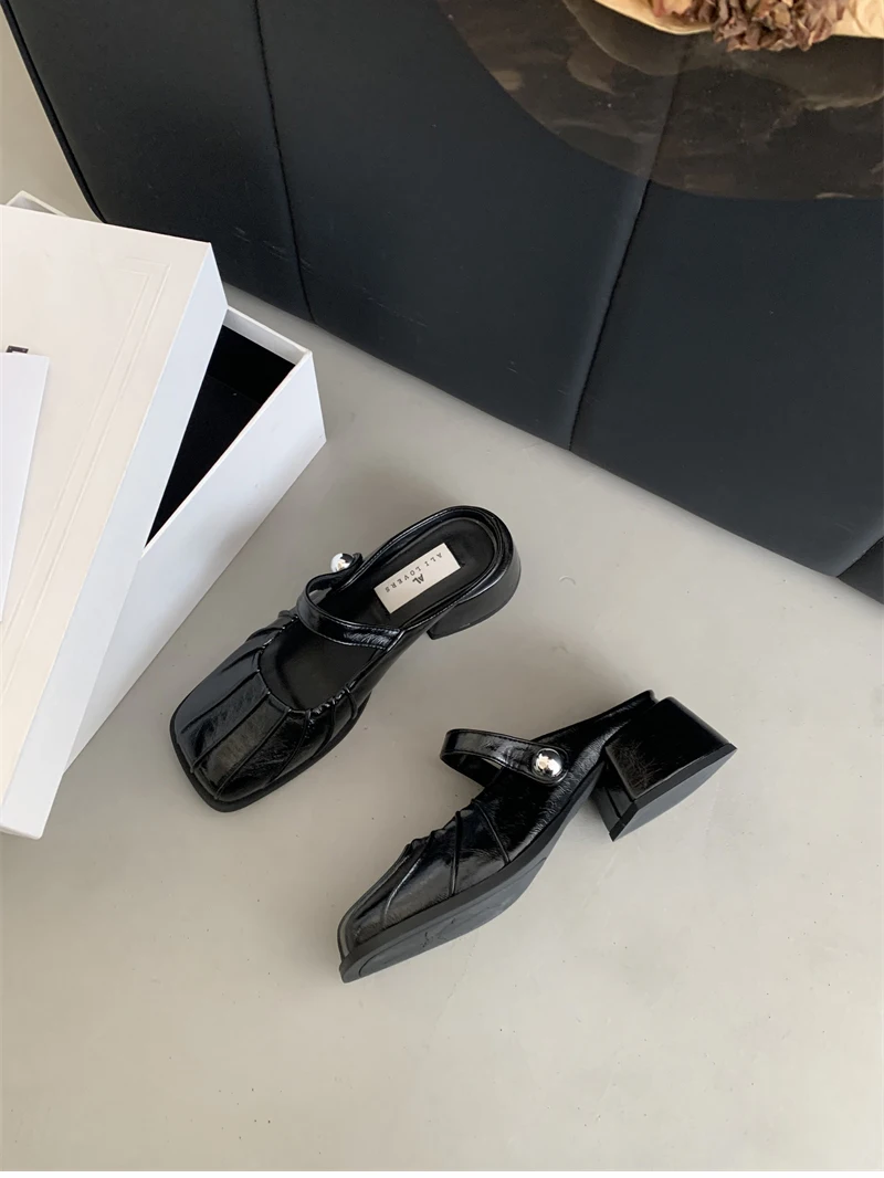 LBSFY - Luxury Designer Summers Women Mules Slippers Fashion Elegant Cover Toe Slides Shoes Ladies Outdoor Thick Heel Sandalias