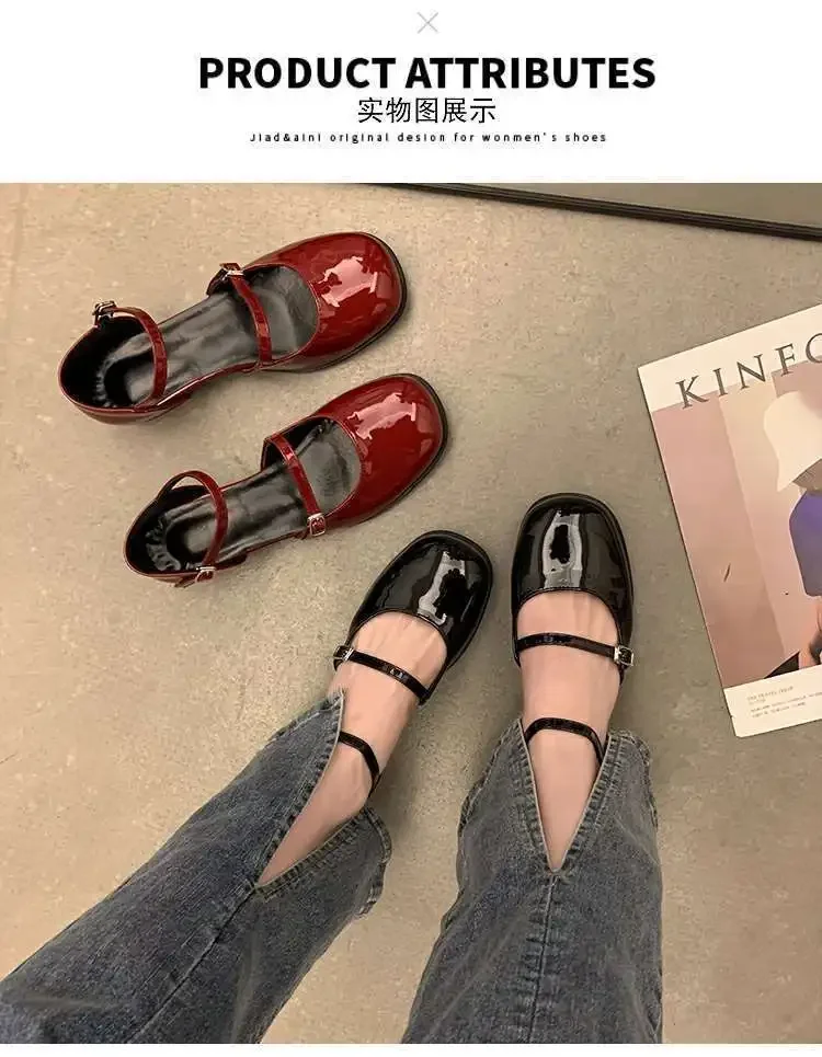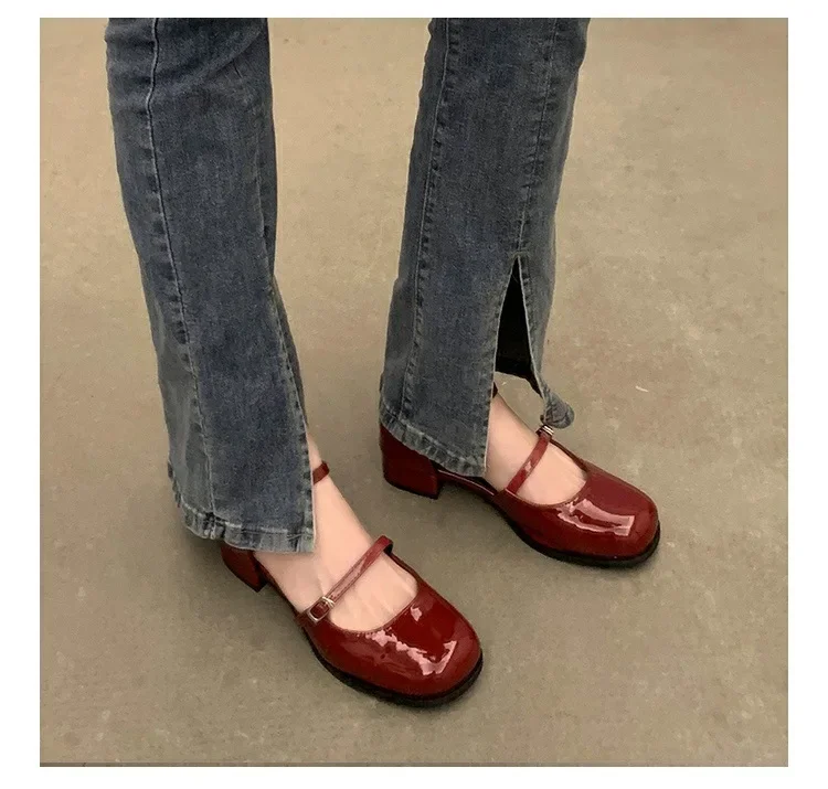 LBSFY -Mary Jane Shoes Buckle Pumps Women Elegant Shallow Hollow Thick Heel Casual Shoes Ladies Office Party Leather Shoes