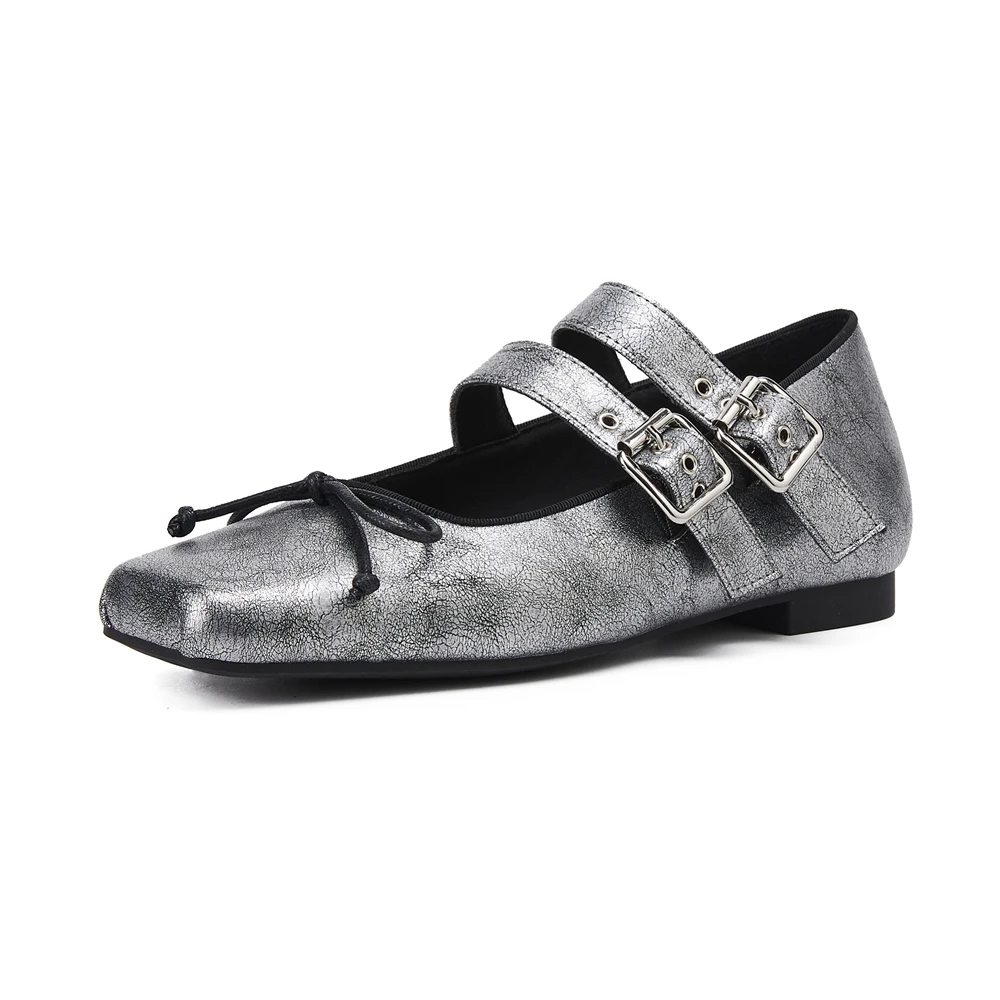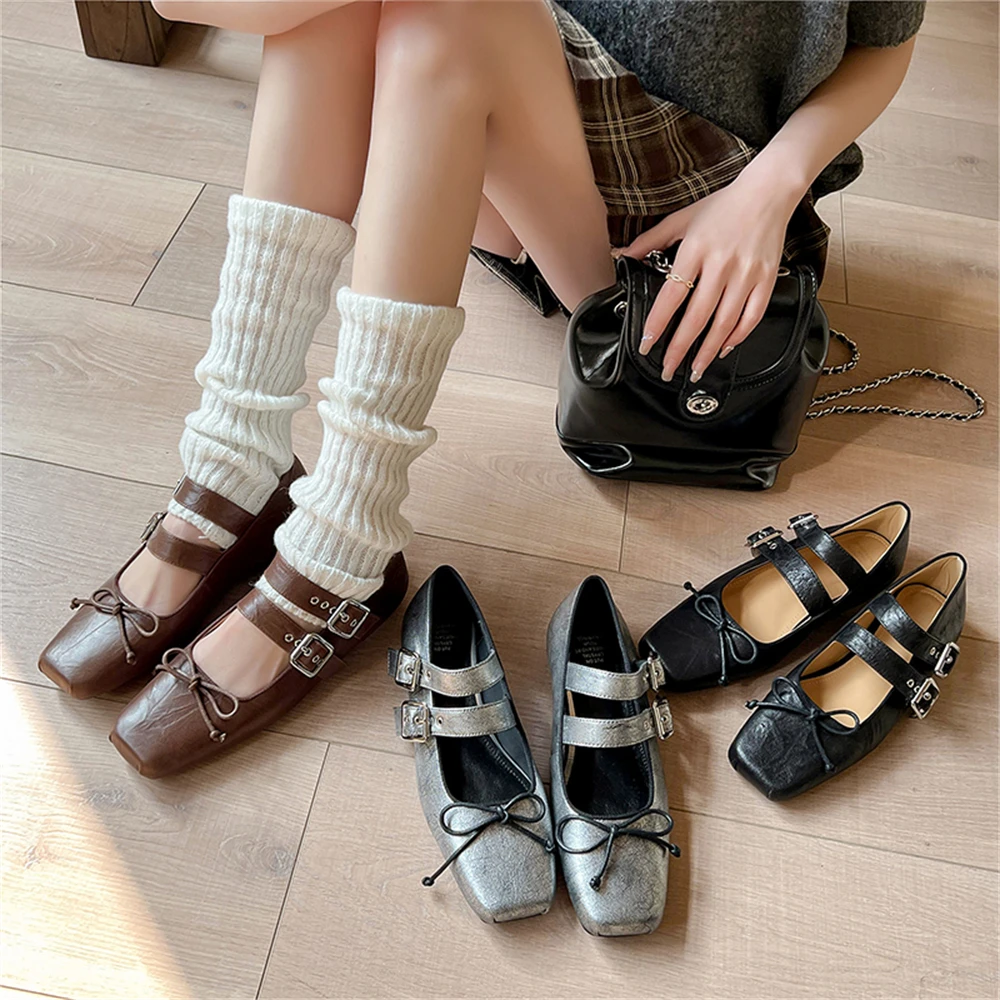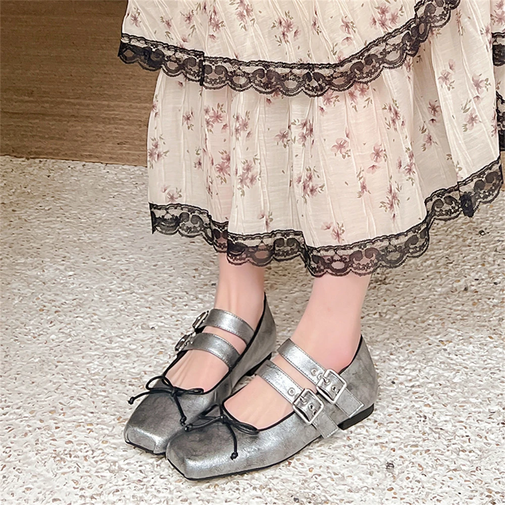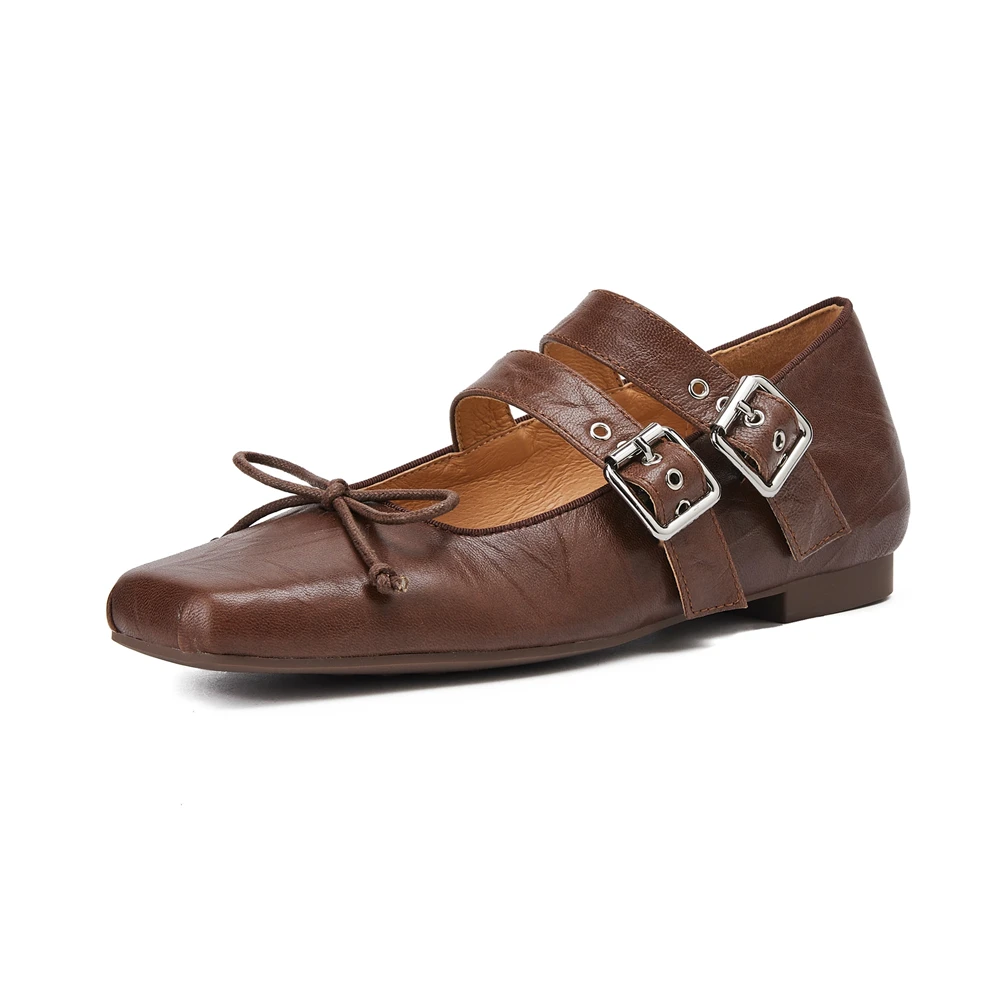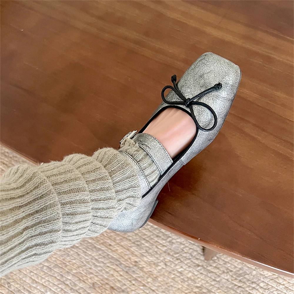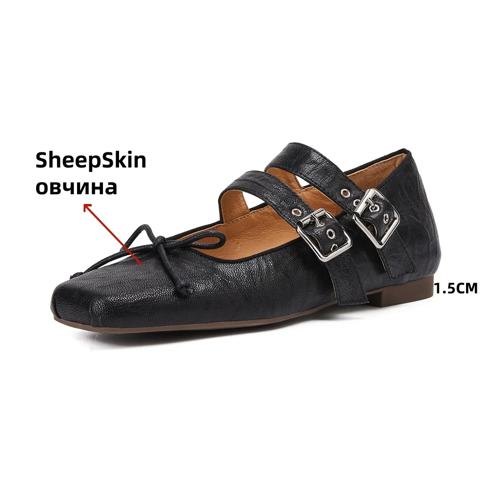 LBSFY  -  Mary Janes Genuine Leather Shoes Woman Soft Buckles Low Heels Bowtie Cute Ladies Handmade Casual Shoes Loafers