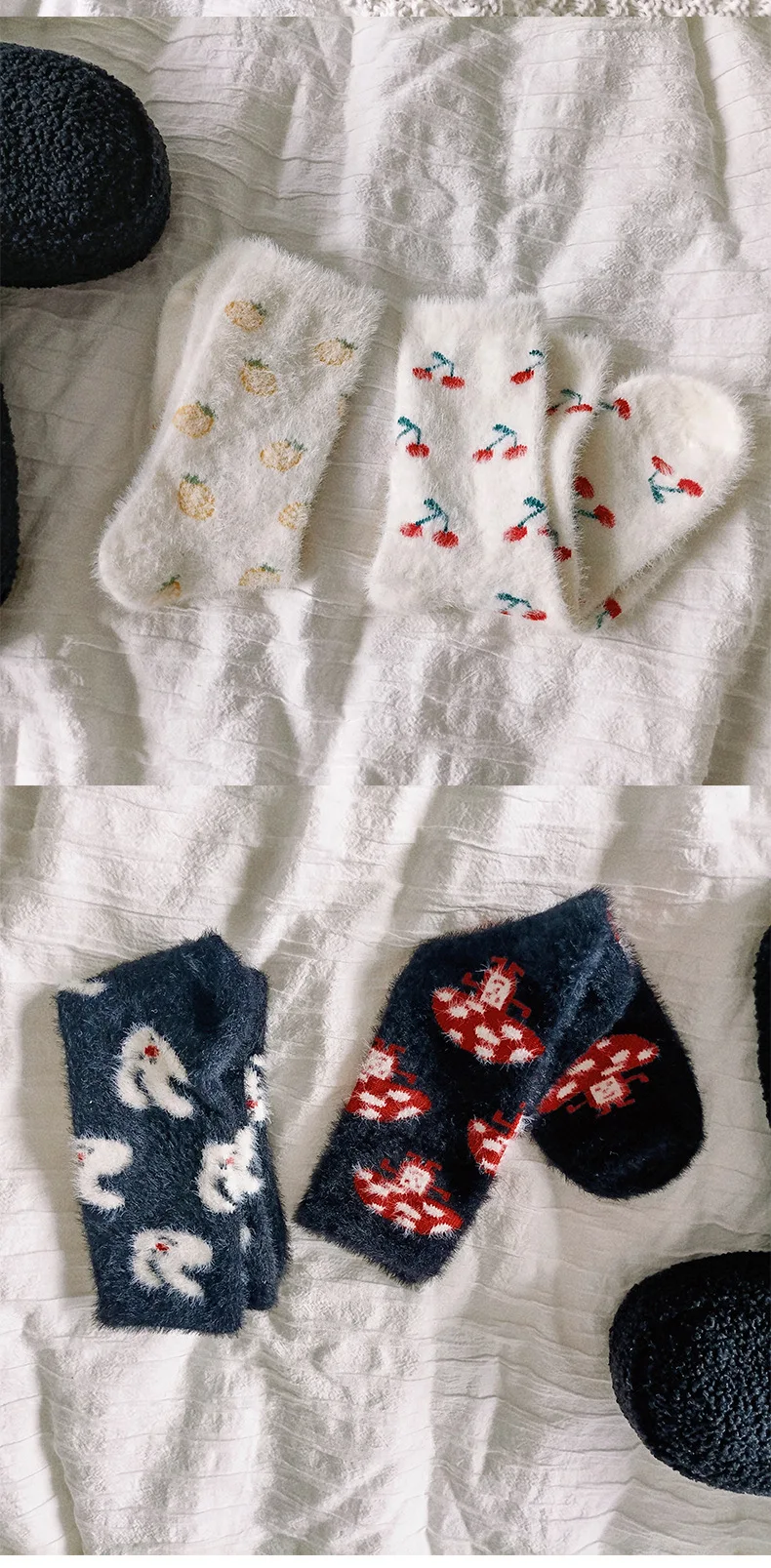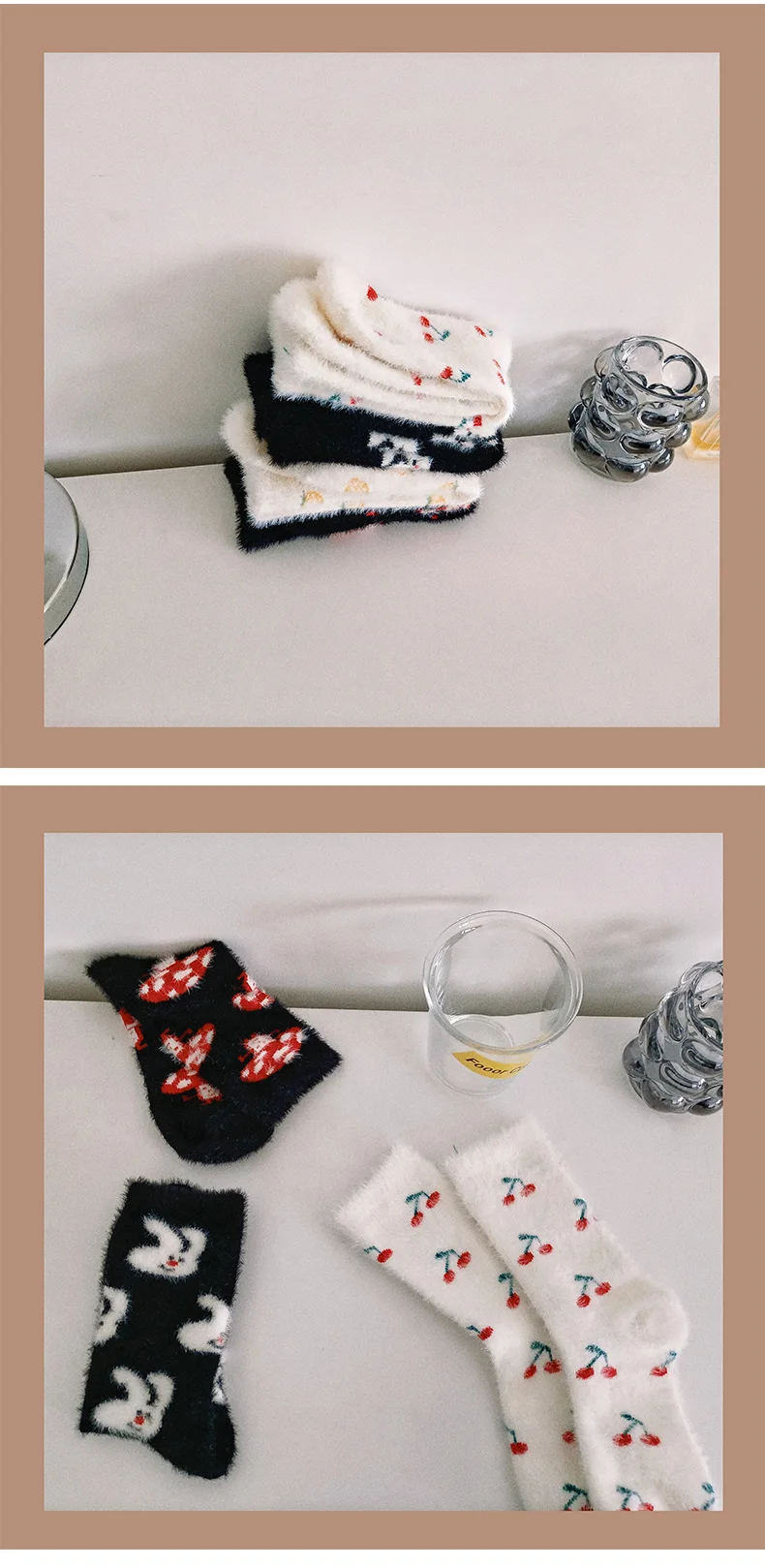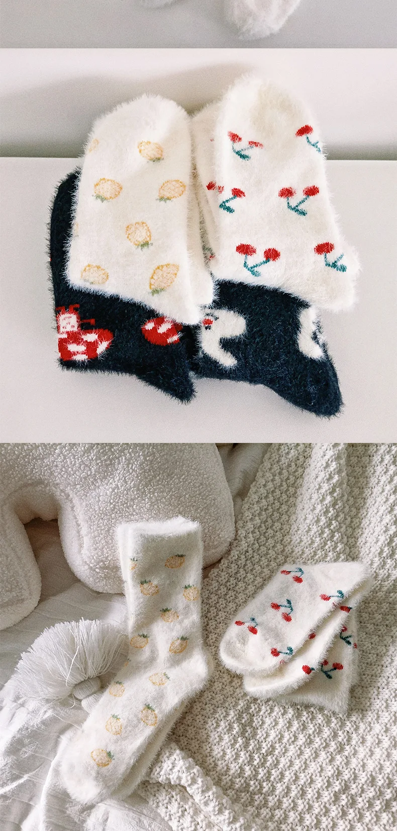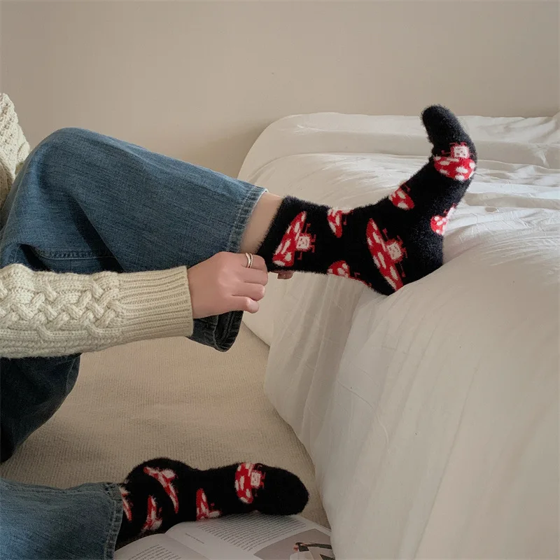 Lbsfy Mink Velvet Socks Women Autumn Winter Cartoon Rabbit Cherry Soft Kawaii Cute Thicken Thermal Coral Velvet Sleep Plush Floor Sock