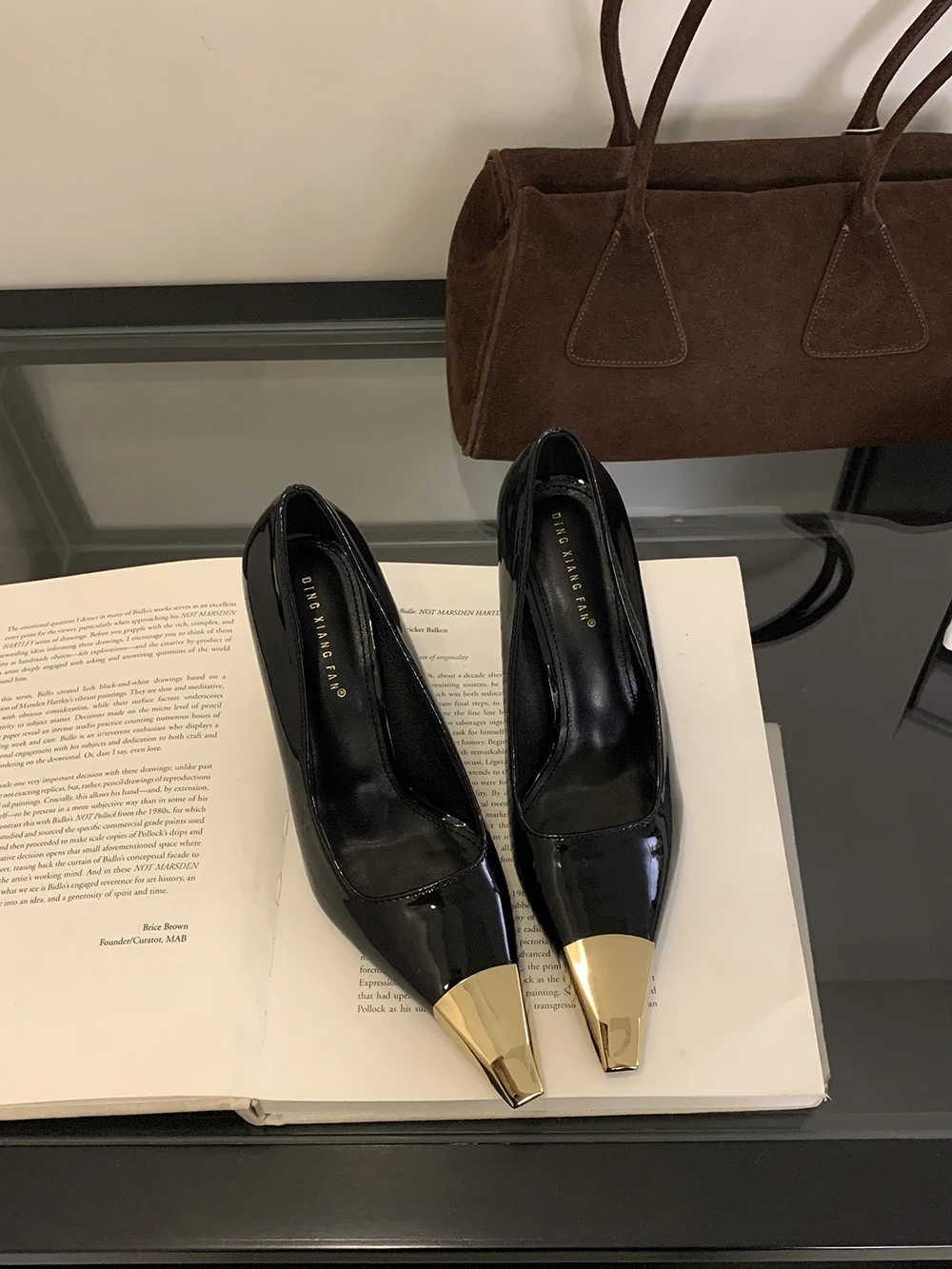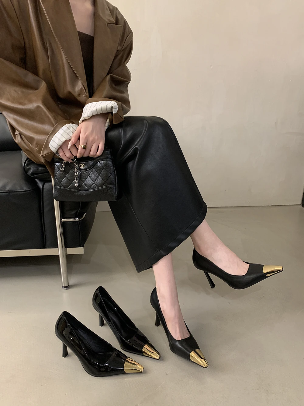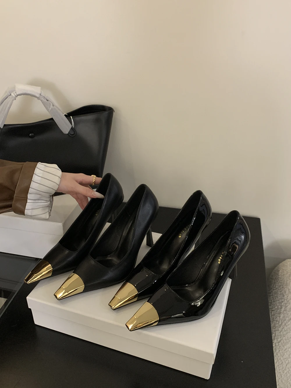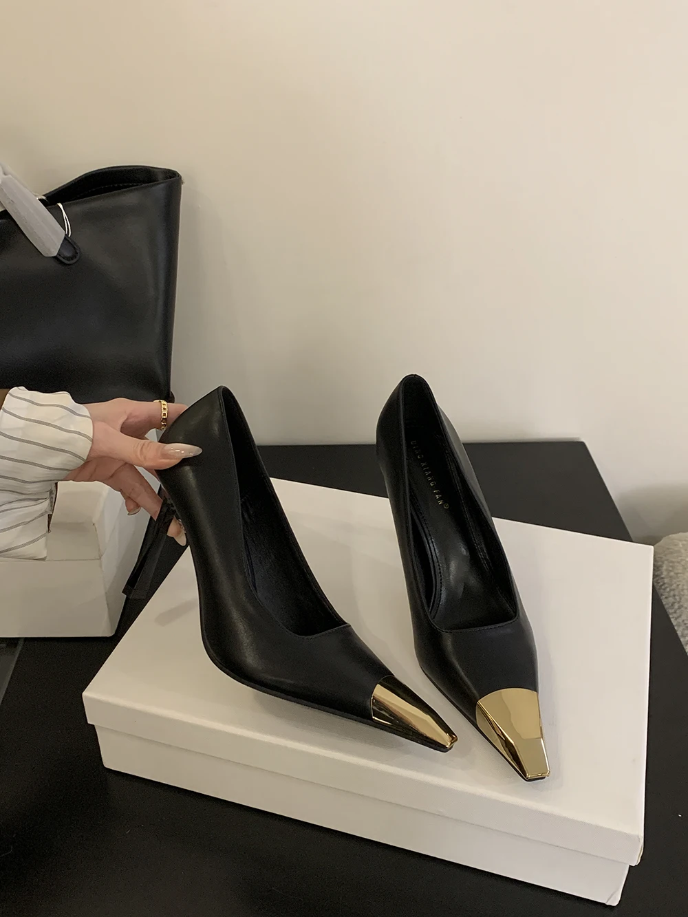 LBSFY - Mixed Color Women Pumps Gold/Black Ladies Party Pumps Thin High Heels 9cm Shallow Slip On Office Pumps Shoes Woman Size 35-40