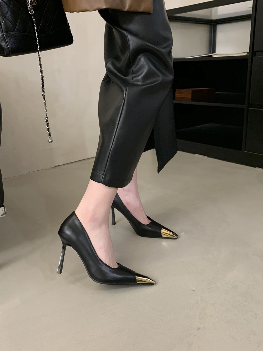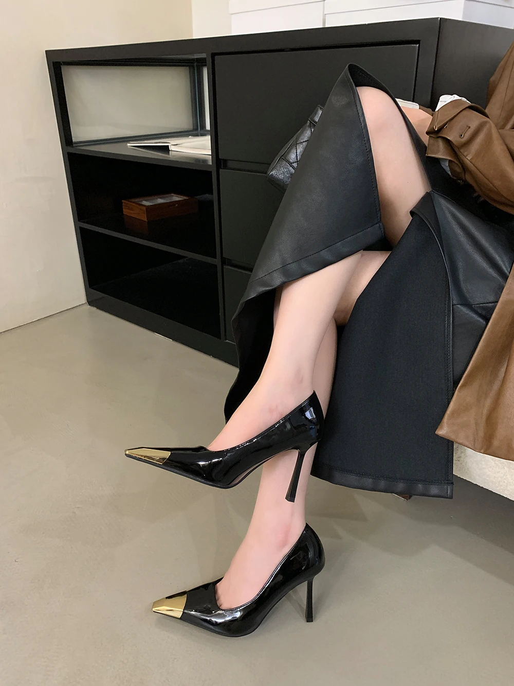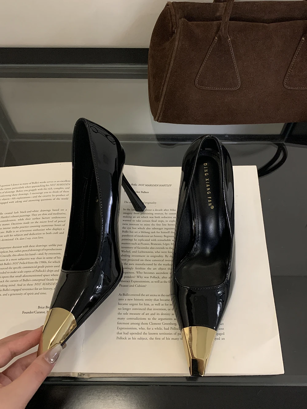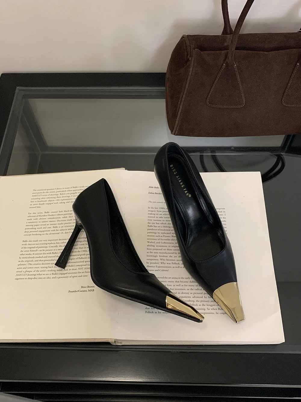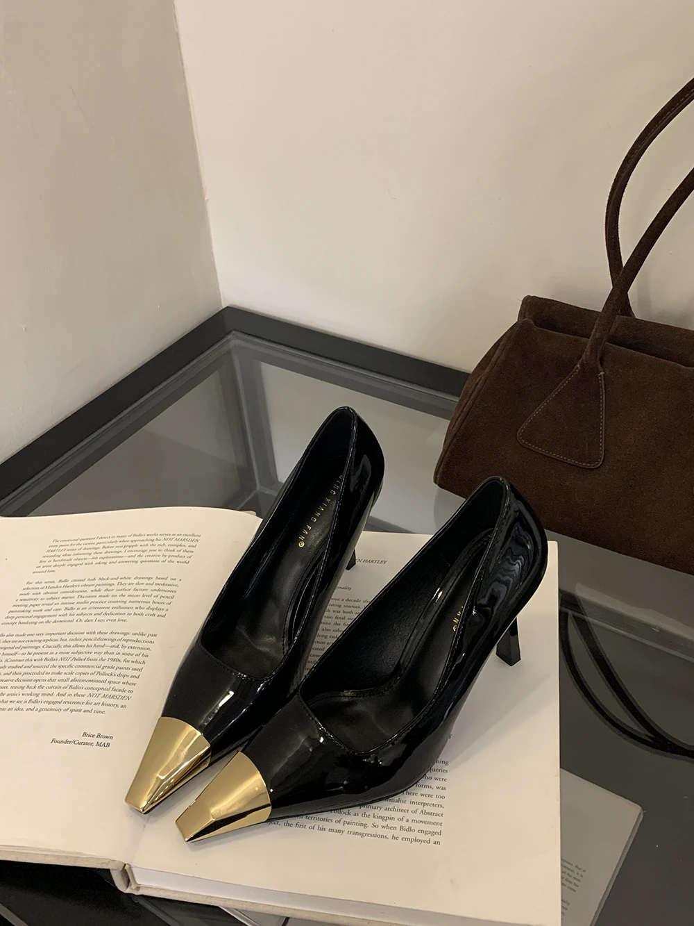 LBSFY - Mixed Color Women Pumps Gold/Black Ladies Party Pumps Thin High Heels 9cm Shallow Slip On Office Pumps Shoes Woman Size 35-40
