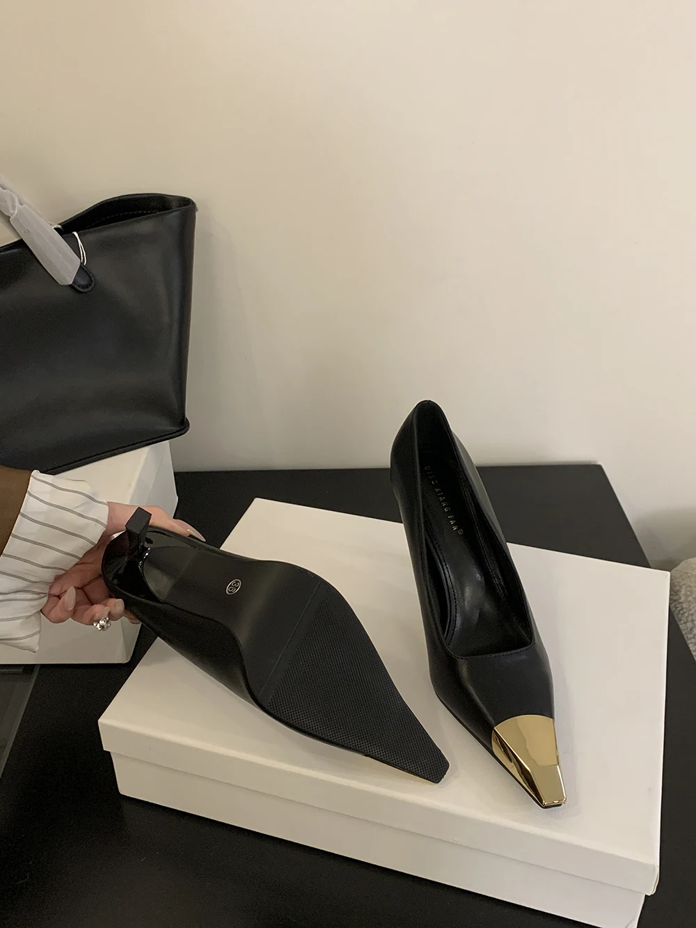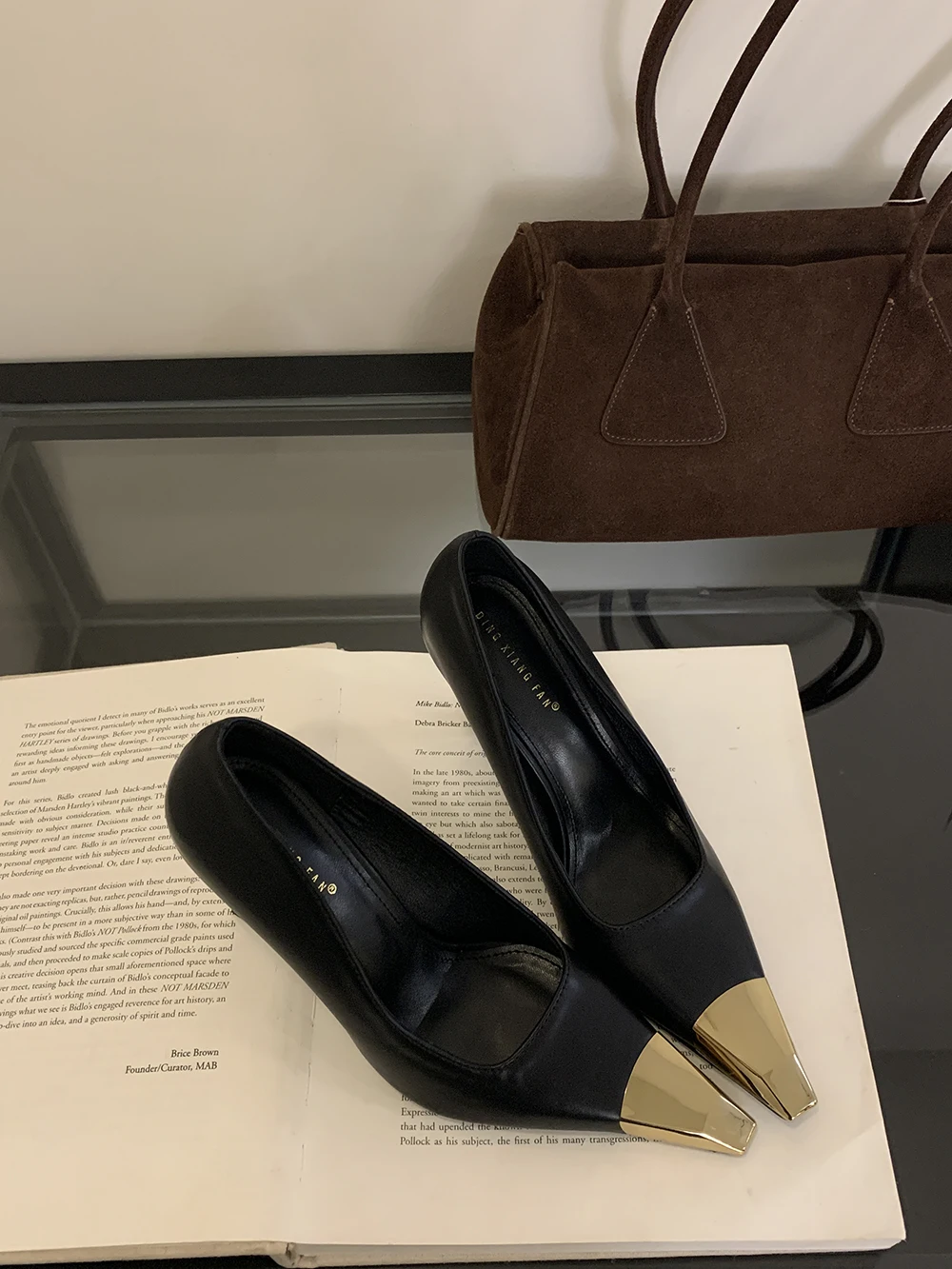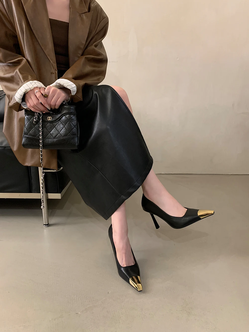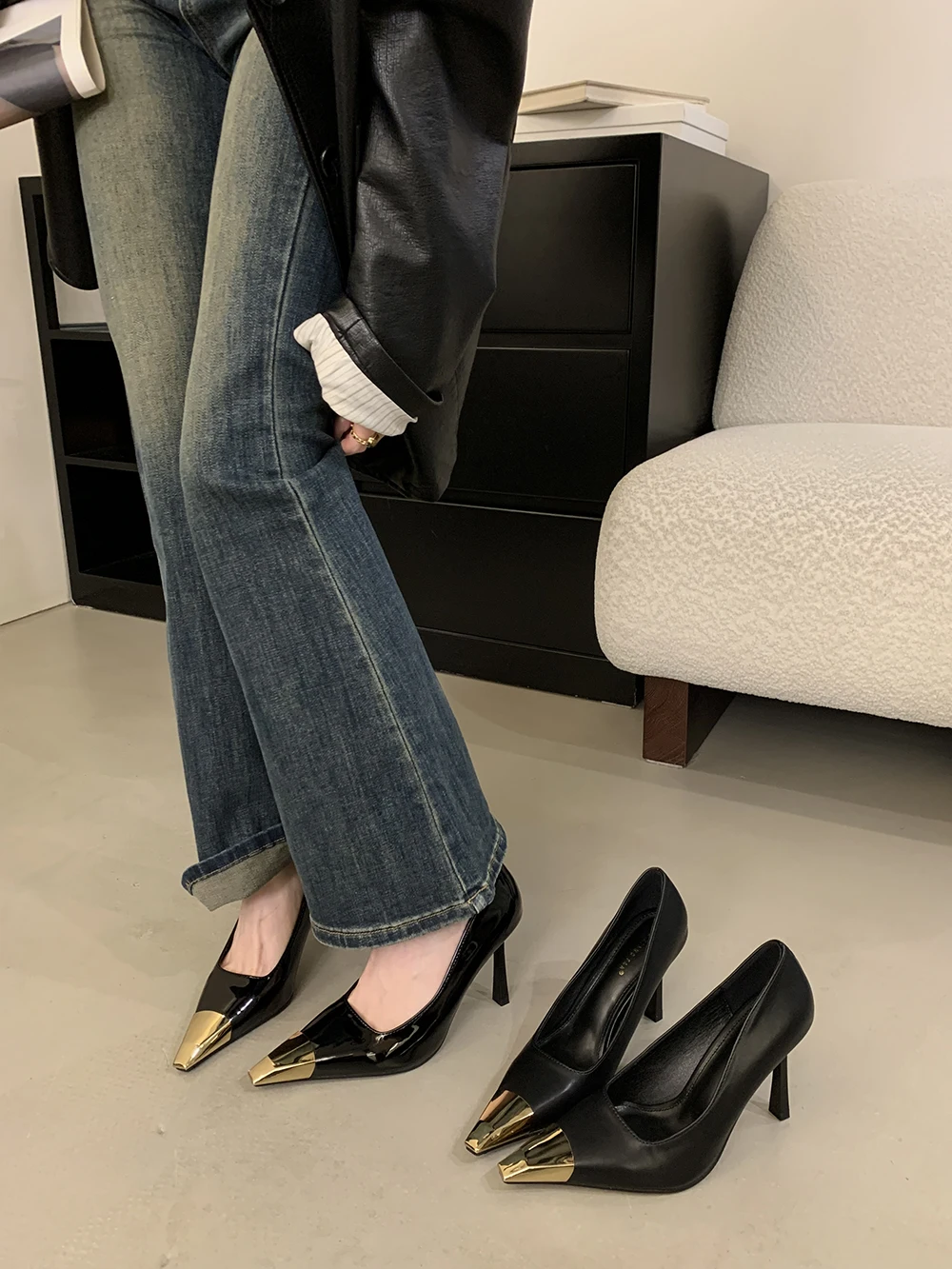 LBSFY - Mixed Color Women Pumps Gold/Black Ladies Party Pumps Thin High Heels 9cm Shallow Slip On Office Pumps Shoes Woman Size 35-40