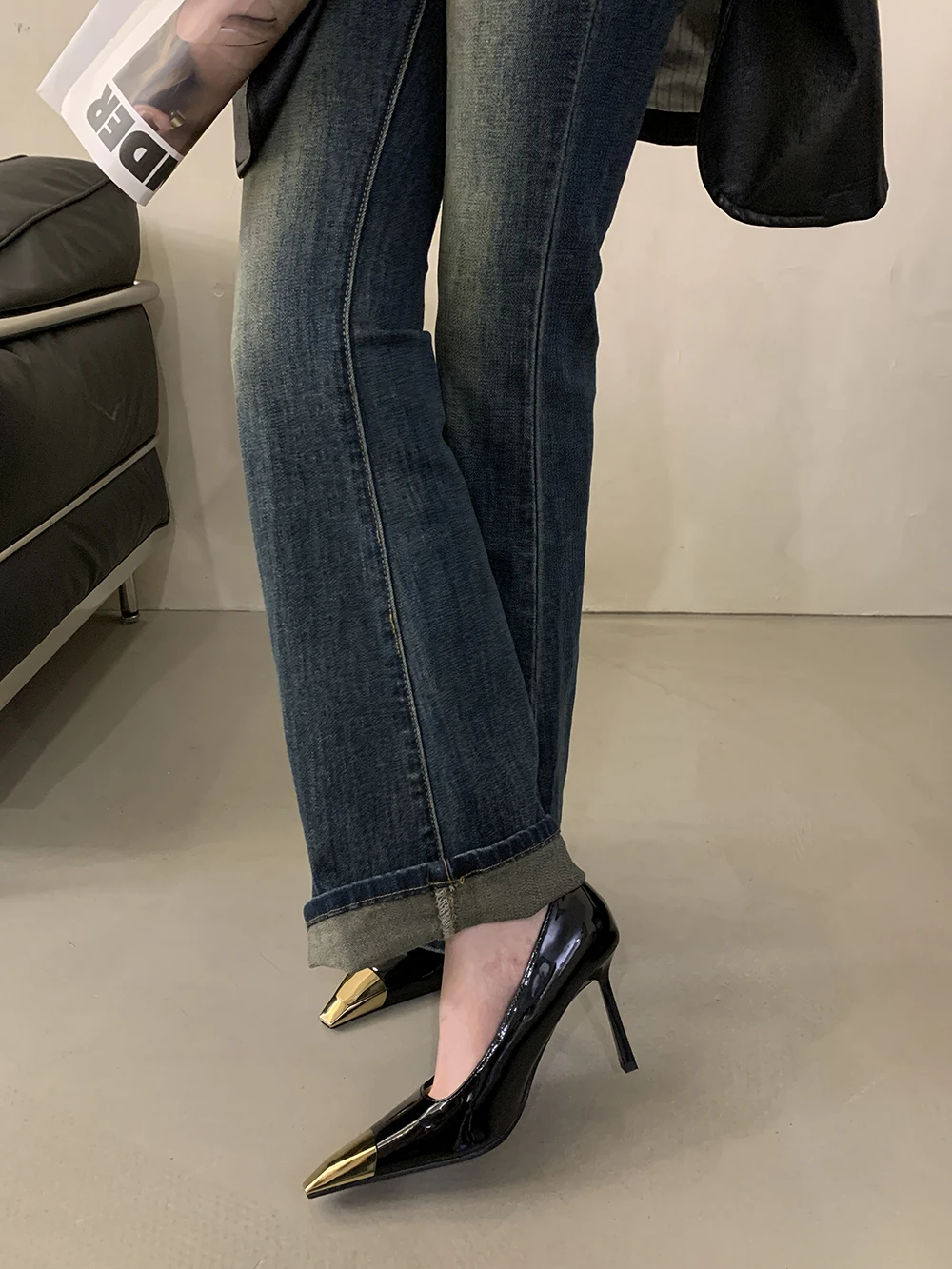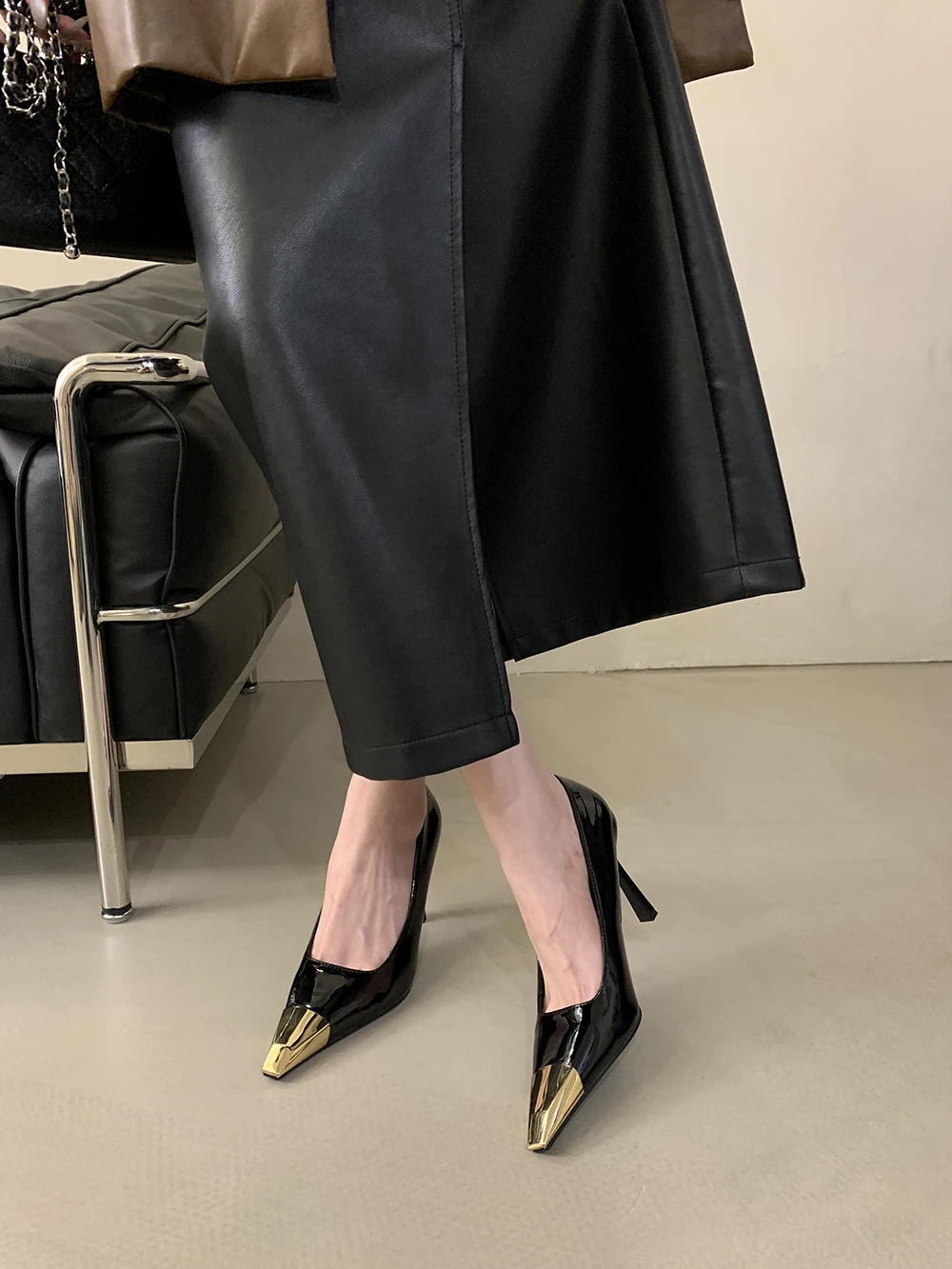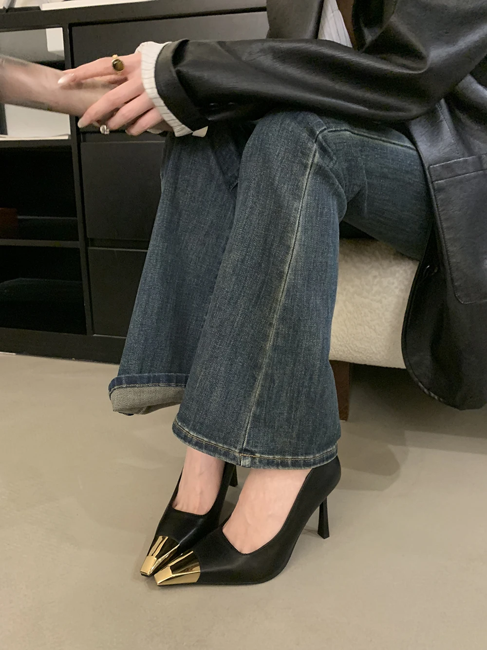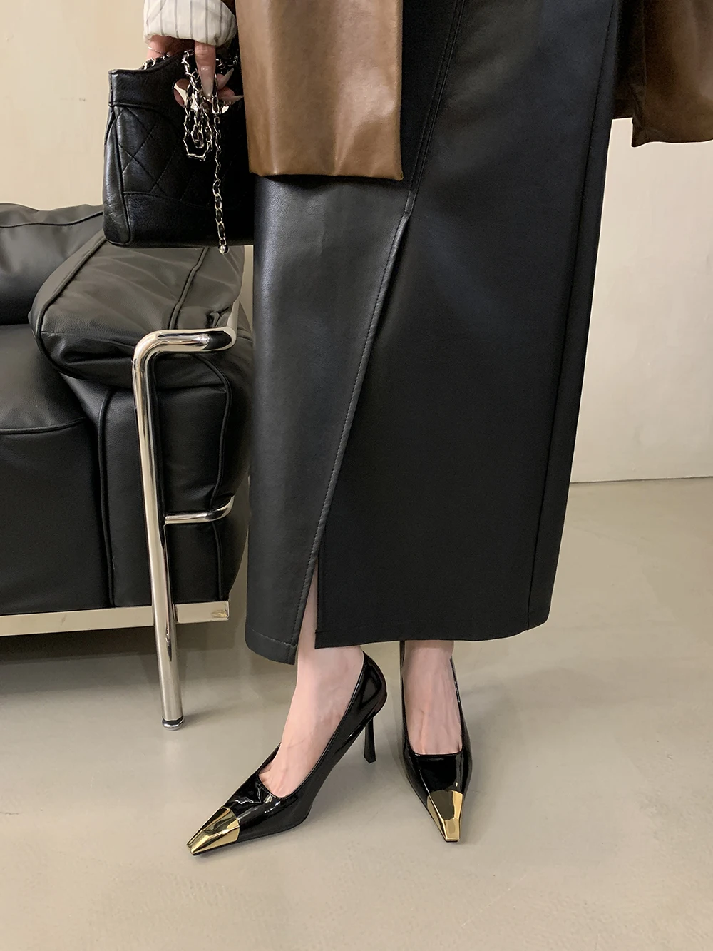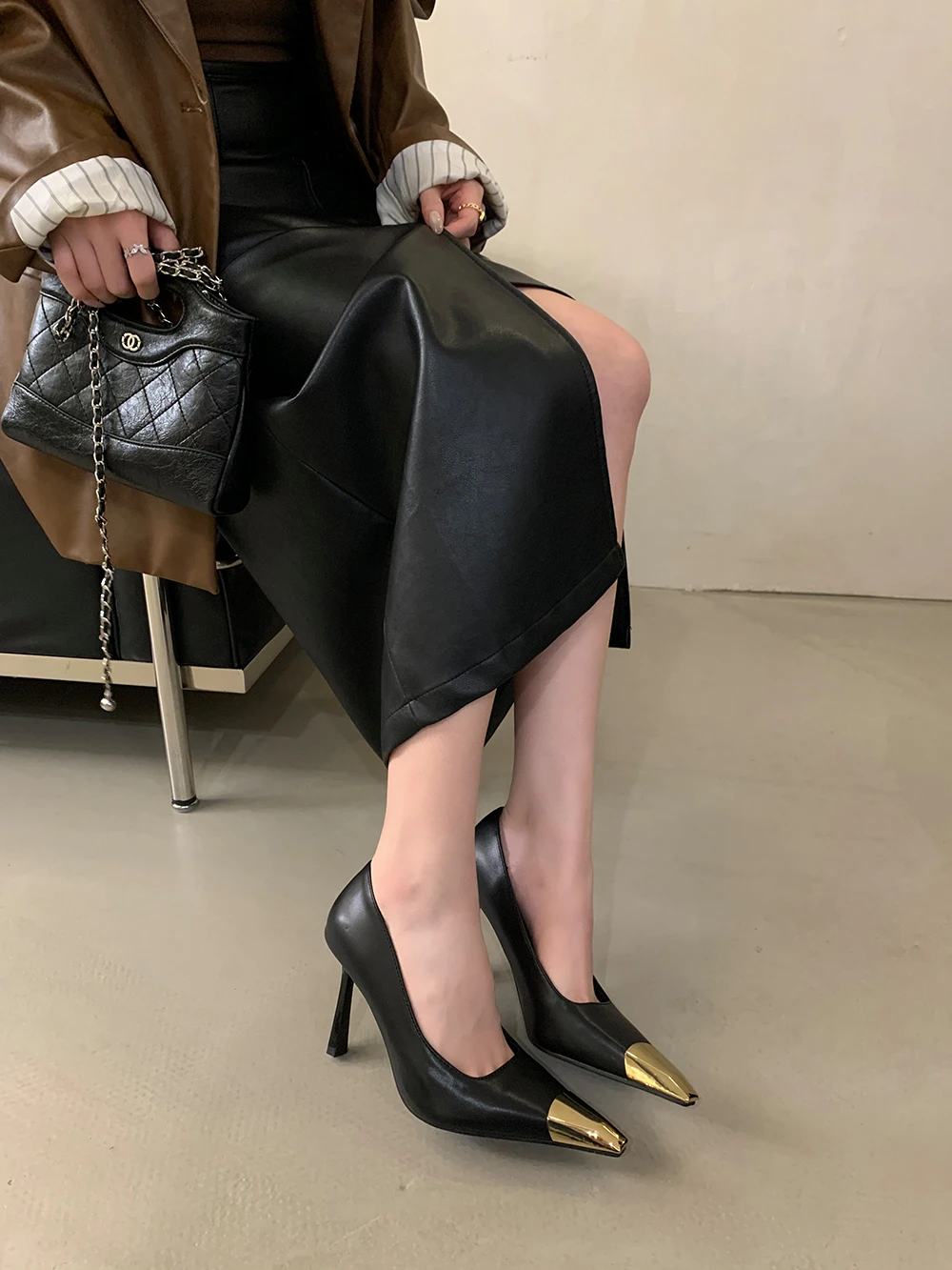 LBSFY - Mixed Color Women Pumps Gold/Black Ladies Party Pumps Thin High Heels 9cm Shallow Slip On Office Pumps Shoes Woman Size 35-40