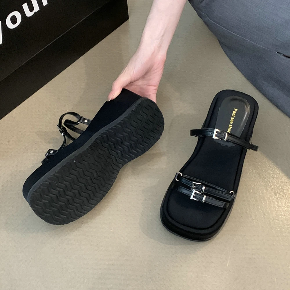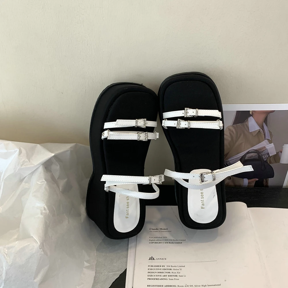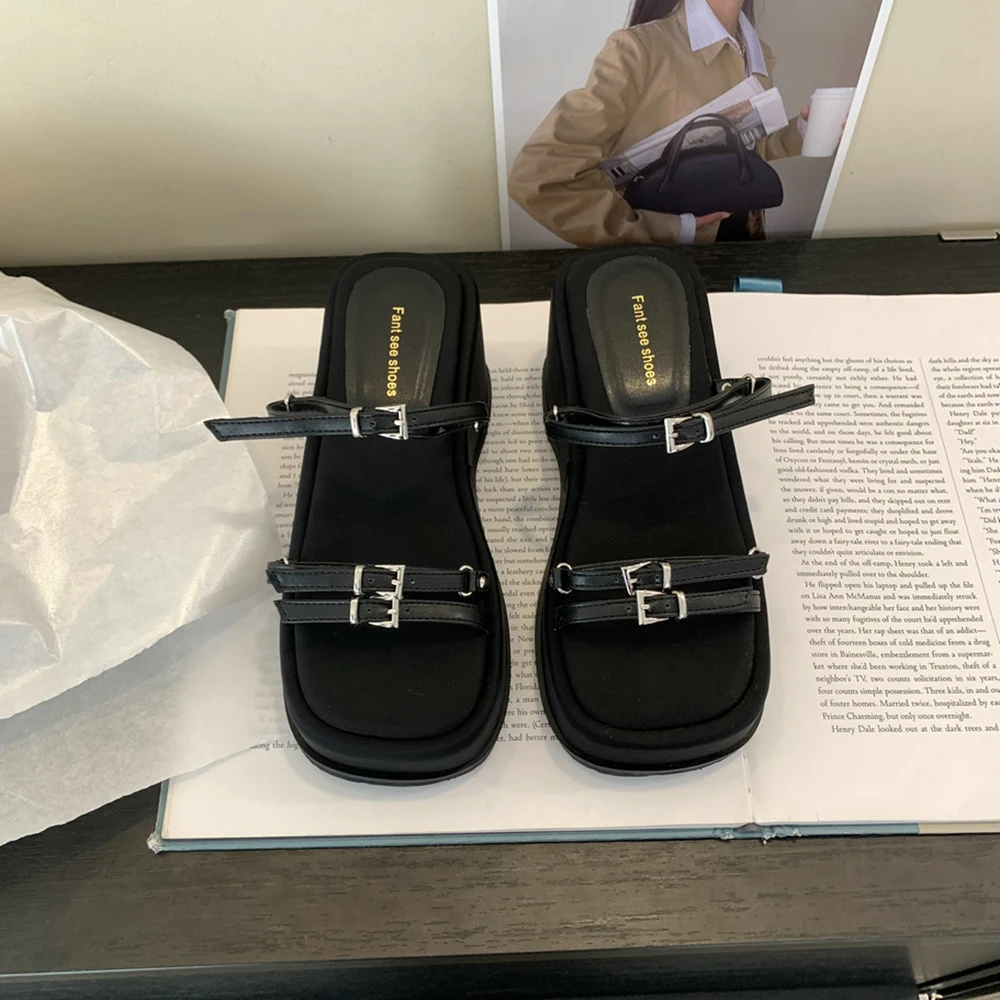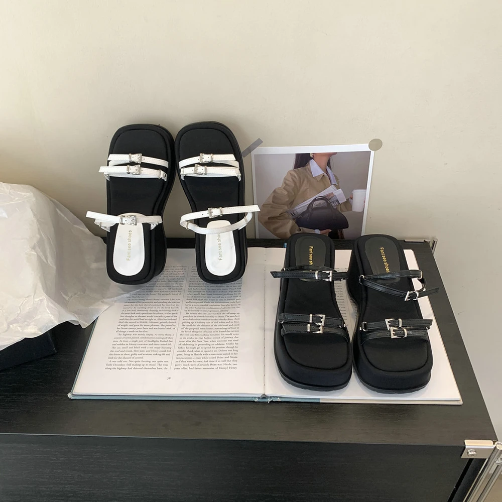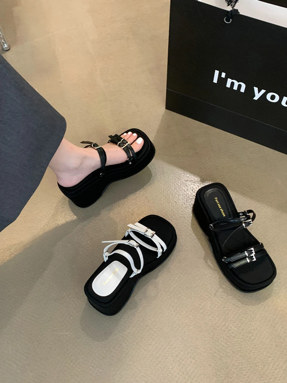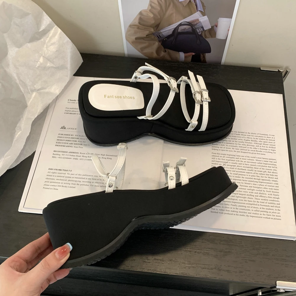 LBSFY - Narrow Band Women Slippers Wedge High Heels Platform Shoes Black White Summer Outside Slides Fashion Dress Shoes Party Pumps 39